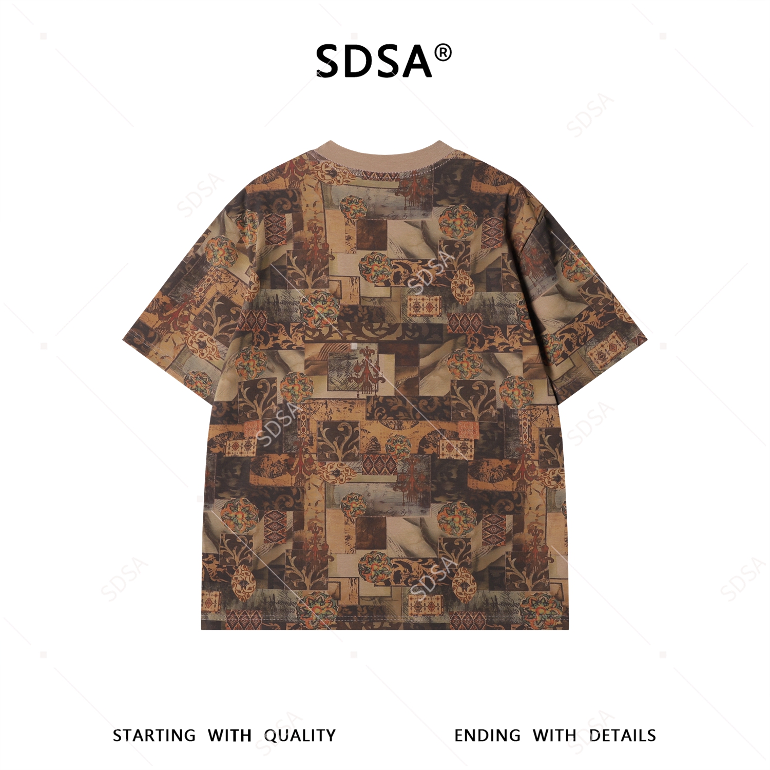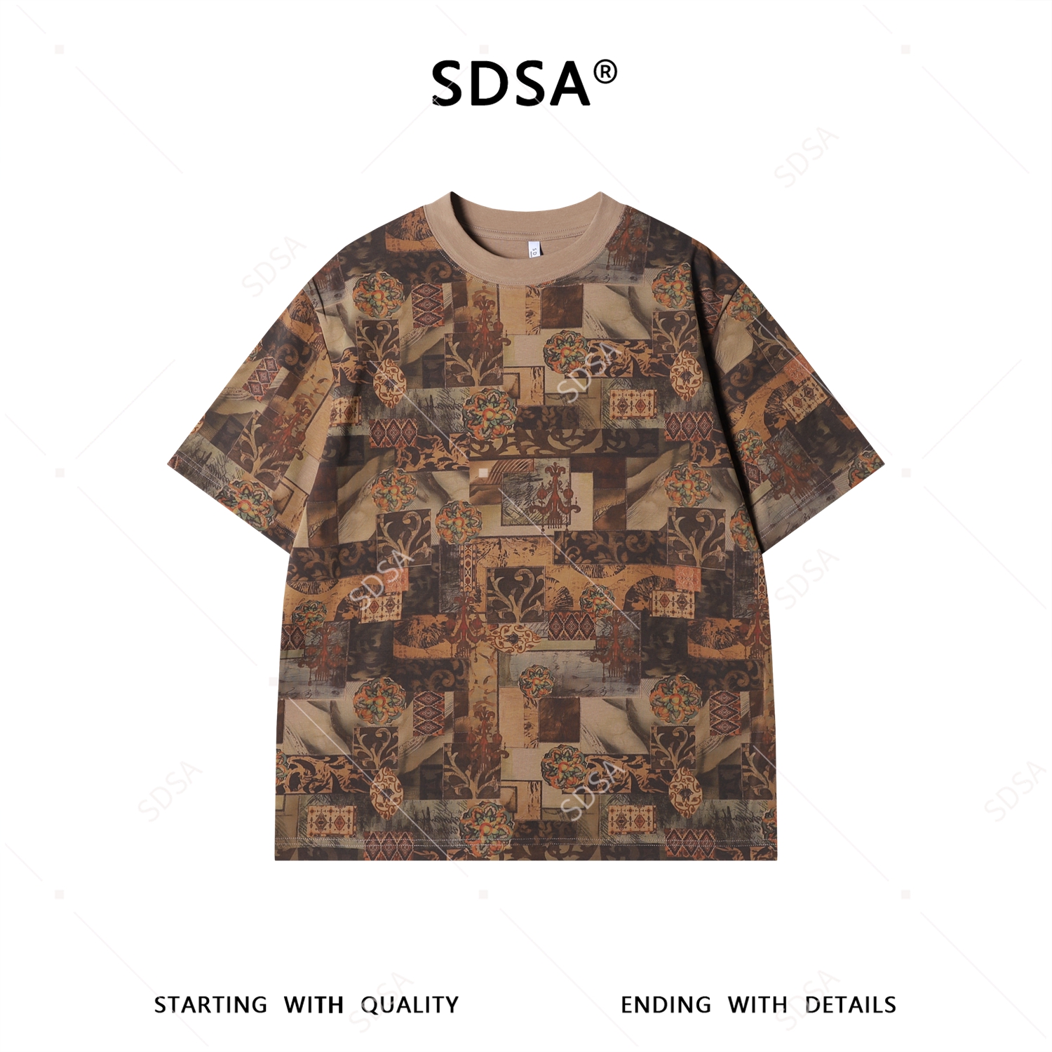 26T222SDSA男装2026新款高贵轻奢美式复古撞色圆领短袖T恤百搭宽松上衣