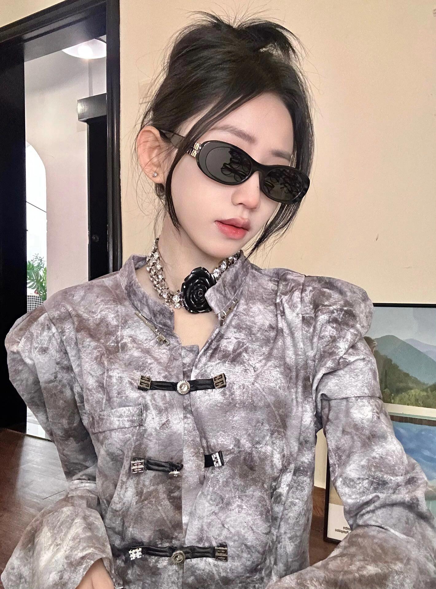 缪缪女孩闭眼冲这款椭圆框墨镜🕶️