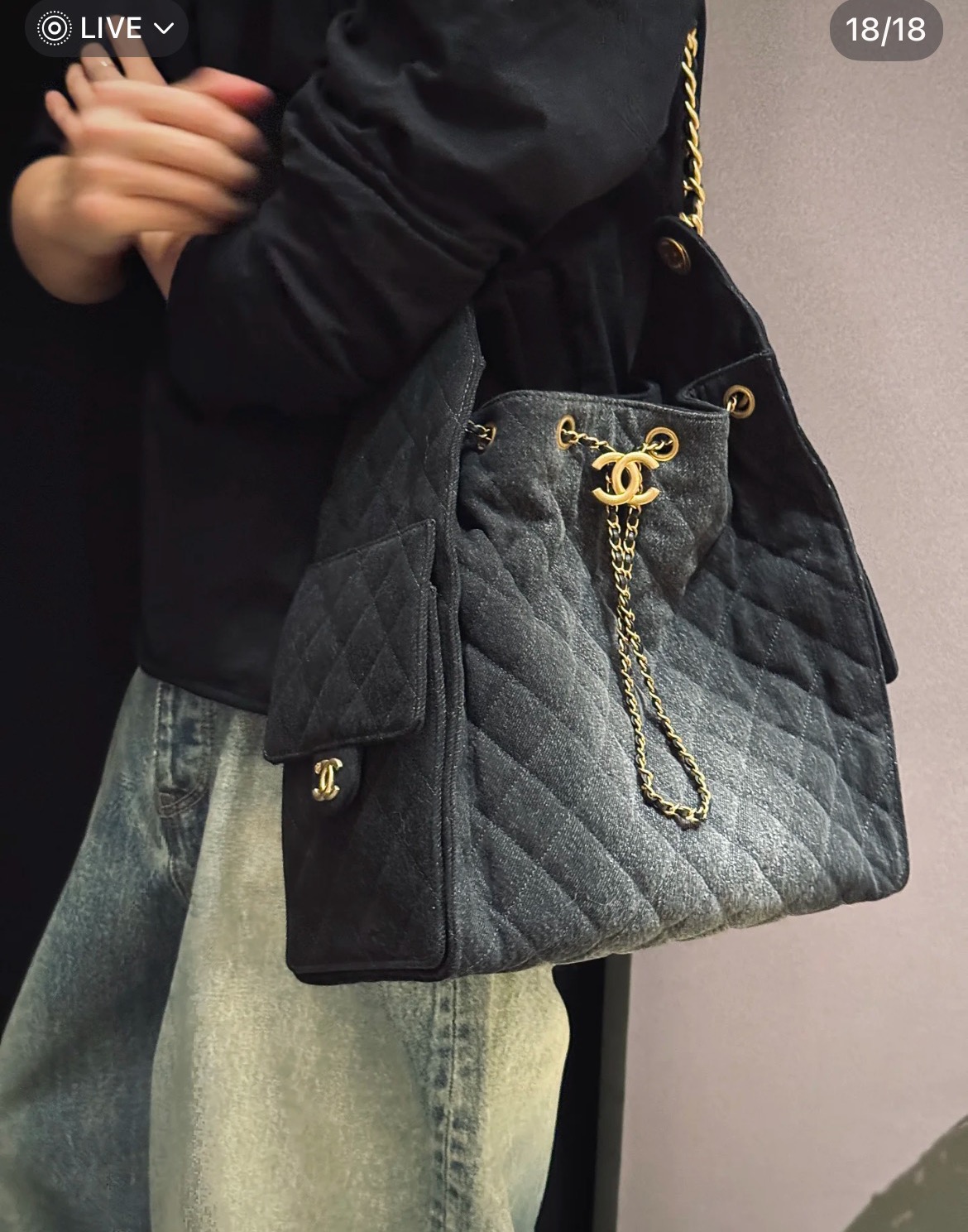 𝐂𝐡𝐚𝐧𝐞* 𝟐𝟓𝐬春夏秀款 深色牛仔 𝐡𝐨𝐛𝐨 𝐛𝐚𝐠 中号