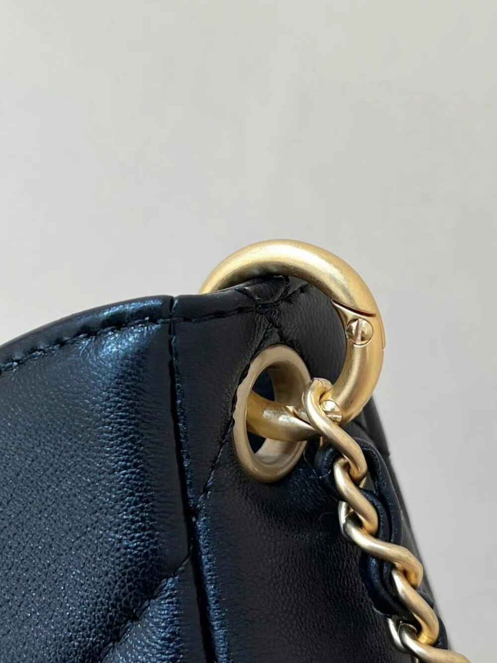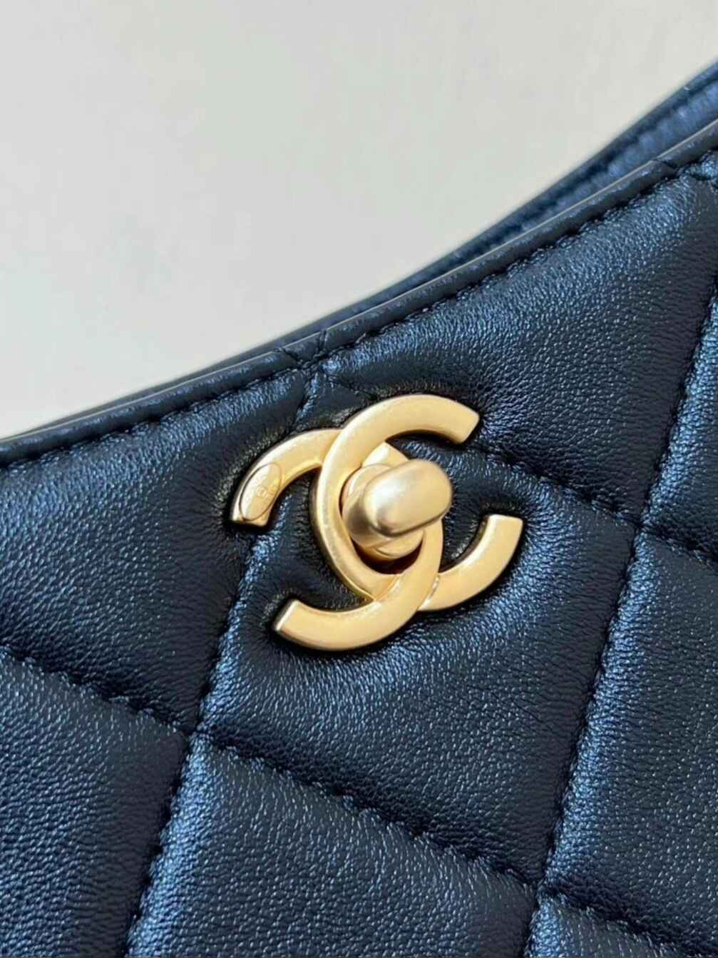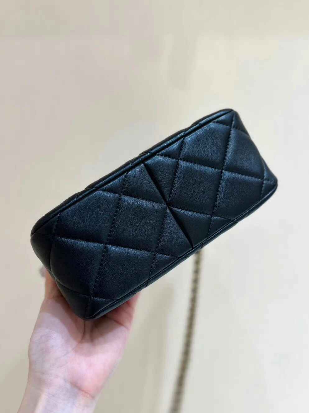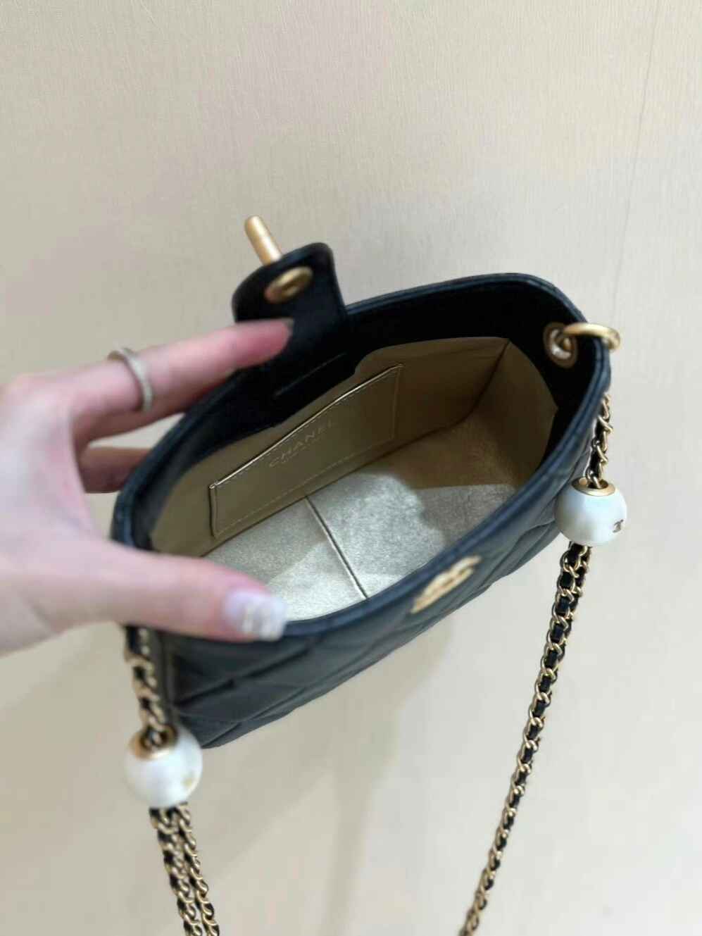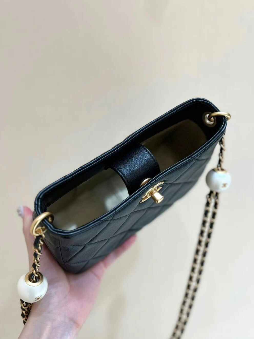 香奈儿 24S 金扣 双珍珠球皮穿链链条肩带 小羊皮 流浪包腋下包斜挎单肩包 常规 女款 黑色(DG*MM)