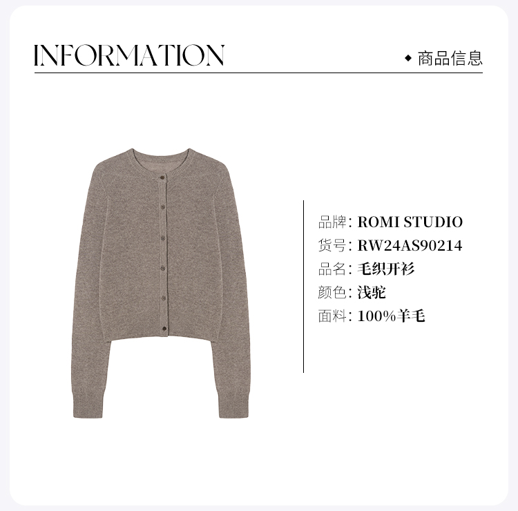 ROMI STUDIO“松弛随性”12针单边100羊毛软糯圆领开衫 RW24AS90214