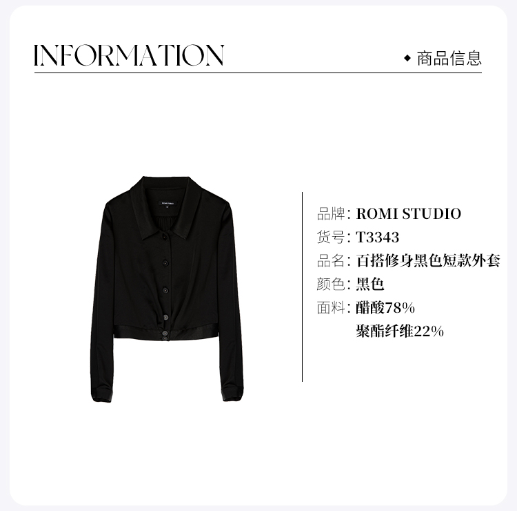 ROMI STUDIOVintage复古优雅 百搭修身黑色短款外套 T3343
