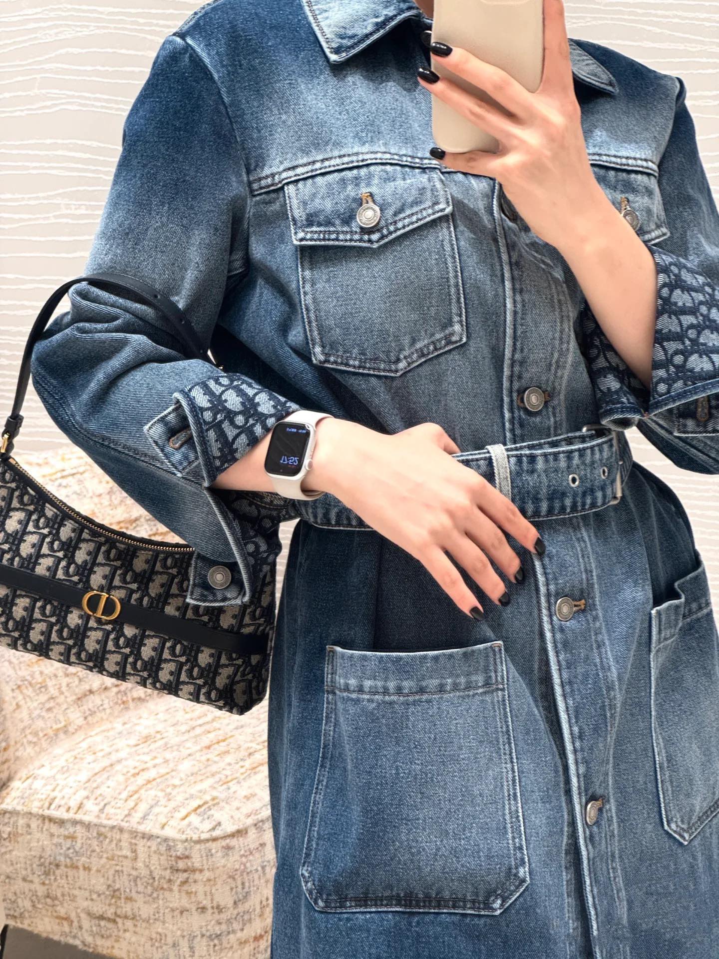 这款是二零二五早春成衣系列新品,以时尚精致的设计,丰富了30 Montaigne系列。采用蓝色Oblique 印花面料等材质精心制作,搭配装饰性蓝色牛皮革饰带,正面饰以复古金色