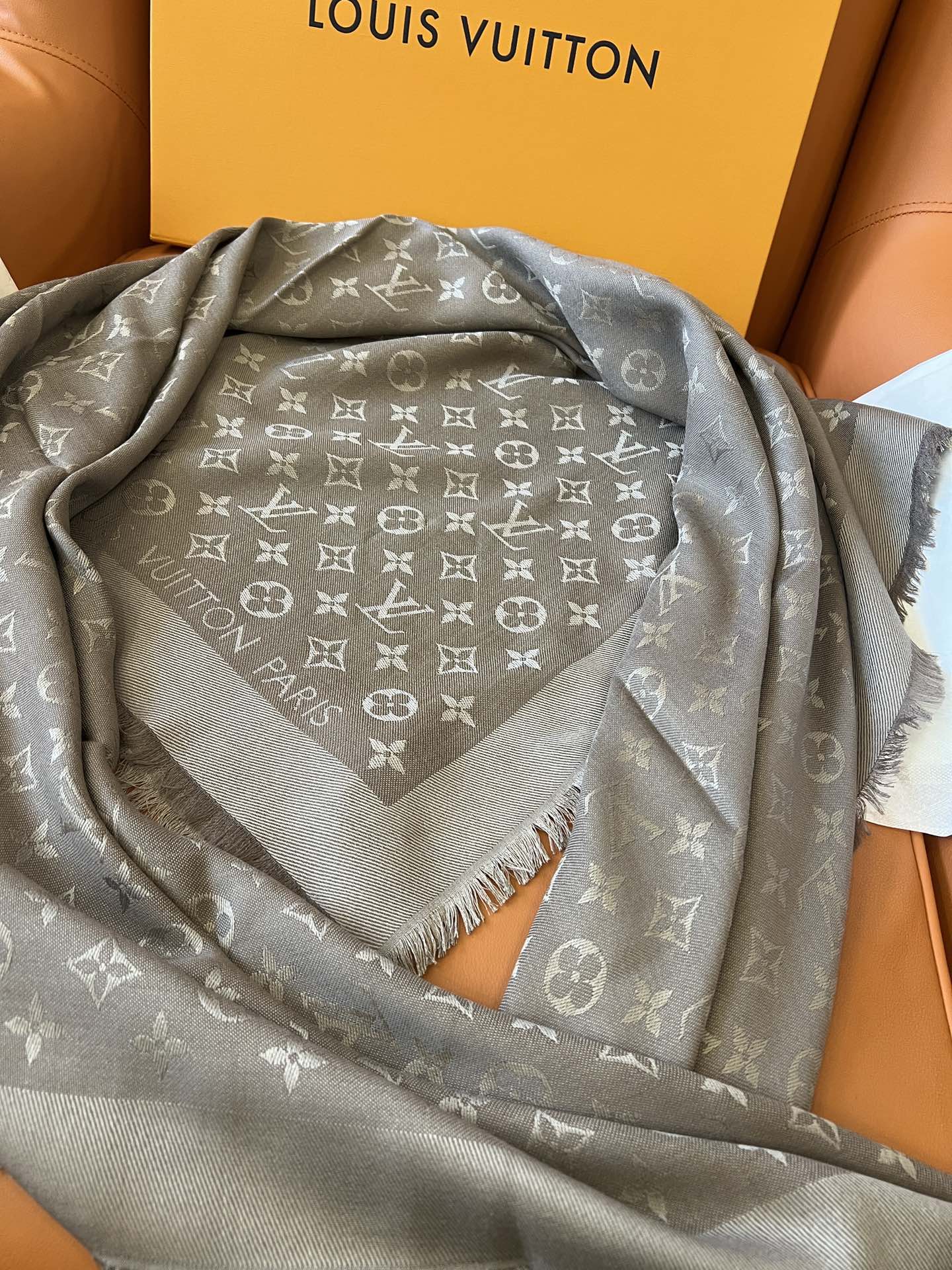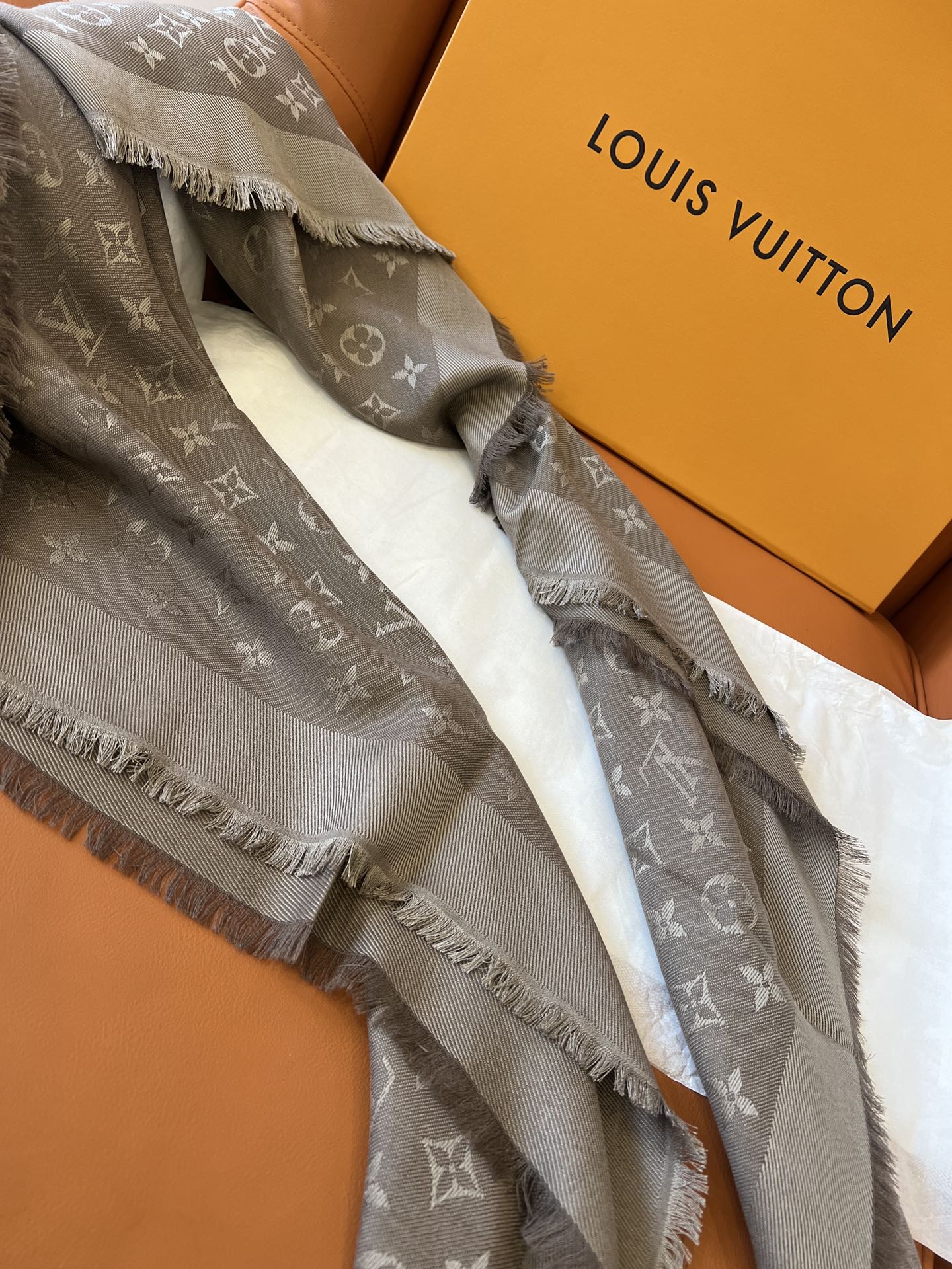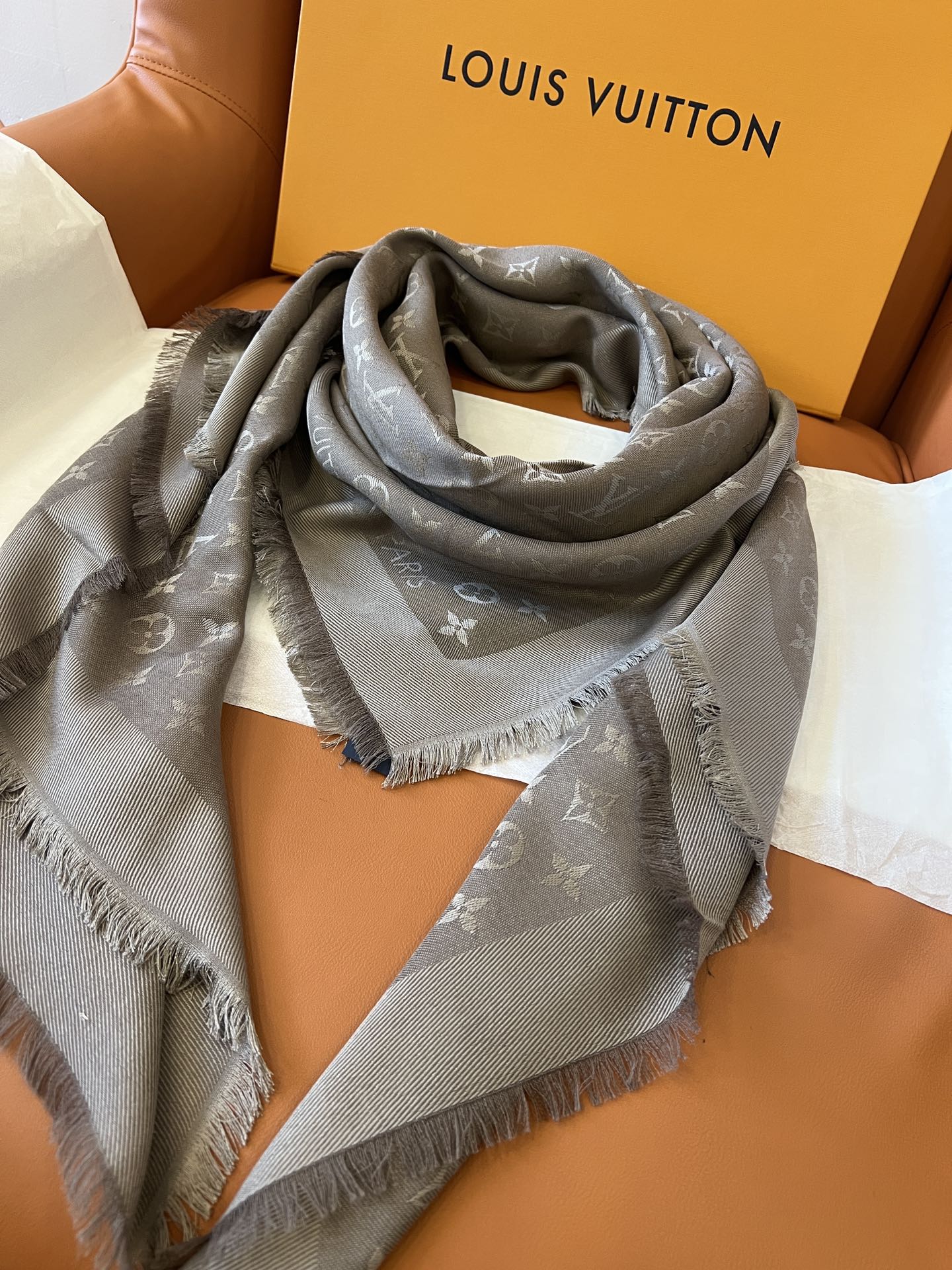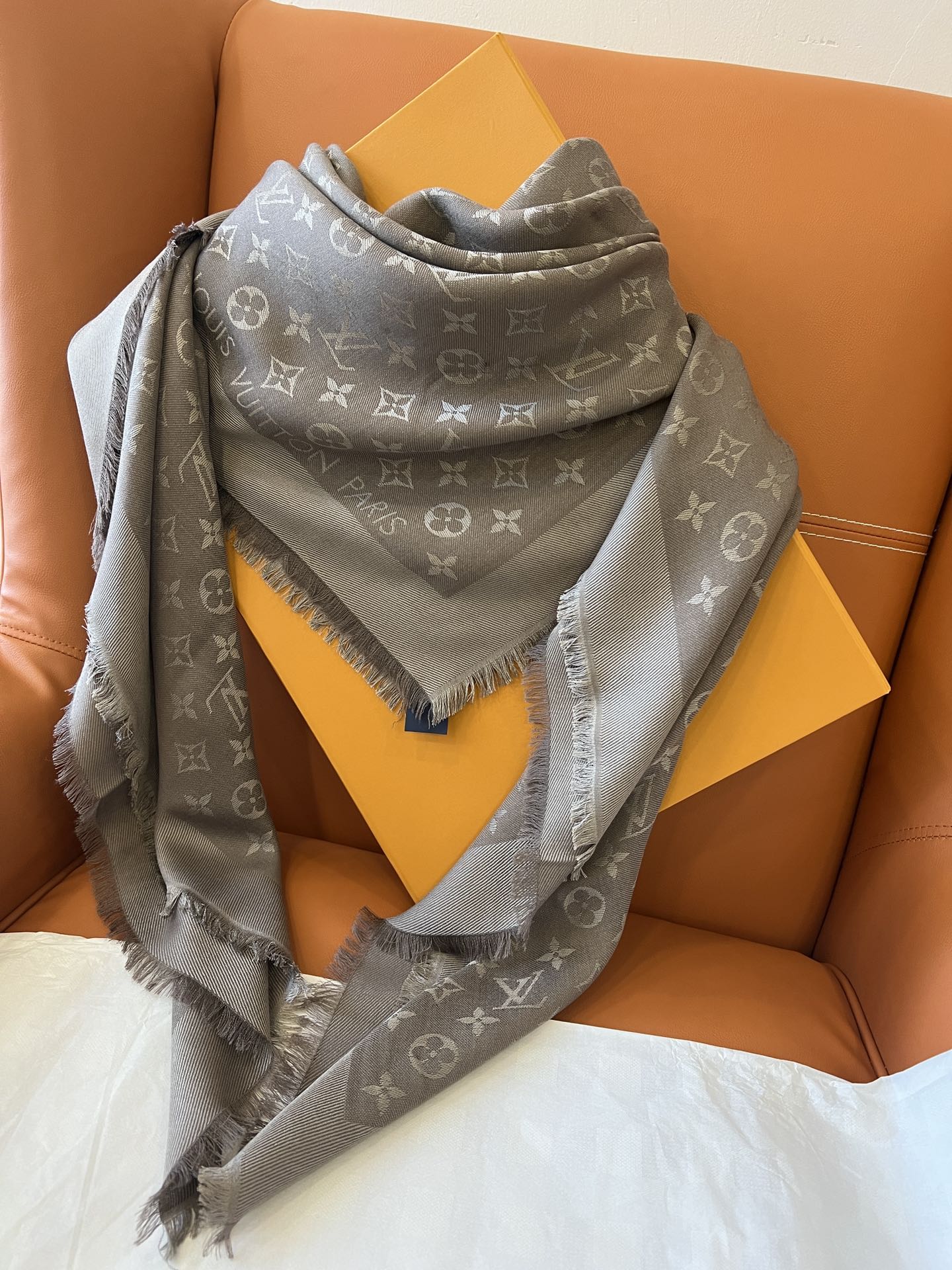 【灰褐色 M78146]驴牌#只用三秒就可以决定买的经典不朽款~百搭 好看 秋季最最合适的单品_60%桑蚕丝40%羊毛 很柔软一点也不会扎肉~142.5x142.5cm大尺寸 无论披肩还是围脖都非常合适