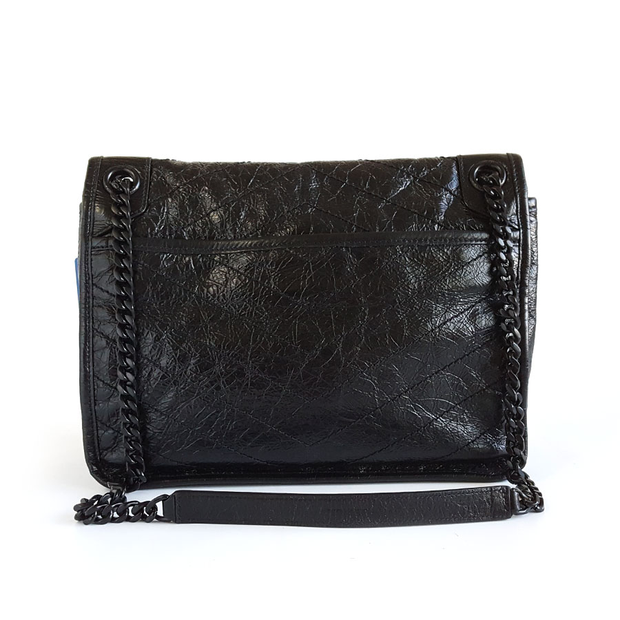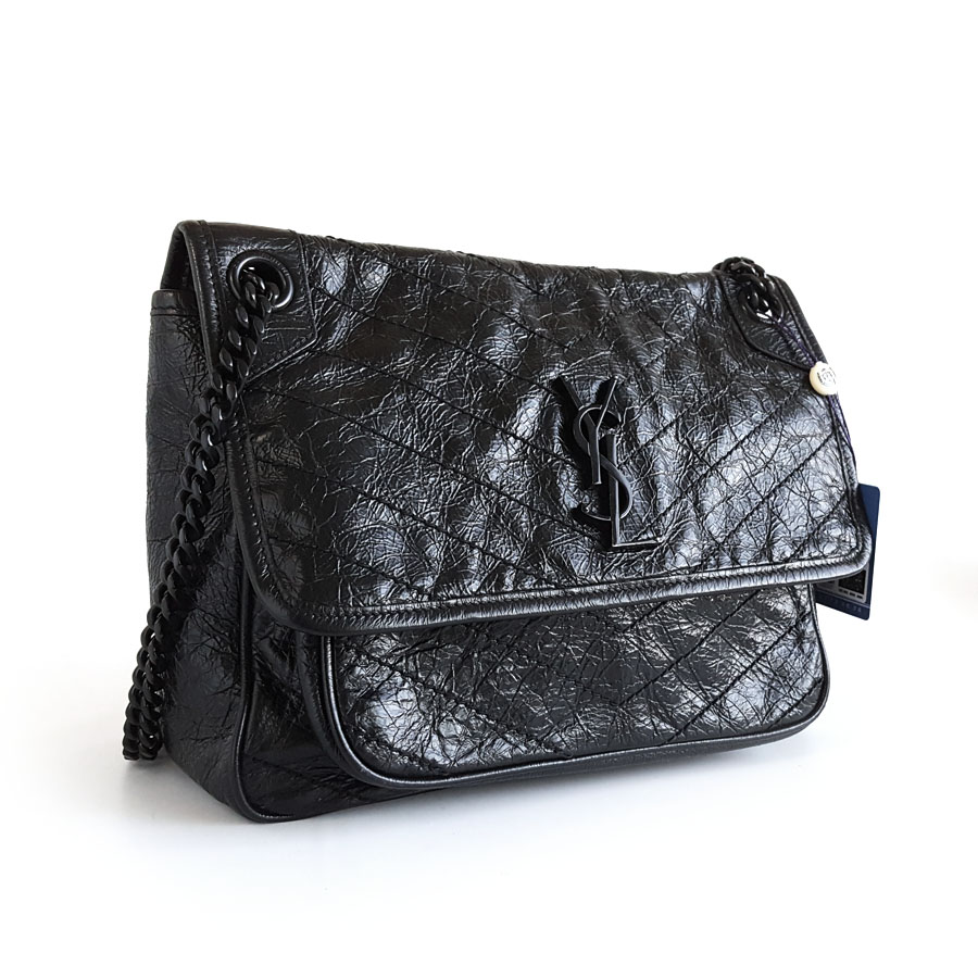 【95新】YSL圣罗兰Niki498958中号全黑niki链条包单肩斜挎包女士281125AK29