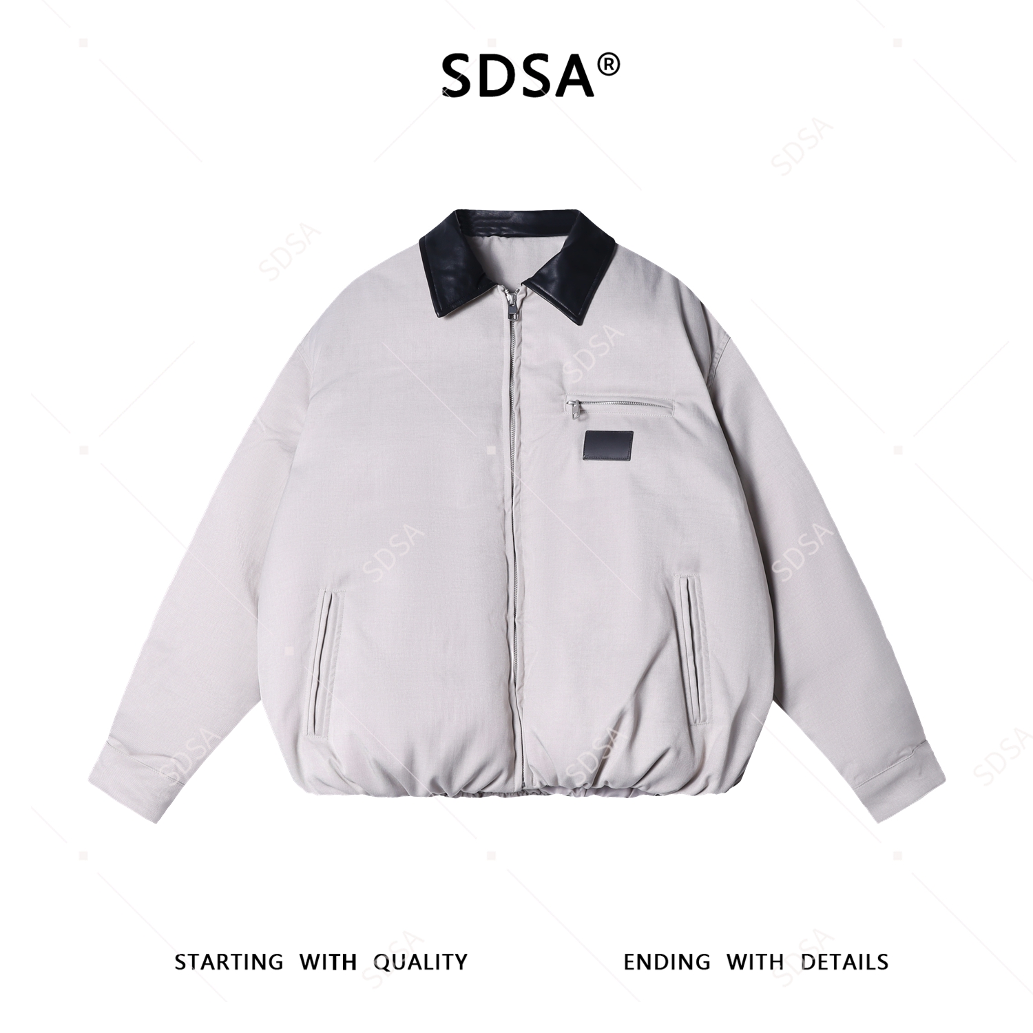 553SDSA男士秋冬新款痞帅男装美式复古翻领拼接棉服外套拉链潮牌时尚