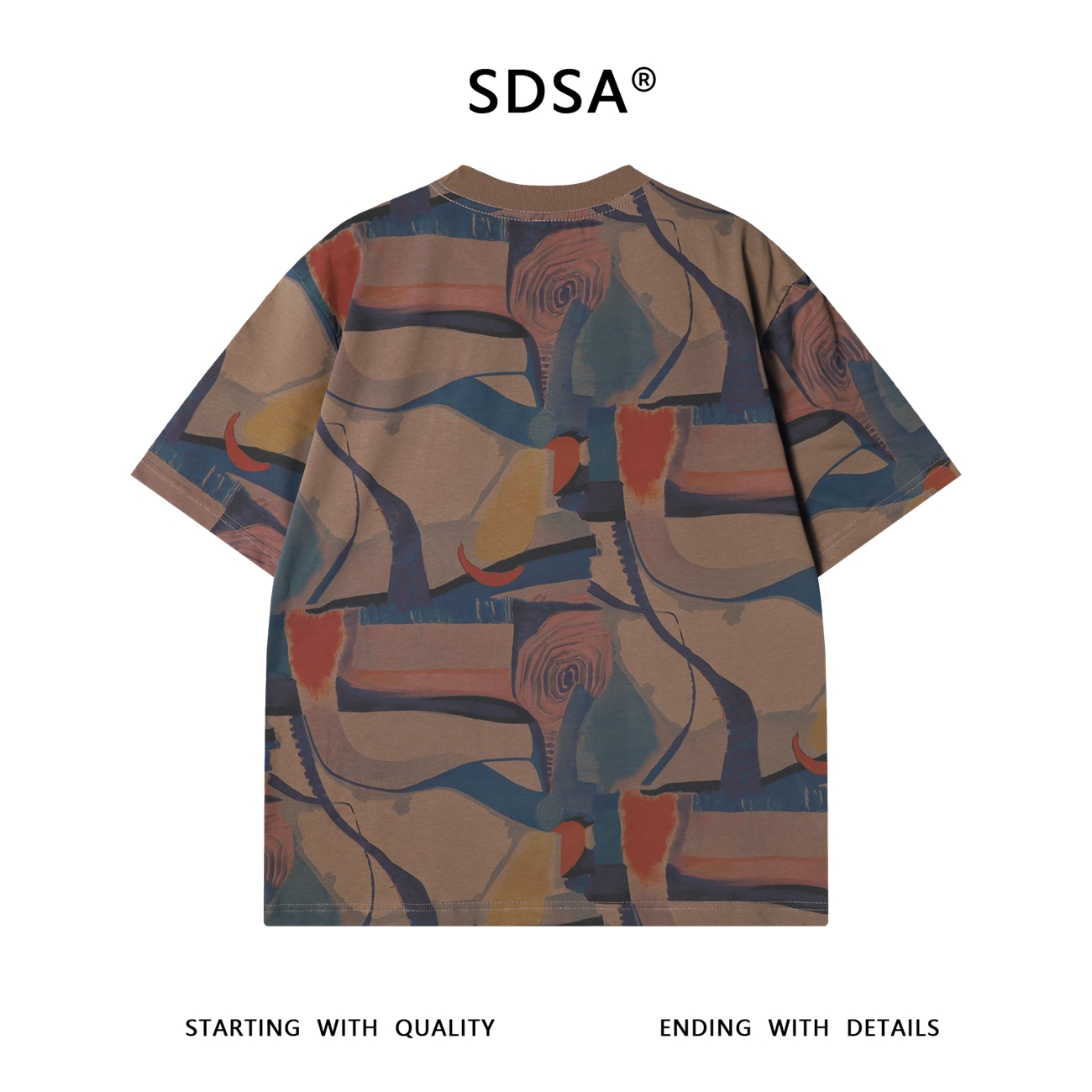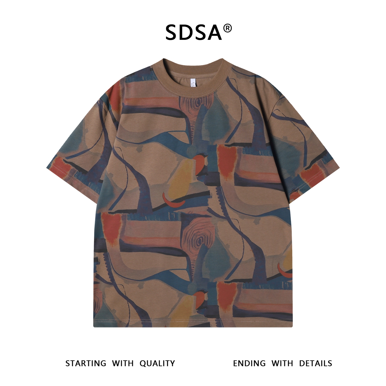 T2675夏季高级感新款美式潮牌彩绘圆领短袖T恤百搭潮流宽松套头上衣