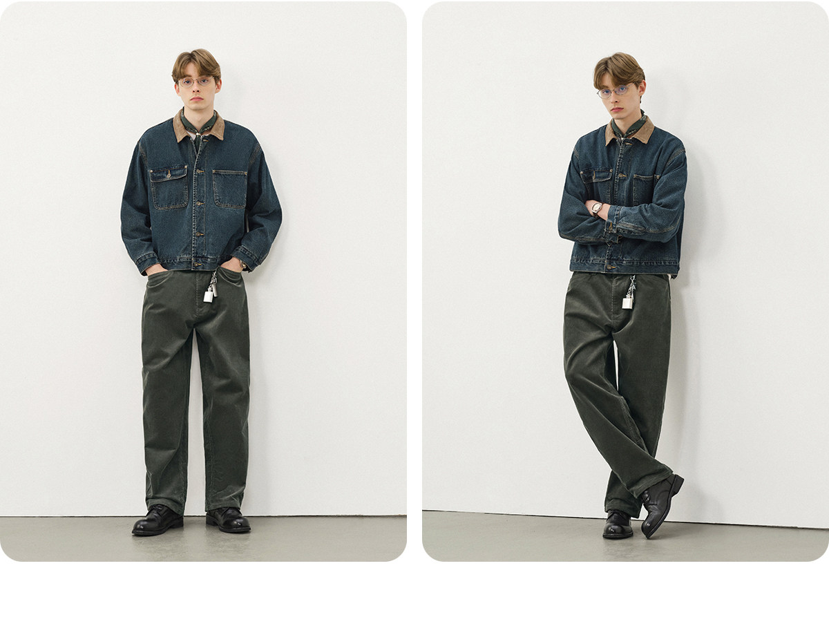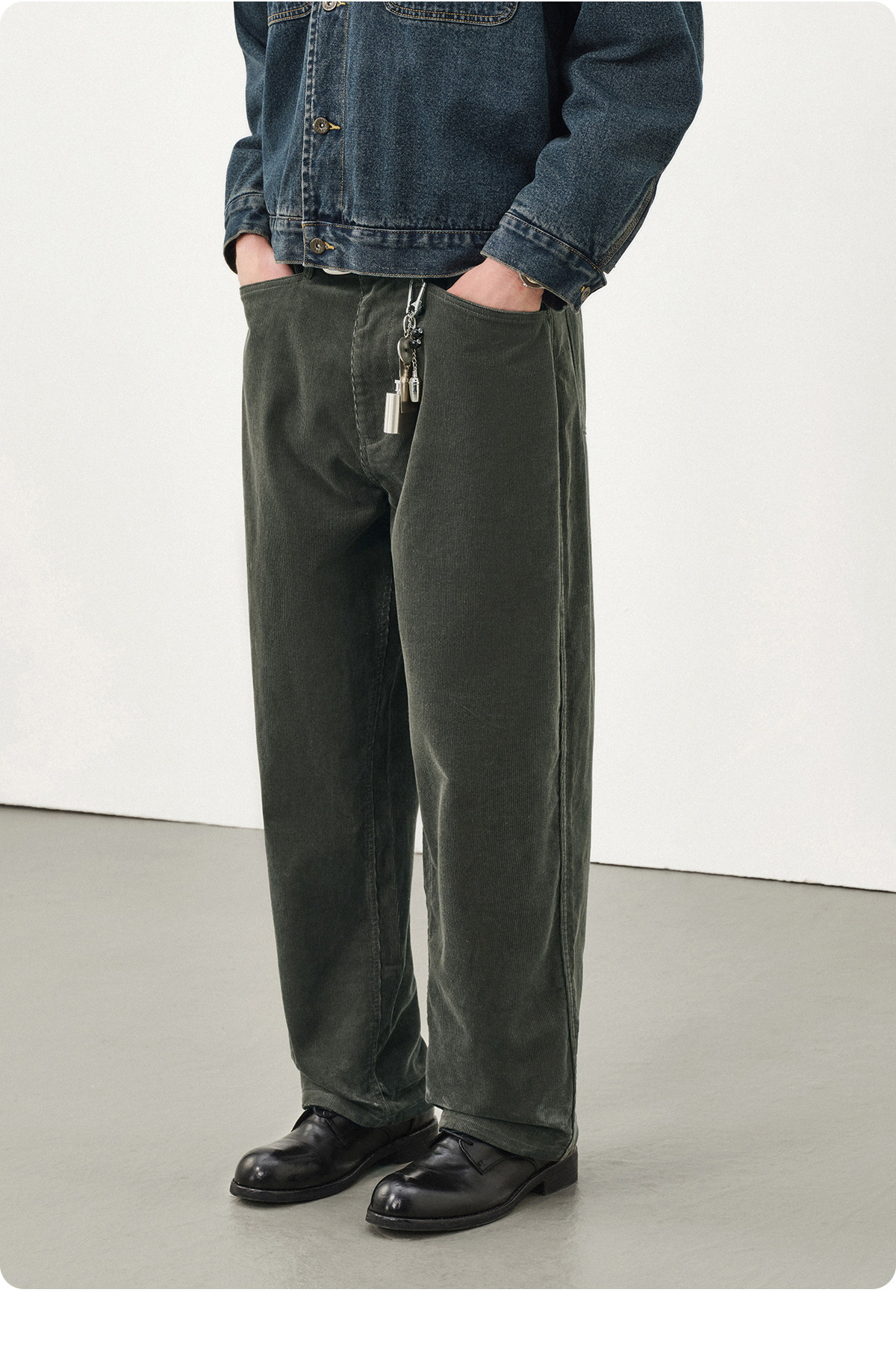 714street复古灯芯绒直筒裤2025秋季新款男士休闲裤水洗工装长裤