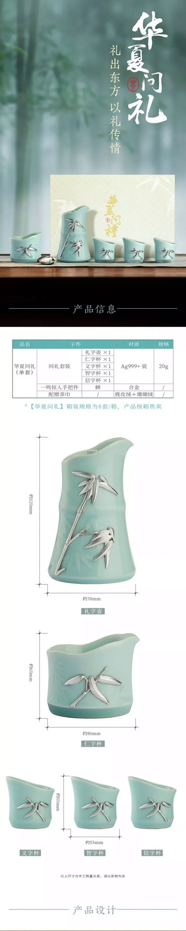 【工行】华夏问礼茶具套装 20克足银+青瓷 精美礼盒 送礼自用佳品