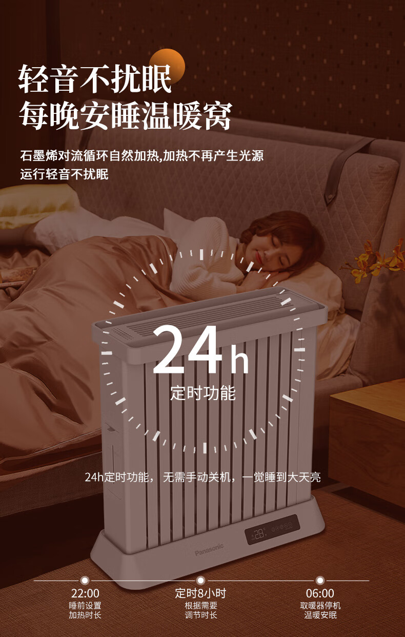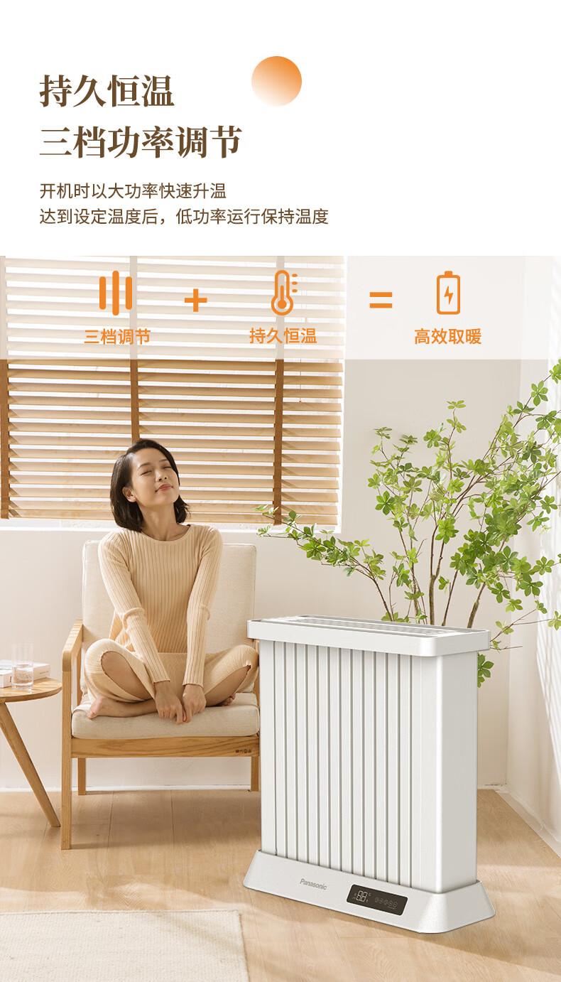 松下(Panasonic)取暖器电油汀石墨烯家用暖器片大面积速热加湿电暖器客厅速热防烫干衣烤火炉 DS-D223ACW【石墨烯+双U管双倍发热】