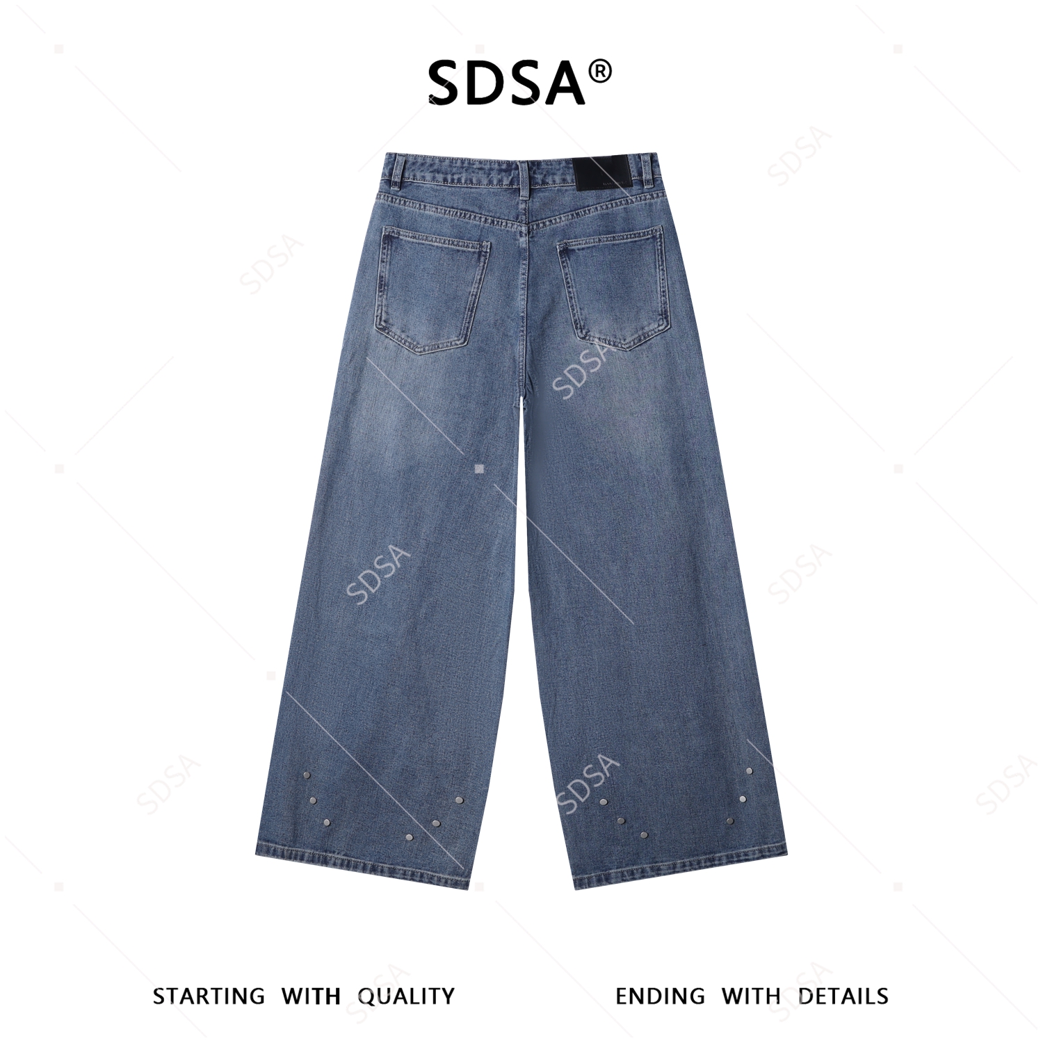 SDSA男装2026新款高贵轻奢美式复古破洞铆钉阔腿牛仔裤百搭时尚