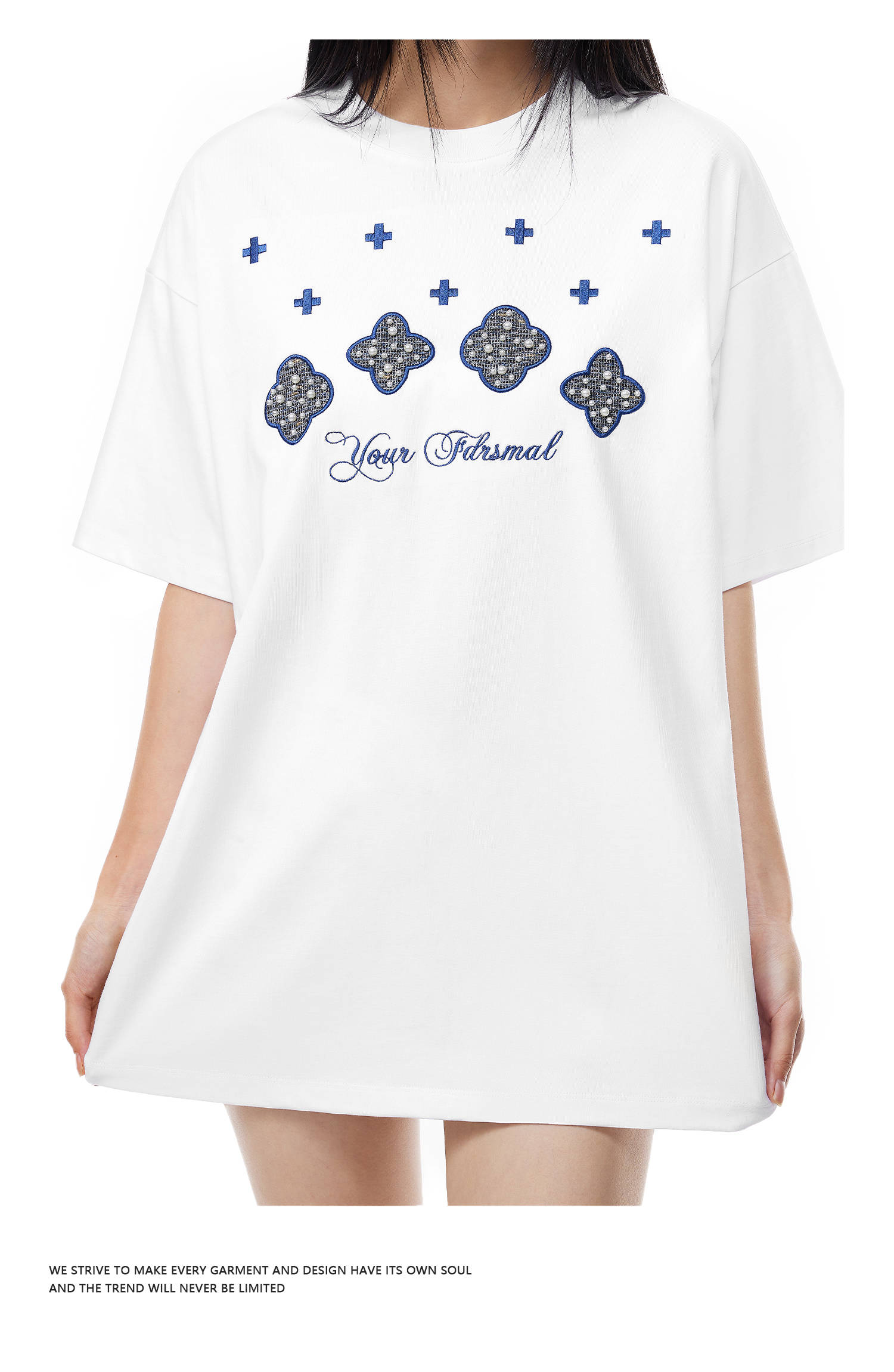 FDR官方店 珍珠肌理刺绣圆领宽松短袖t恤男女夏季潮牌情侣装上衣
