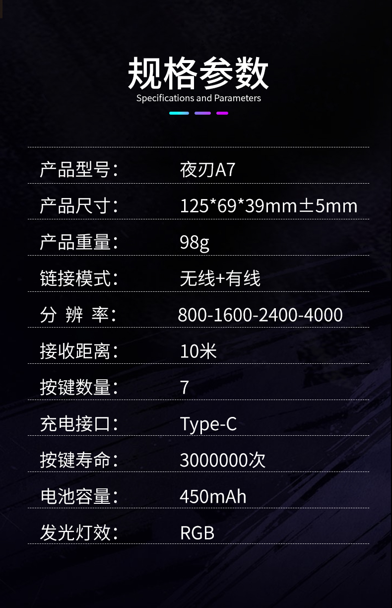 【纽曼 · 夜刃A7鼠标】双模游戏发光电竞鼠标RGB游戏专用重量化鼠标