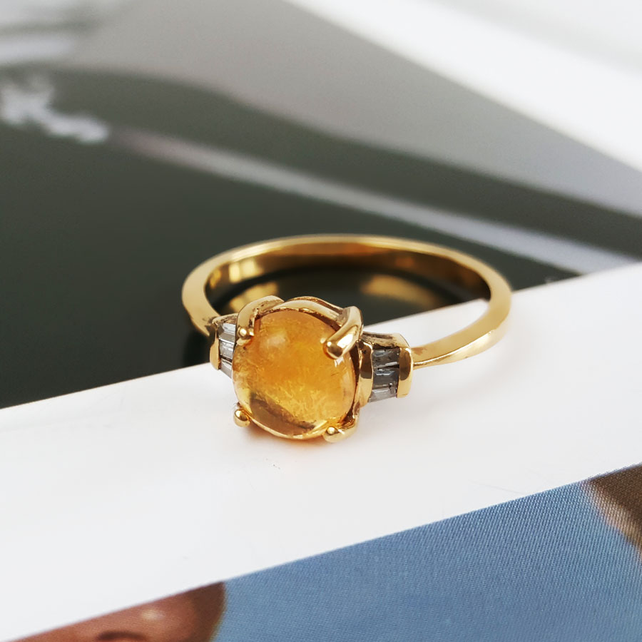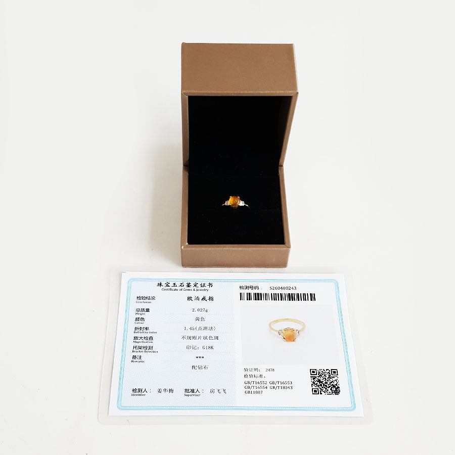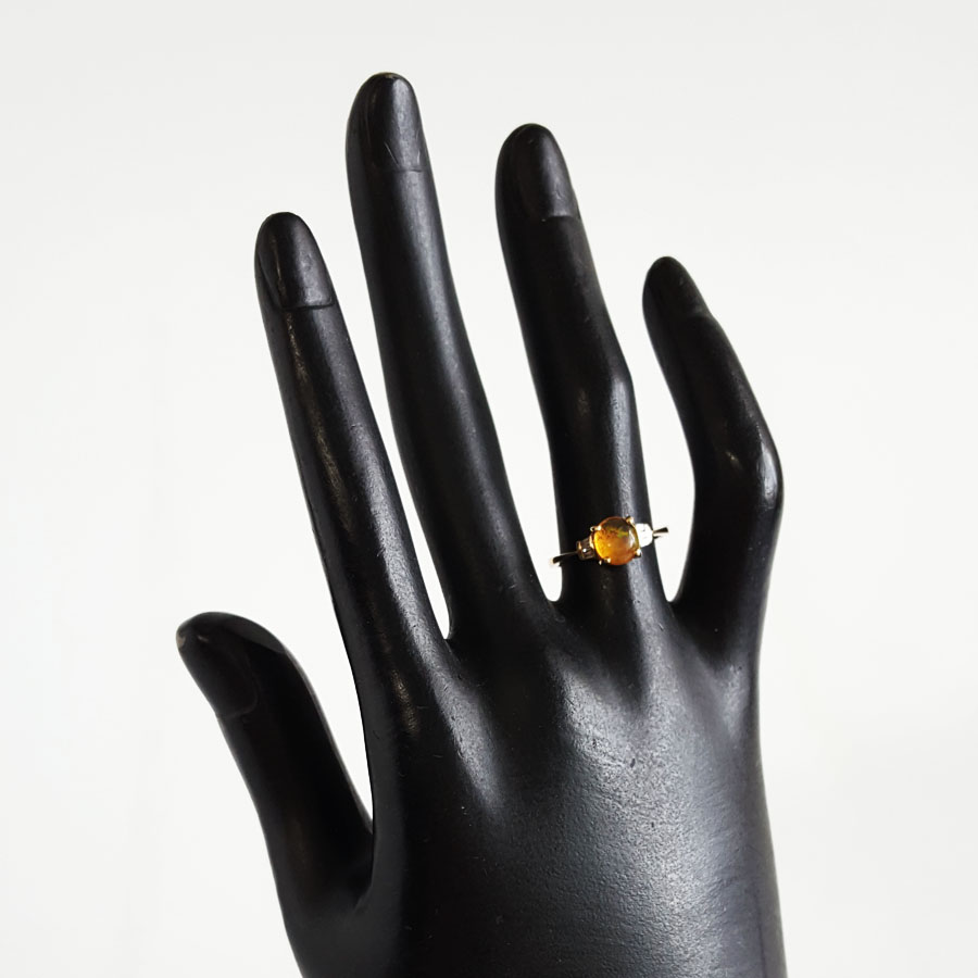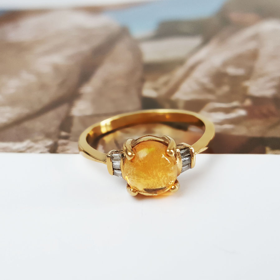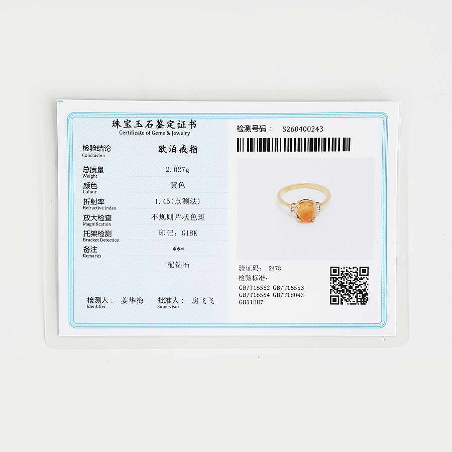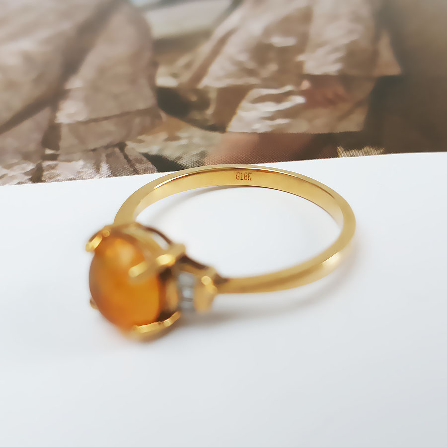 名称 | AU750黄金镶钻镶天然近1克拉火欧珀(好运、浪漫)蛋面戒指 |