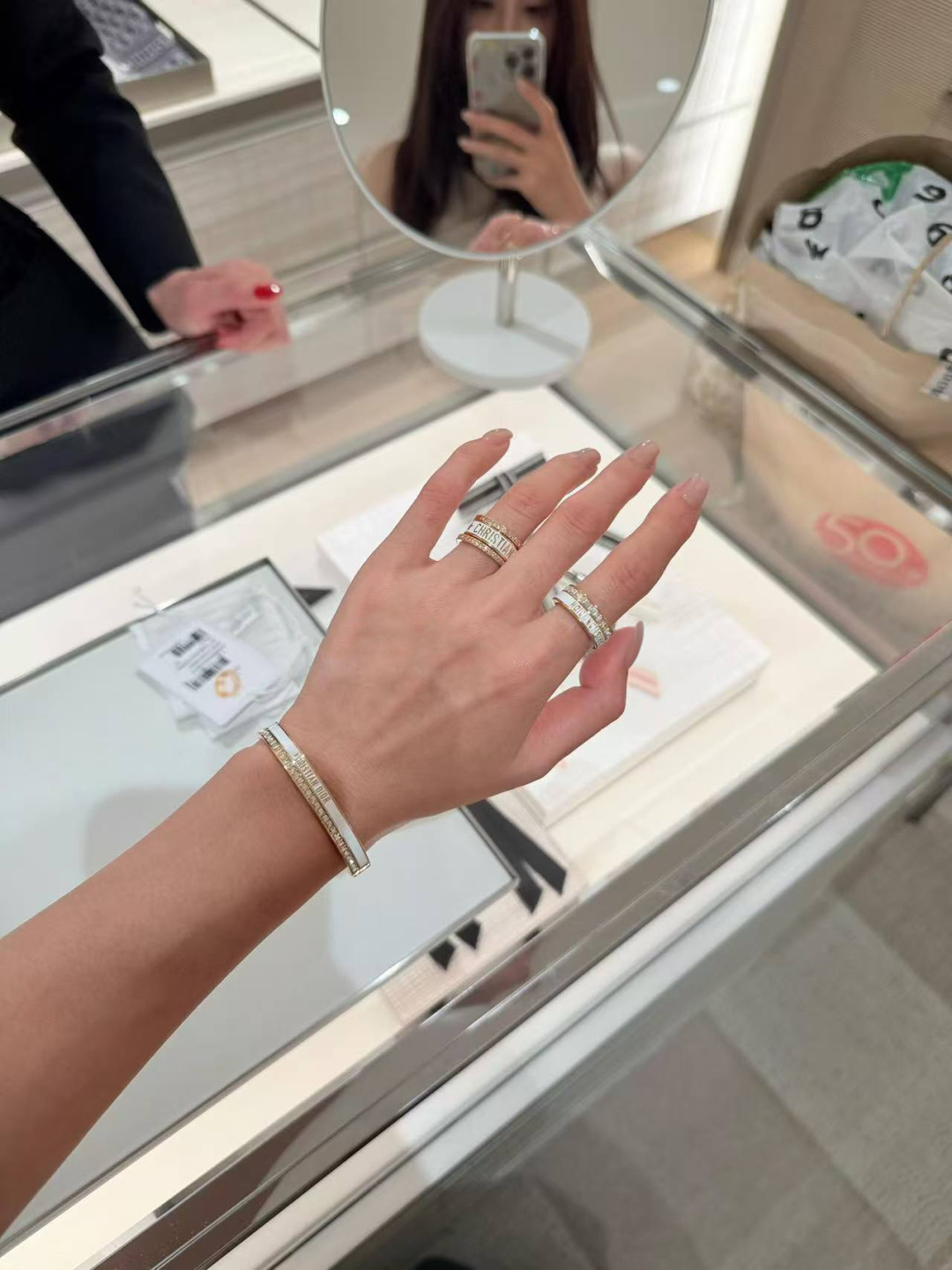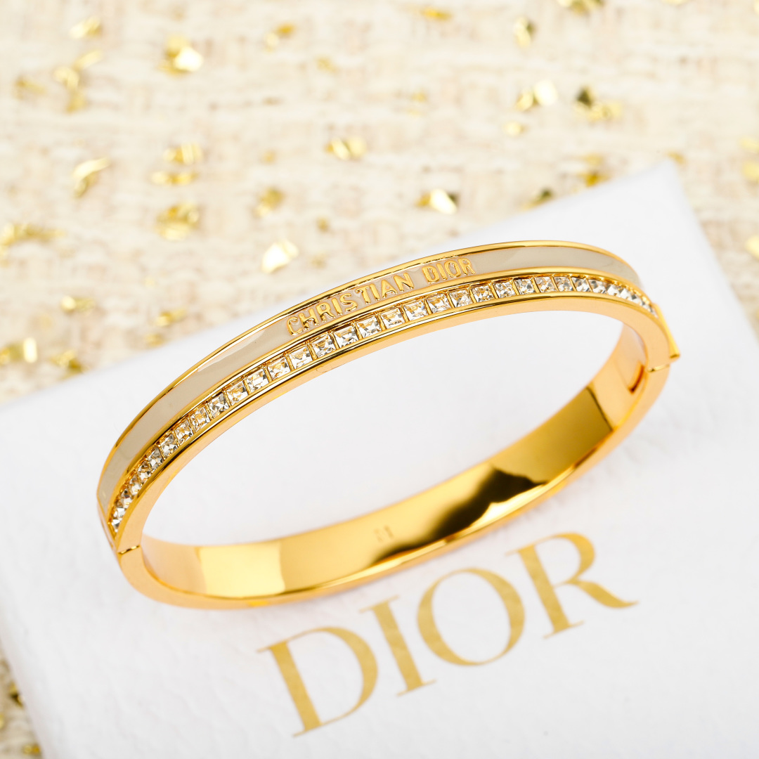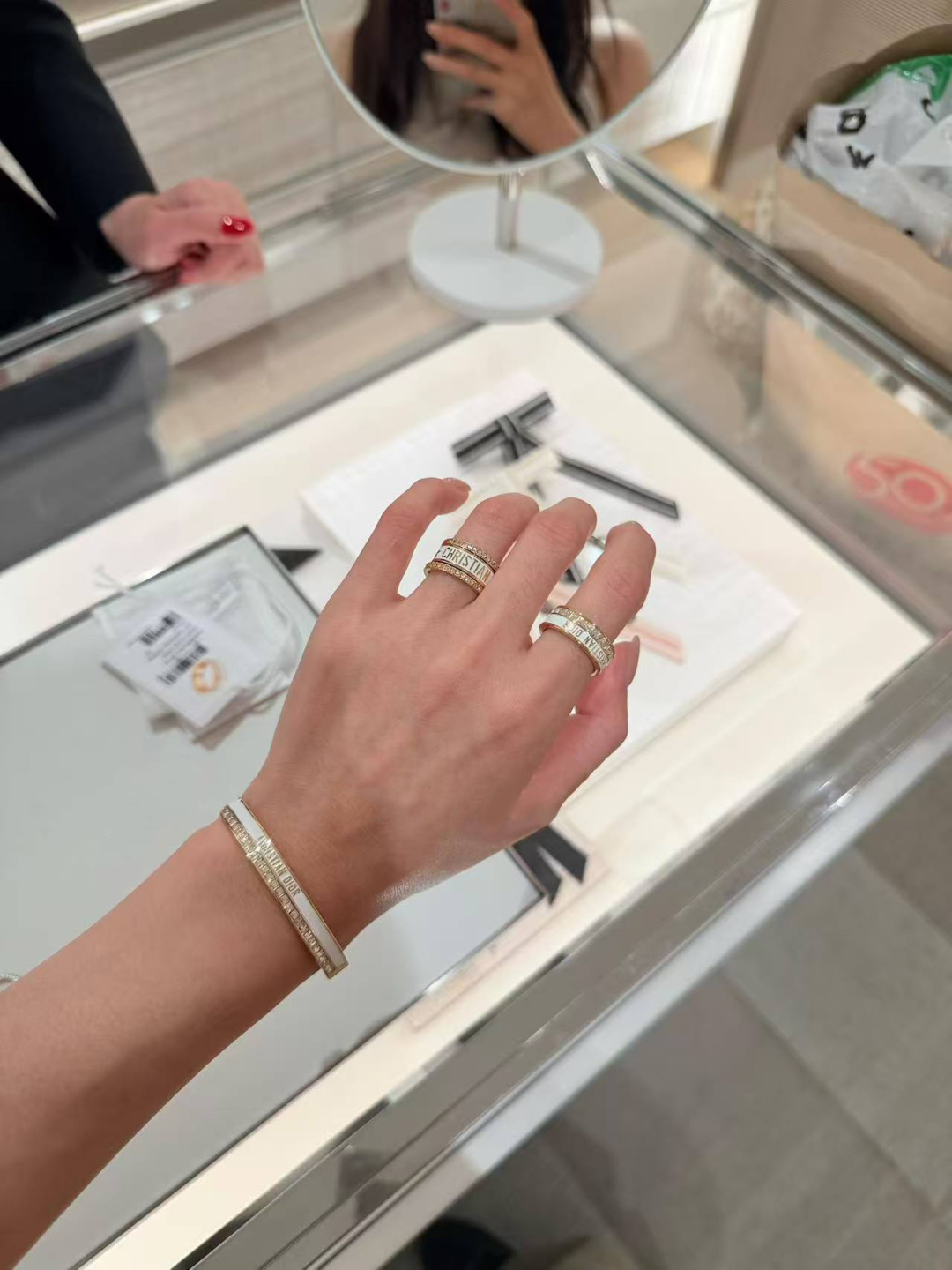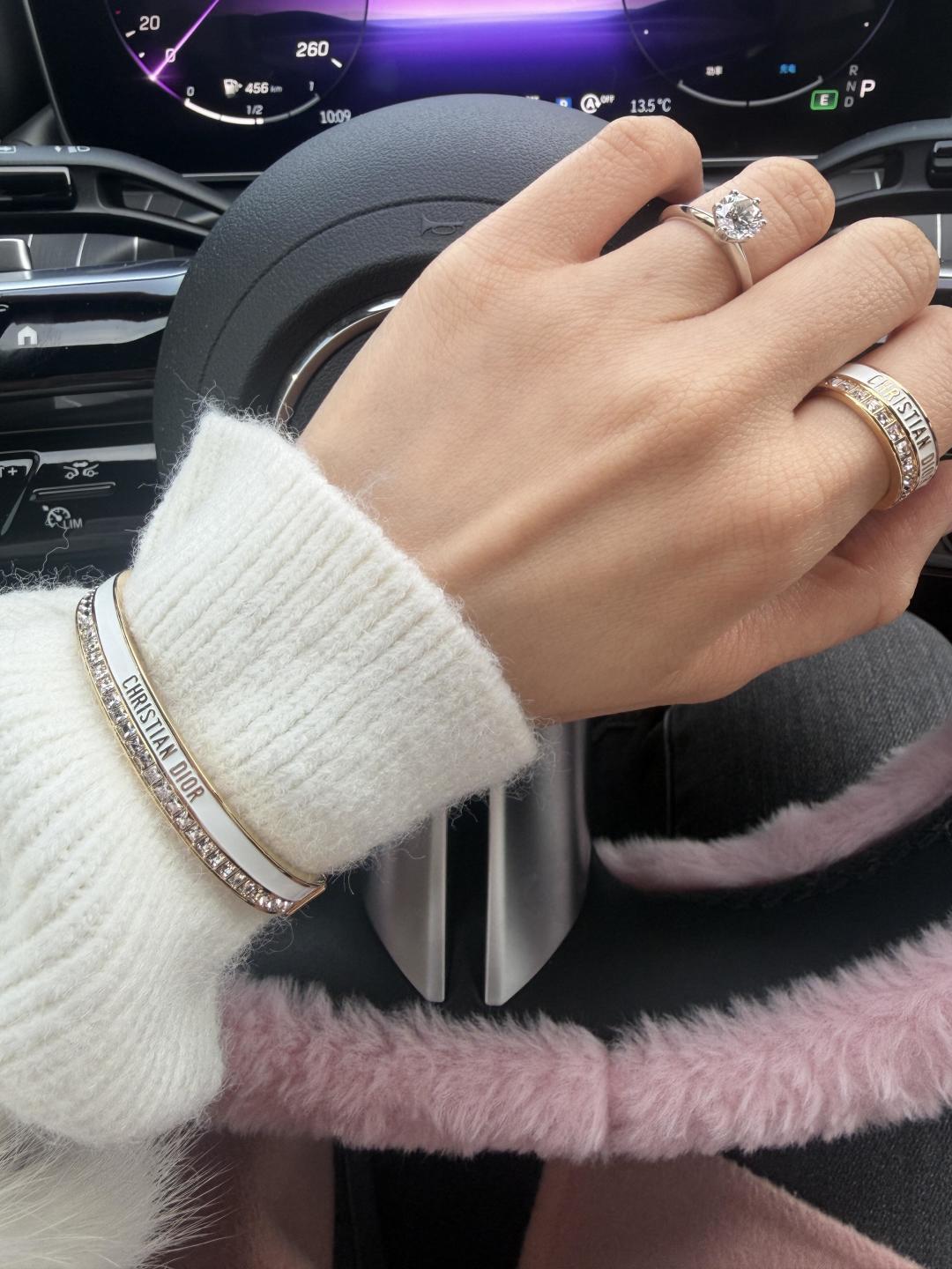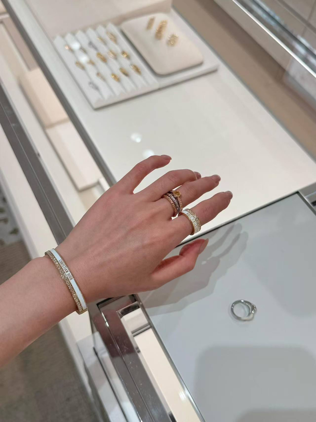 【Dior 迪奥分层字母水钻手镯】💍被D!or这枚戒指的质感拿捏了!金色基调高级感拉满,“CHRISTIAN D!OR”字样搭配闪耀方钻,细节处尽显品牌底蕴。叠戴或单戴都很有腔调,戴上它仿佛把法式奢华戴在了指尖,日常出街瞬间提升造型精致度,是能让穿搭更具辨识度的小心机单品~