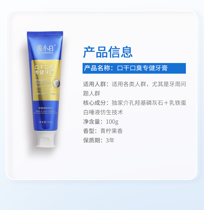 【功效:消除口干口臭】俊小白口干口臭专健牙膏 介孔羟基磷灰石+乳铁蛋白