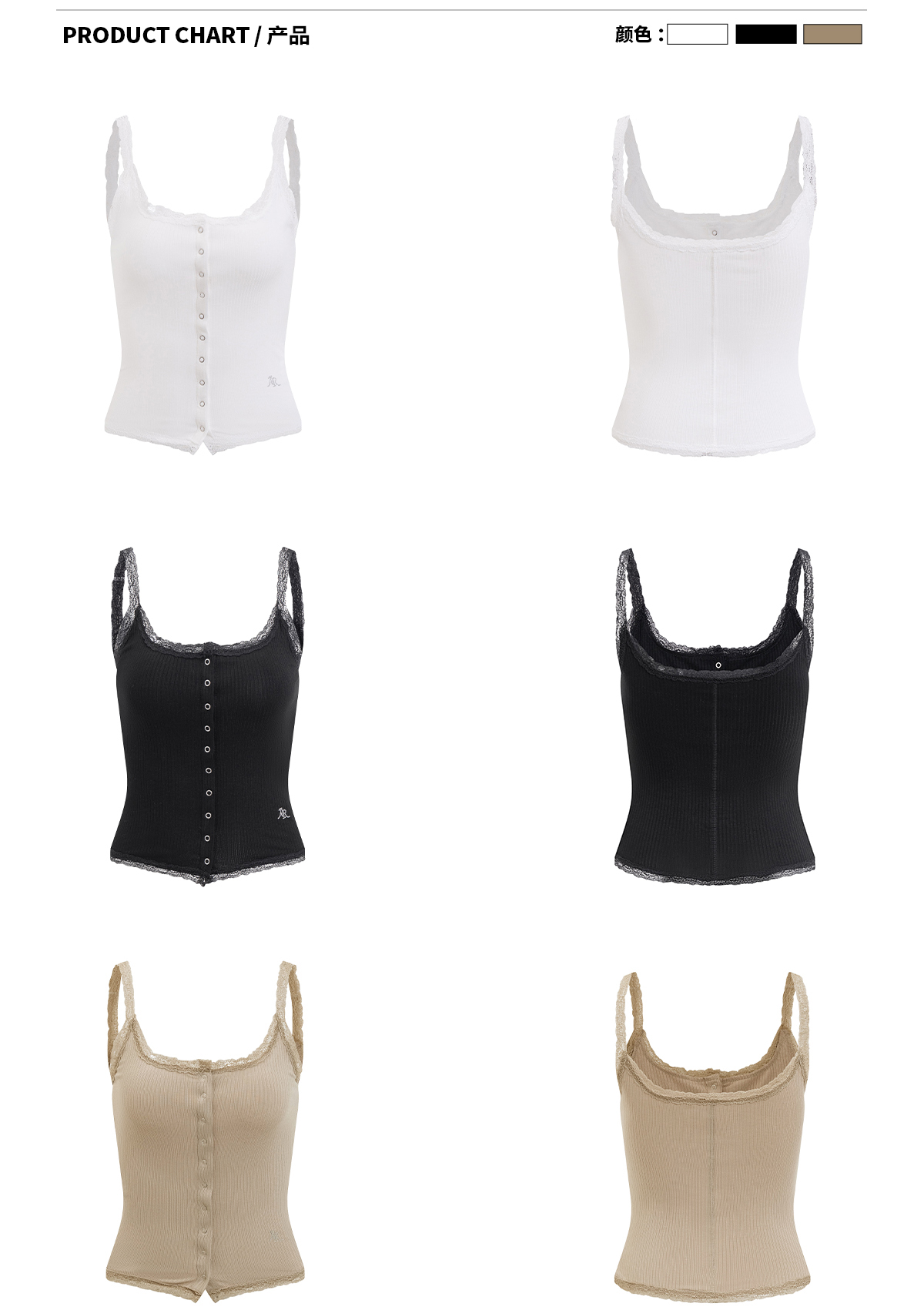 Ariseism 美式复古 修身蕾丝边吊带背心女夏新款修身上衣