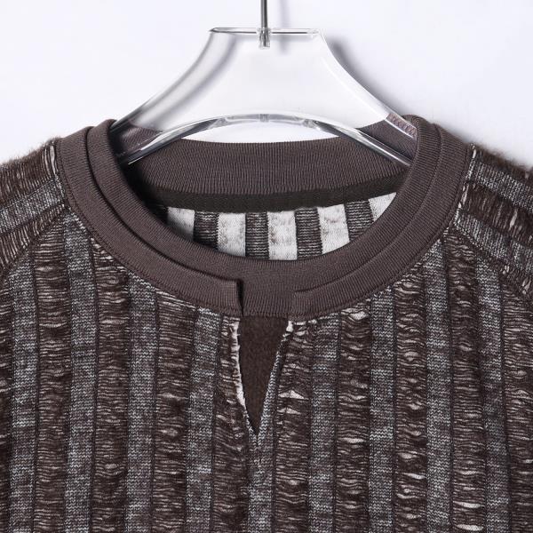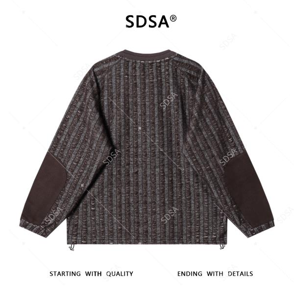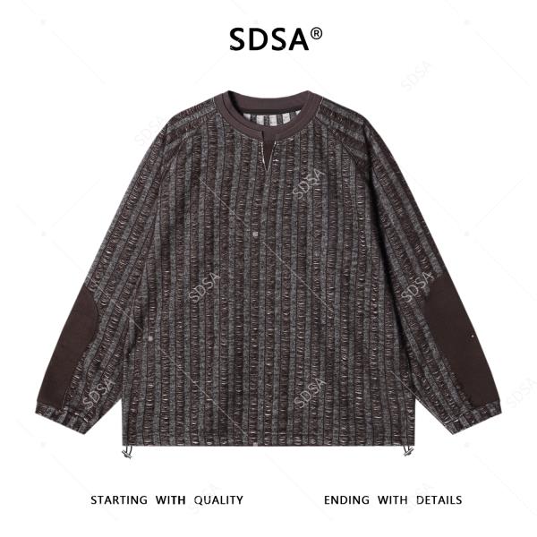 51859SDSA男士秋冬新款痞帅男装拼接磨破竖纹圆领卫衣下摆松紧设计上衣