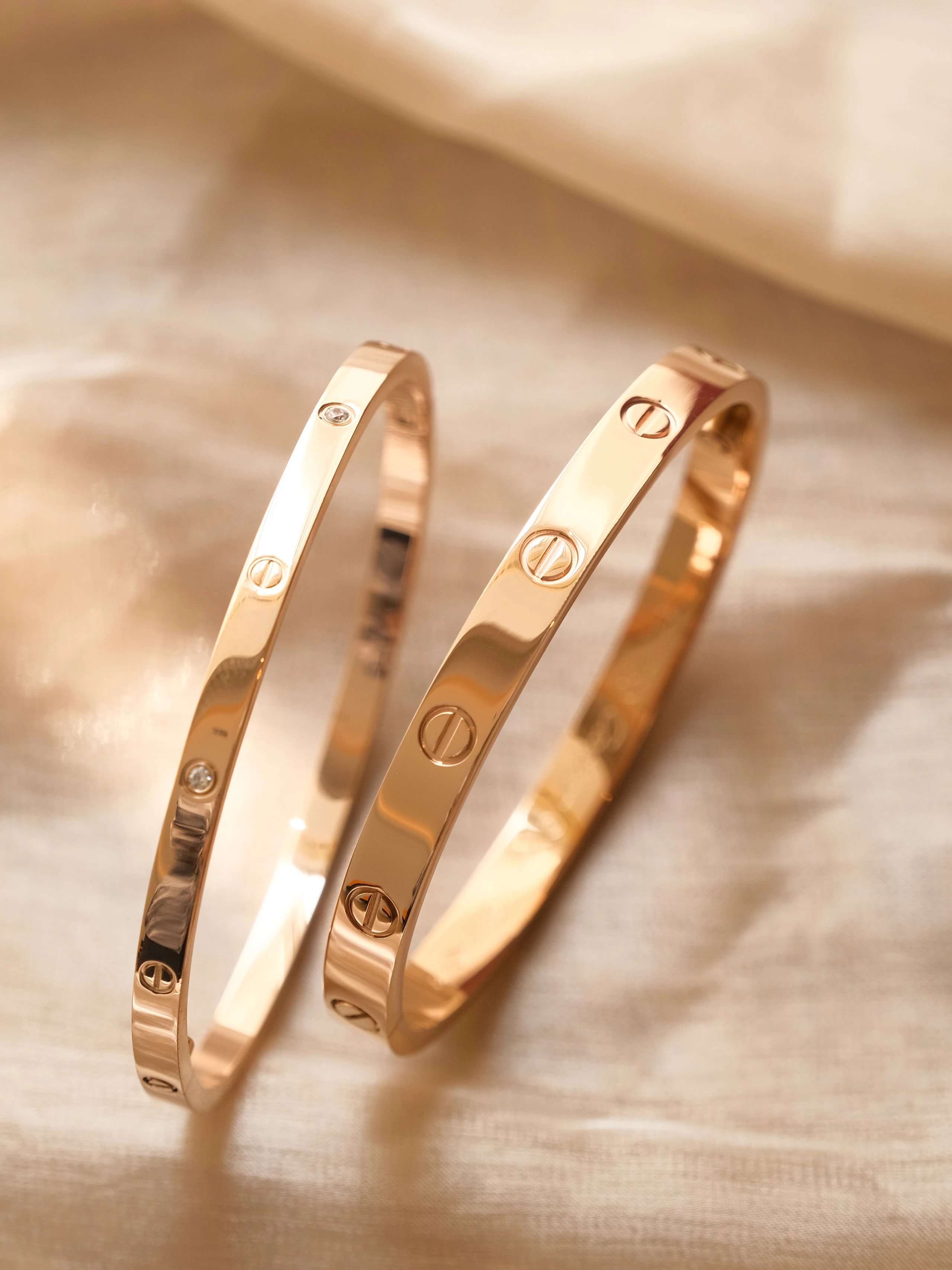 香港贸易公司代工厂原版开模,内部数据加工,因此成品形状大小、克重、色泽都跟原版一模一样。专柜原版字印,绝非市场普通激光激字,无论字印大小、深度都跟专柜一致。我家的卡地亚玫瑰金带钻手镯在放大镜下的细节:1.Cartier的Logo刻字。卡地亚正品的Logo字母都是连在一起的,就象刻的连笔字一样。市场低版本饰品上的LOGO字母是分开的。2.手镯的编码。卡地亚正品都会有一个对应的编码,这个编码是由六位数字字母组成的,到目前为止,编码的组合方式有三种。1:一位字母+五位数字;2:两位字母+四位数字;3:三位字母+三位数字。市场低版本的编码则会乱刻,出现7位字母数字组成,或者岀现四位字母+两位数字的情况。3.C标。正品的标c和外面的圆圈是有一定比例的,C的大小刚好合适。市场低版本C往往会过于大或者很小一个,甚至会使用R标。4.最后看看螺丝扣的背面,在这些不引人注意的细节处,是市场低版本最容易犯错的地方。这里的左右两个开孔的大小以及形状应该是一模一样的,并且呈现为圆角方形的状态,不是正圆形也不是半圆。市场低版本则容易大小不一,或者形态不正确。5.手镯材料。手镯主体我们是电镀18K厚金、厚金、厚金!中间的白钻专柜是采用真钻0.15克拉,而我们是采用了莫桑钻,这个火彩闪光度比真钻还要闪,价格也不便宜。我们与专柜区别就是所有的外观、长度、刻字钢印、色彩、光泽度都一致,但材质不一样。毕竟正品项链是用18K玫瑰金、闪亮真钻石,售价45100。我家的手镯材料都是精挑细选无ke挑剔! 美哭了,一见就爱上了