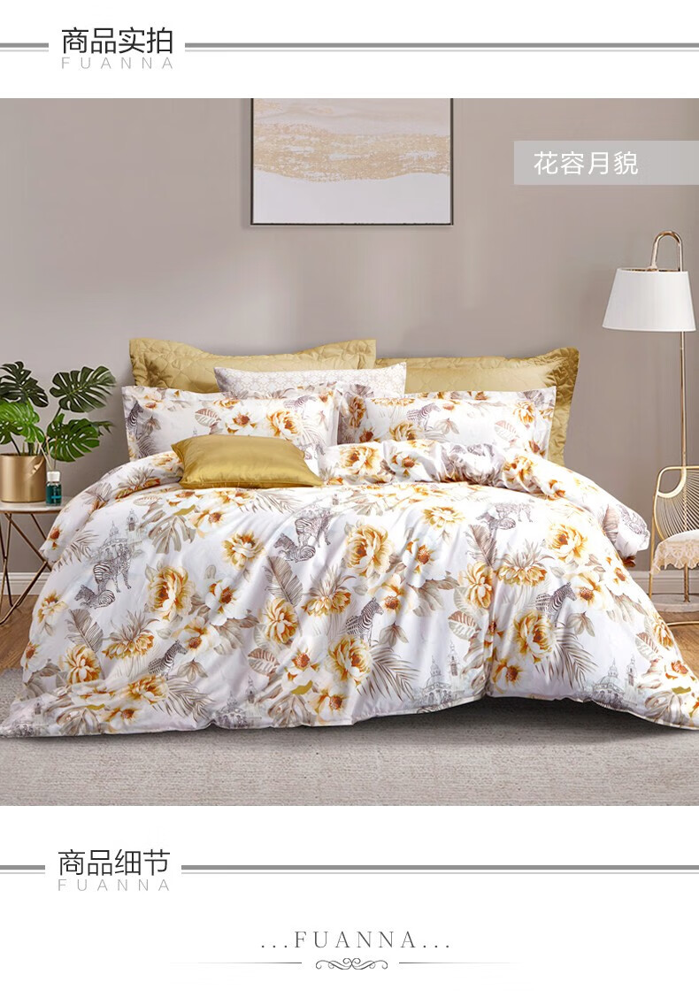 富安娜 纯棉四件套-花容月貌 1.5/1.8m床