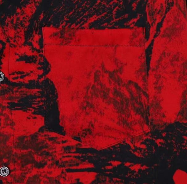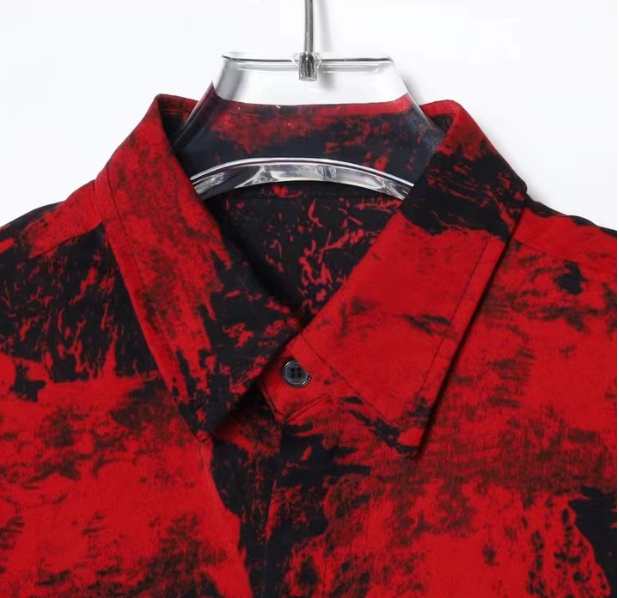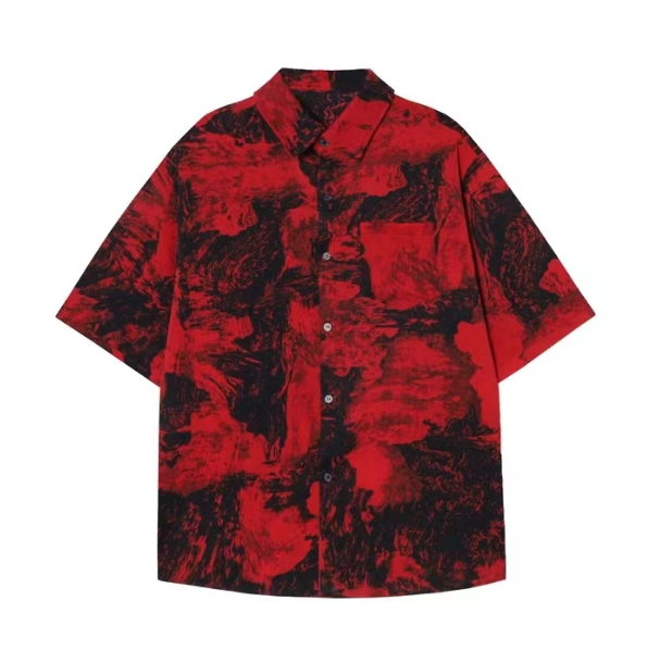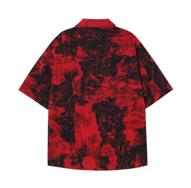 CS21夏季新款潮流复古印花男士衬衫时尚百搭休闲上衣宽松扎染短袖