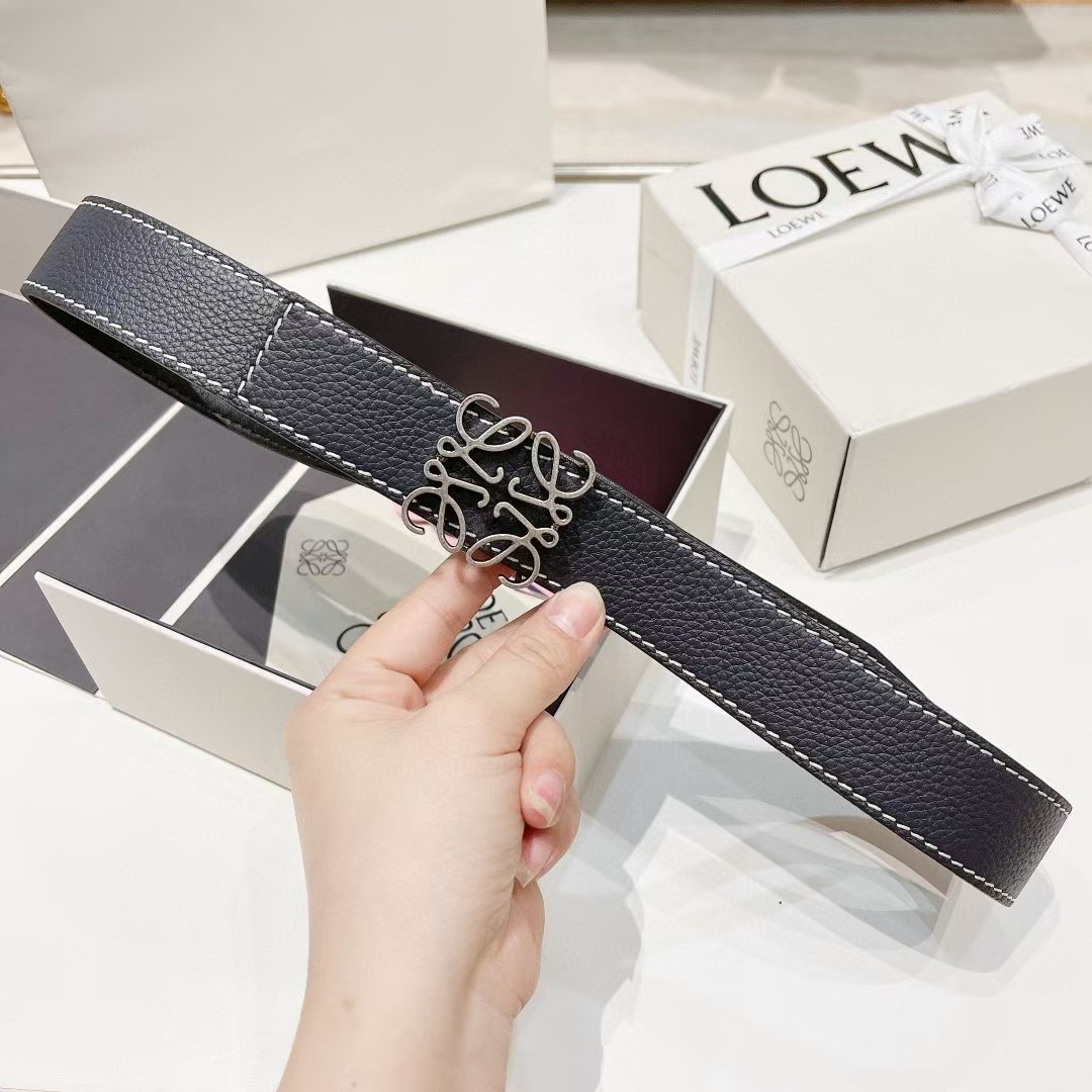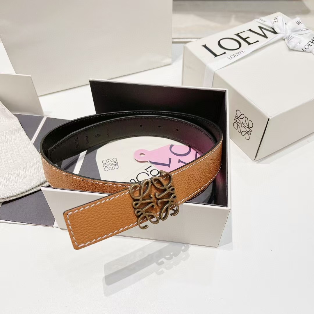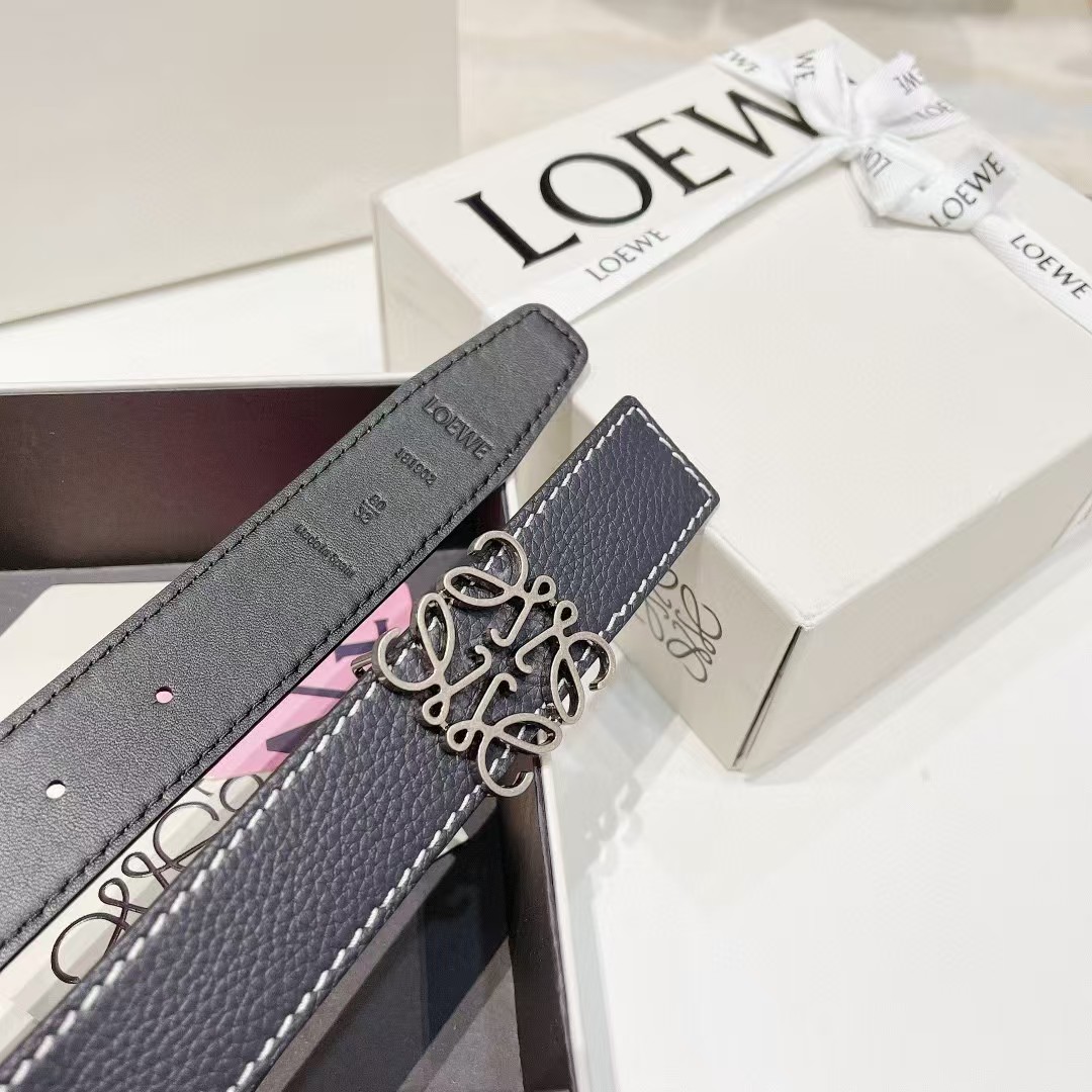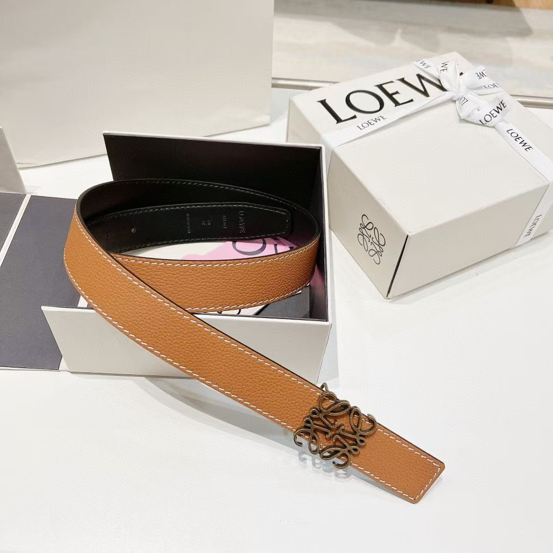 LOEWE罗意威 柔软粒面牛皮革 Anagram 做旧 皮革 男女同款情侣款 黑色/黄褐色 宽3.2cm(CB)