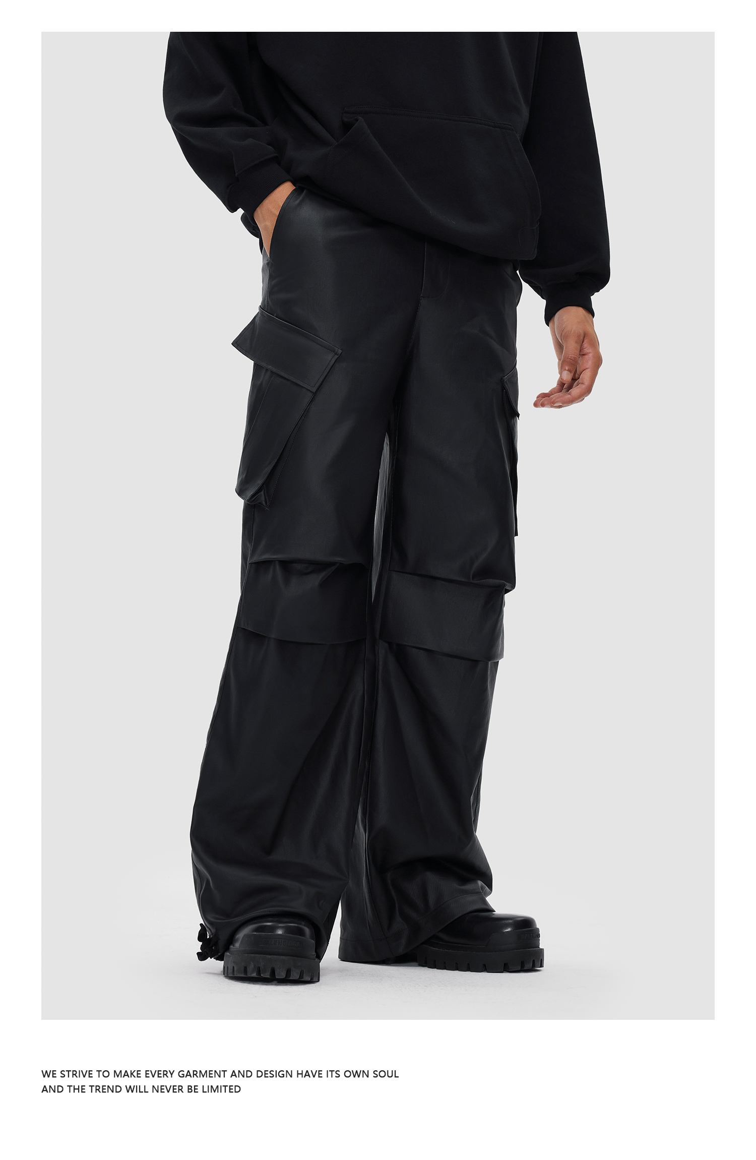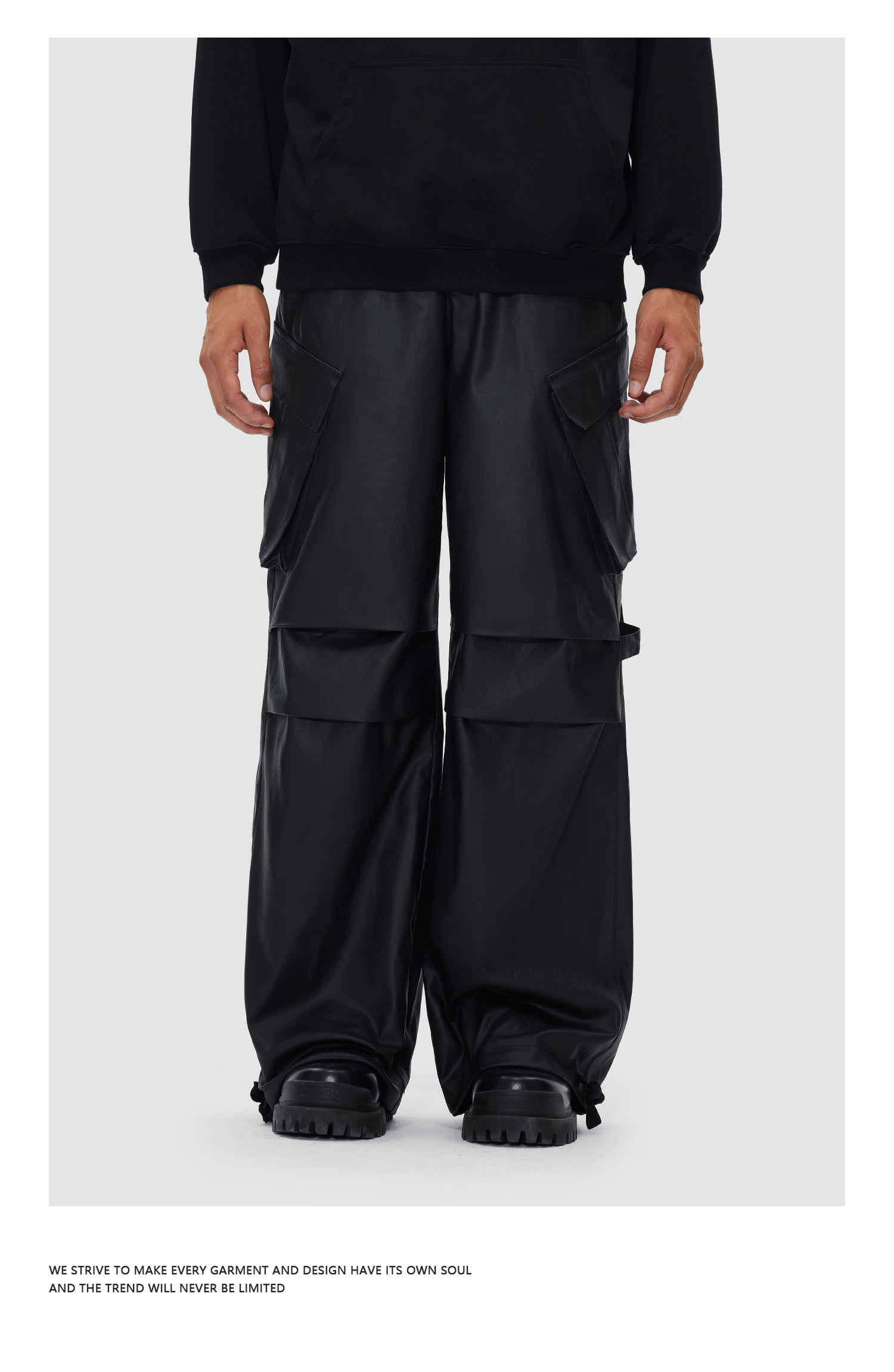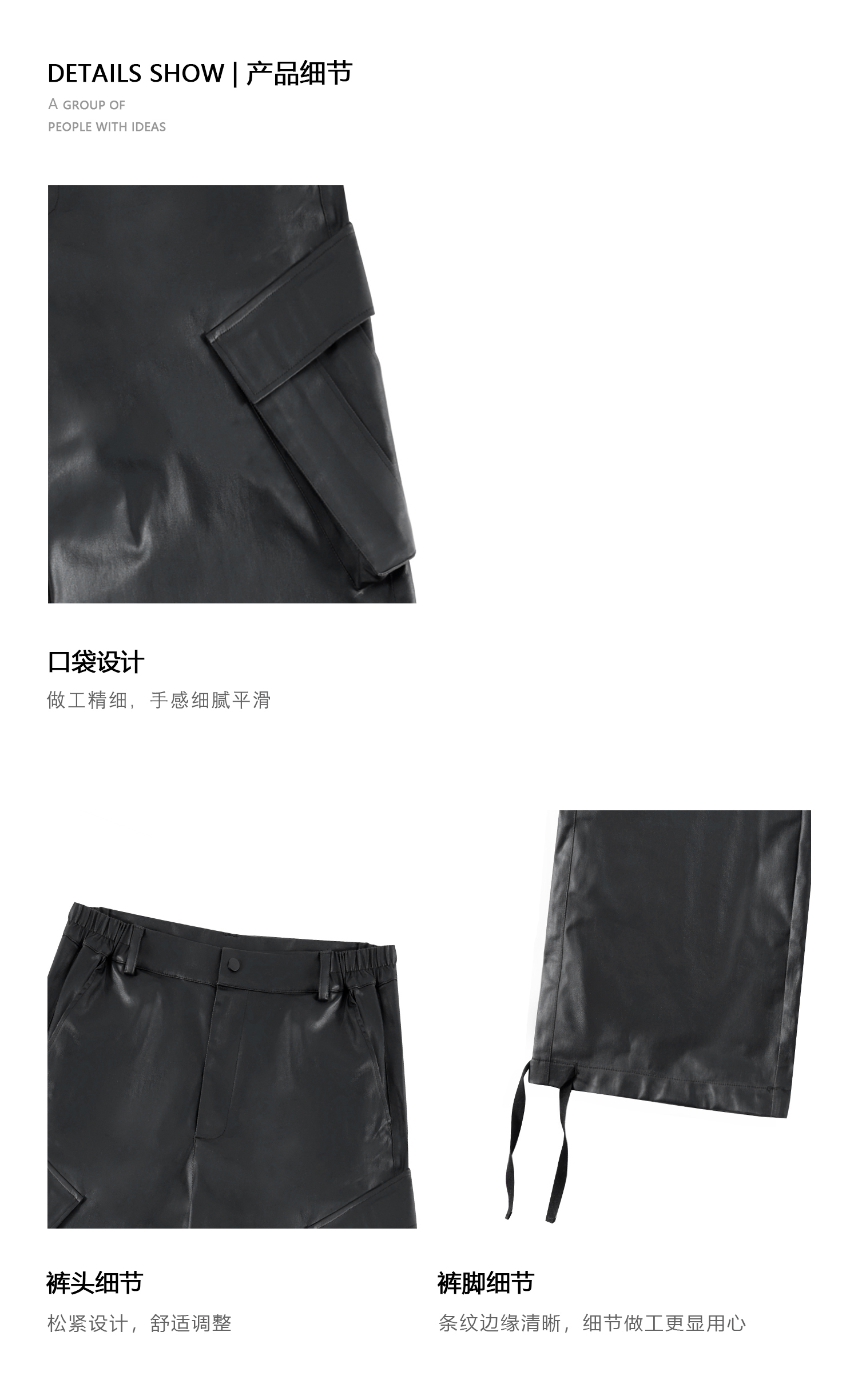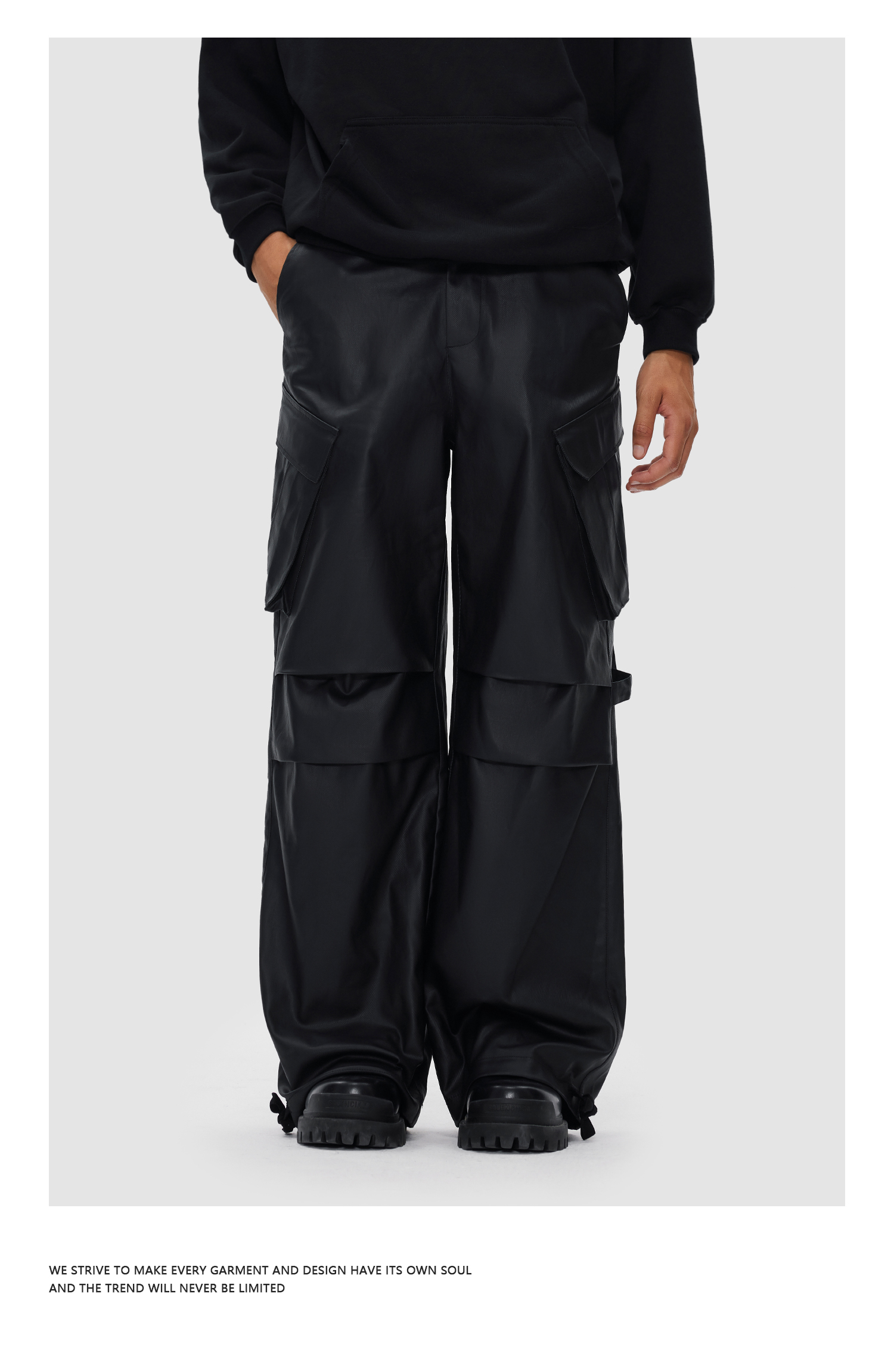 FDR 原创国潮贴袋褶皱工装休闲裤男女宽松情侣直筒裤运动长裤皮裤