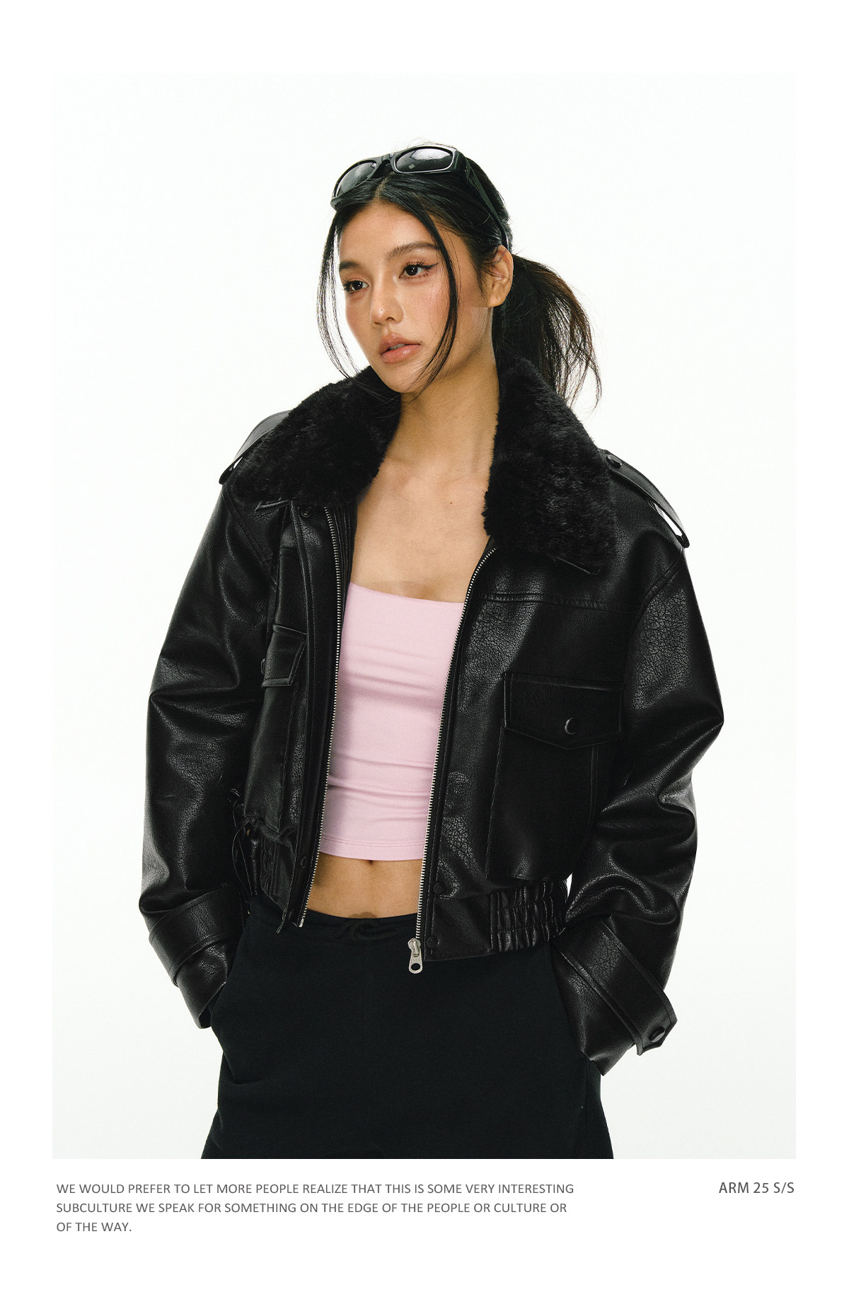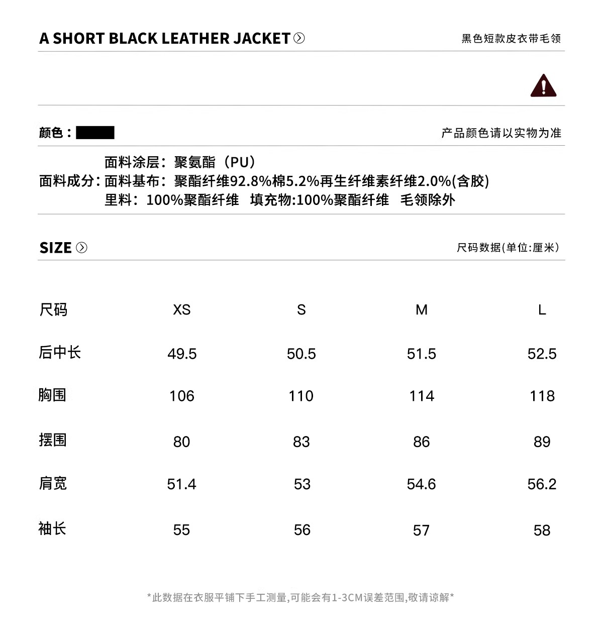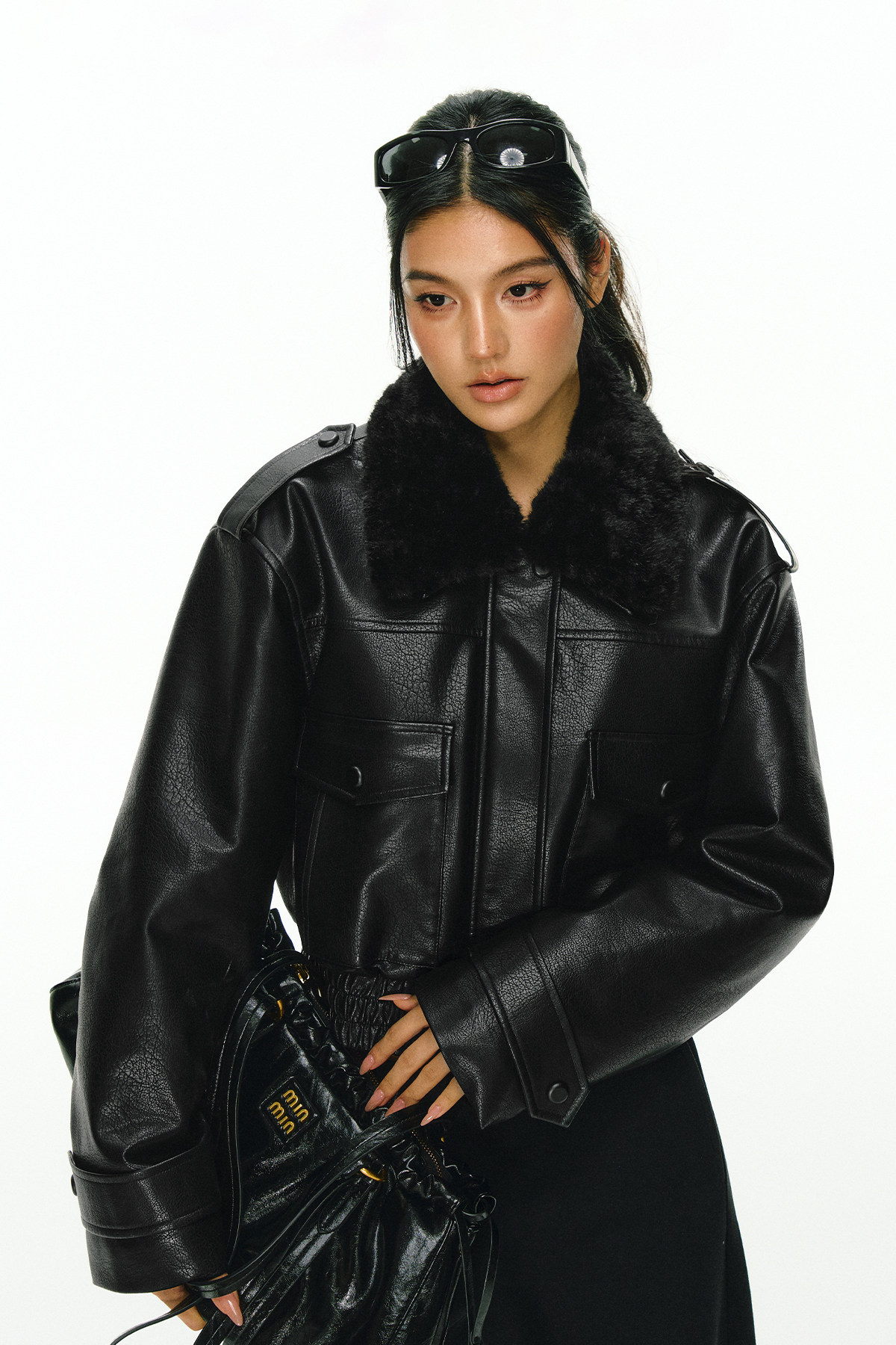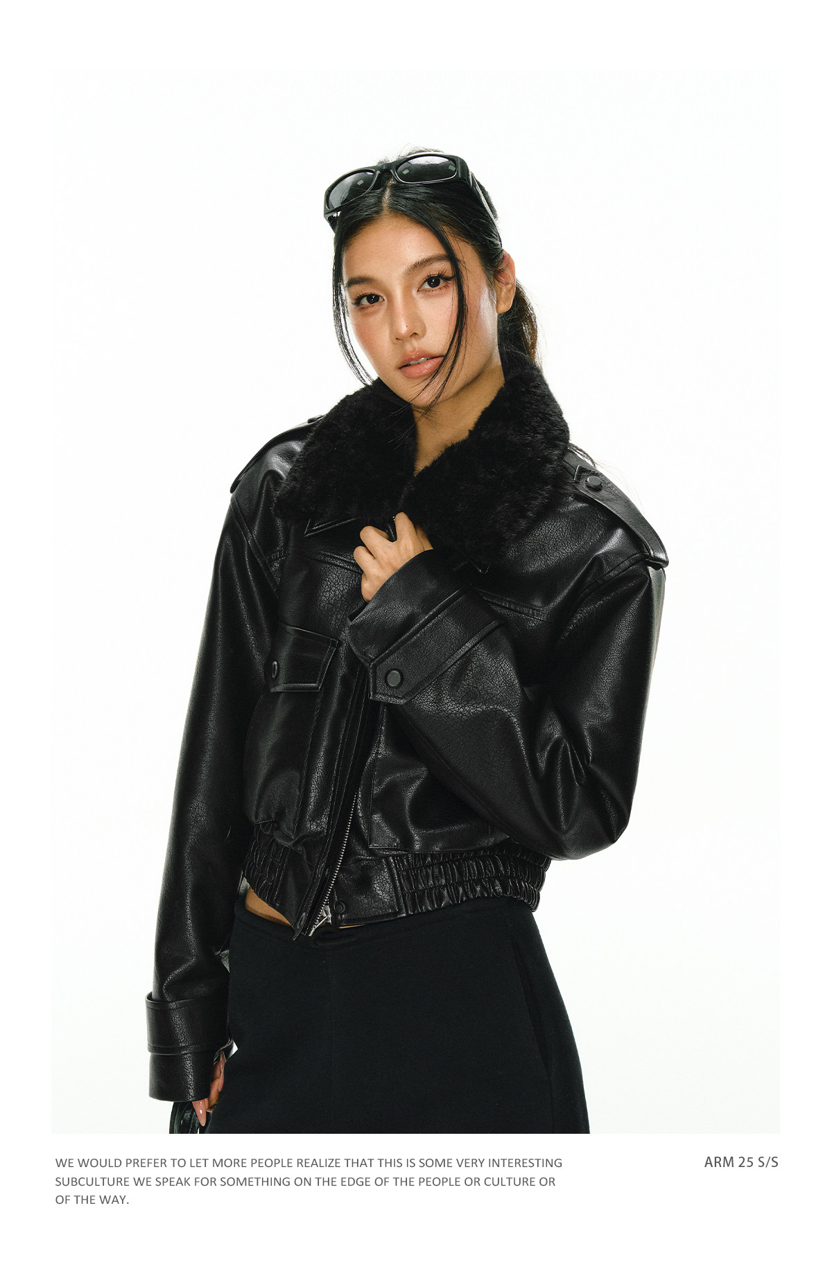 Ariseism 黑色可拆卸毛领短款皮衣夹棉棉服外套女冬季新款棉衣
