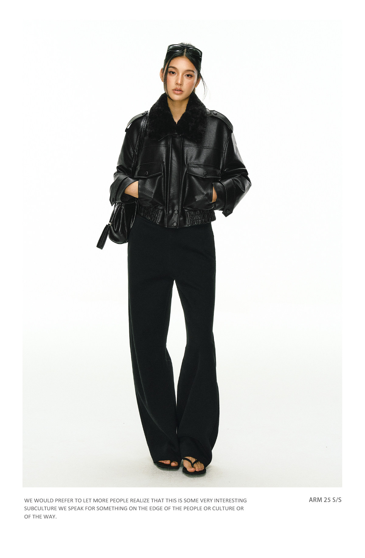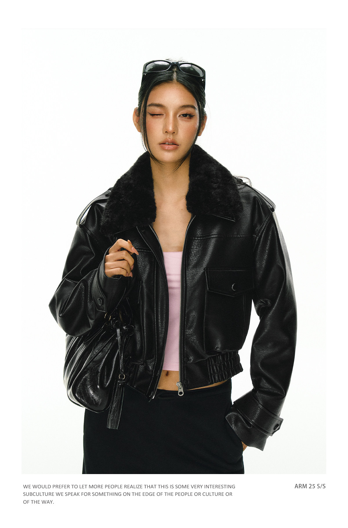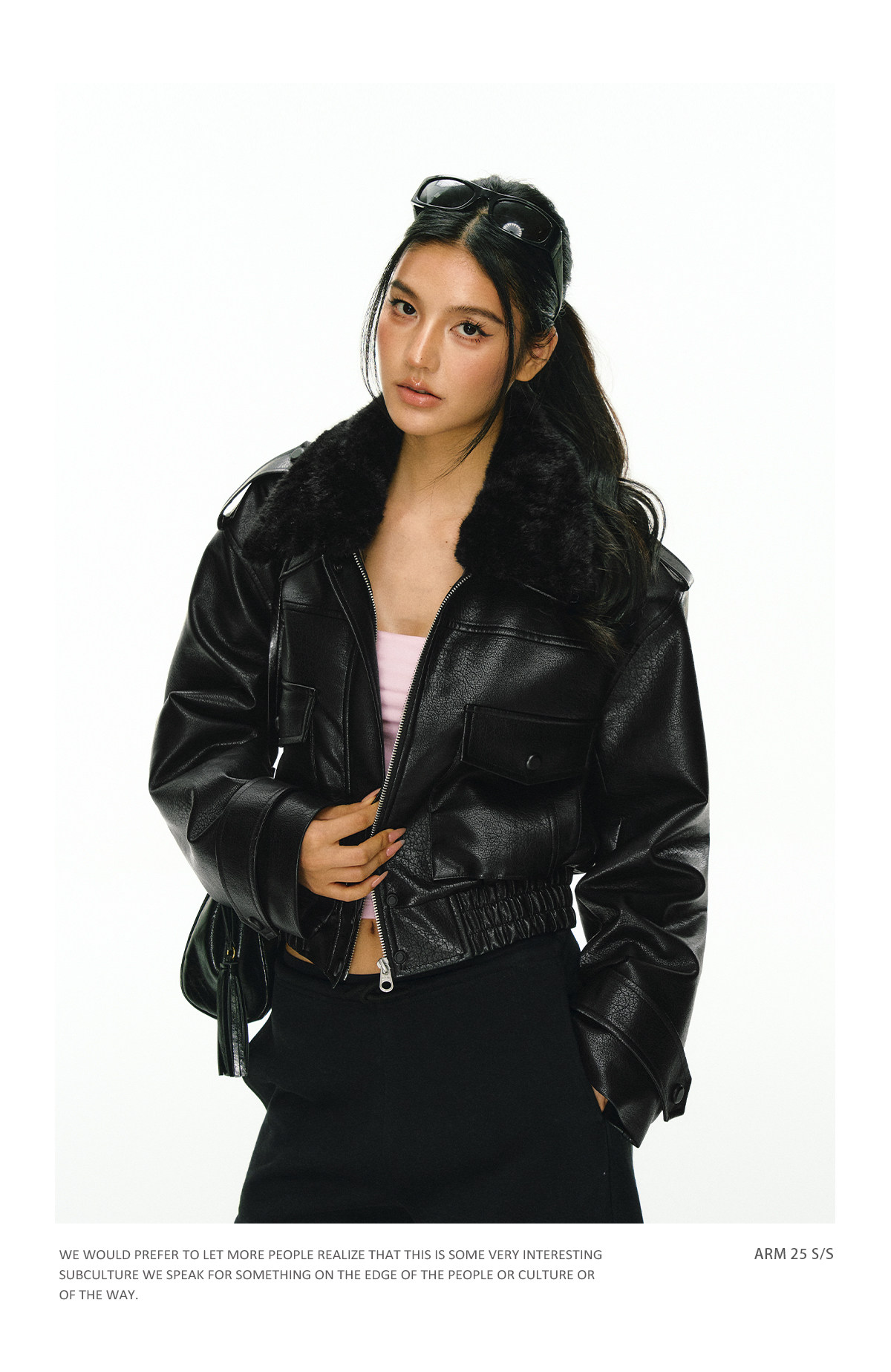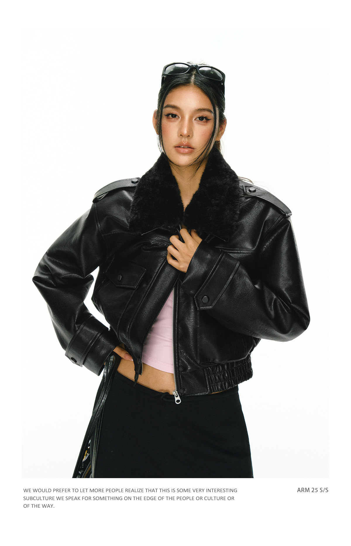 Ariseism 黑色可拆卸毛领短款皮衣夹棉棉服外套女冬季新款棉衣