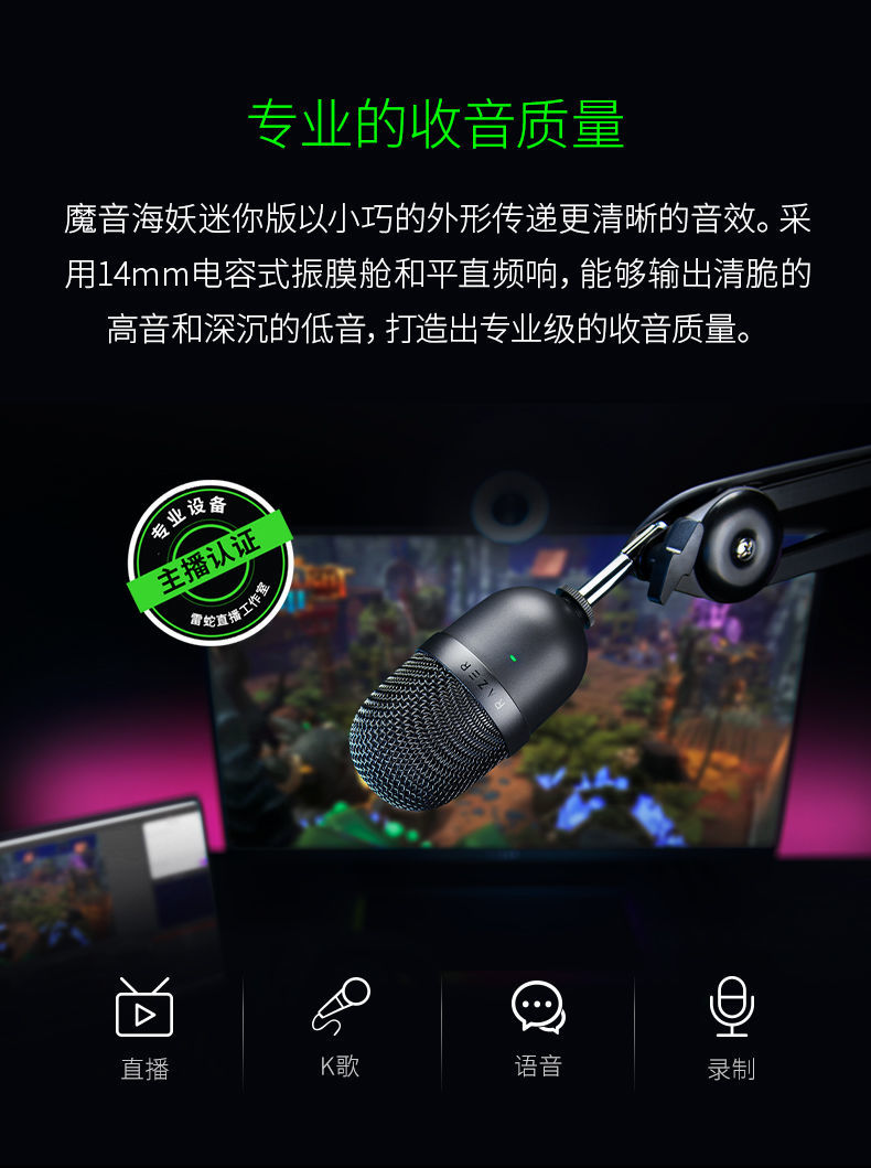 Razer雷蛇魔音海mini妖迷你版麦克风【雷蛇官方直营,2年有限质保】
