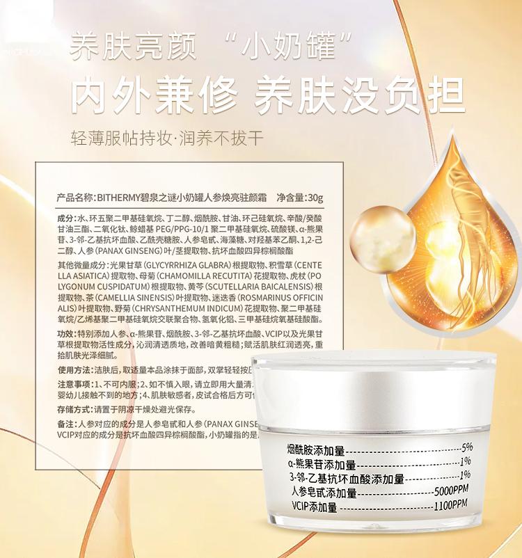 【休休专属】碧泉之谜 小奶罐提亮肤色透亮焕颜双抗人参养肤面霜