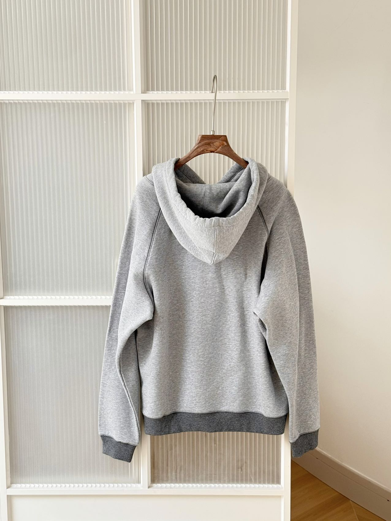 市面复刻款:多为普通棉+涤纶混纺(无有机棉/再生纤维),克重仅250g/㎡,毛圈稀疏,内里无磨毛,手感粗糙易起球。
