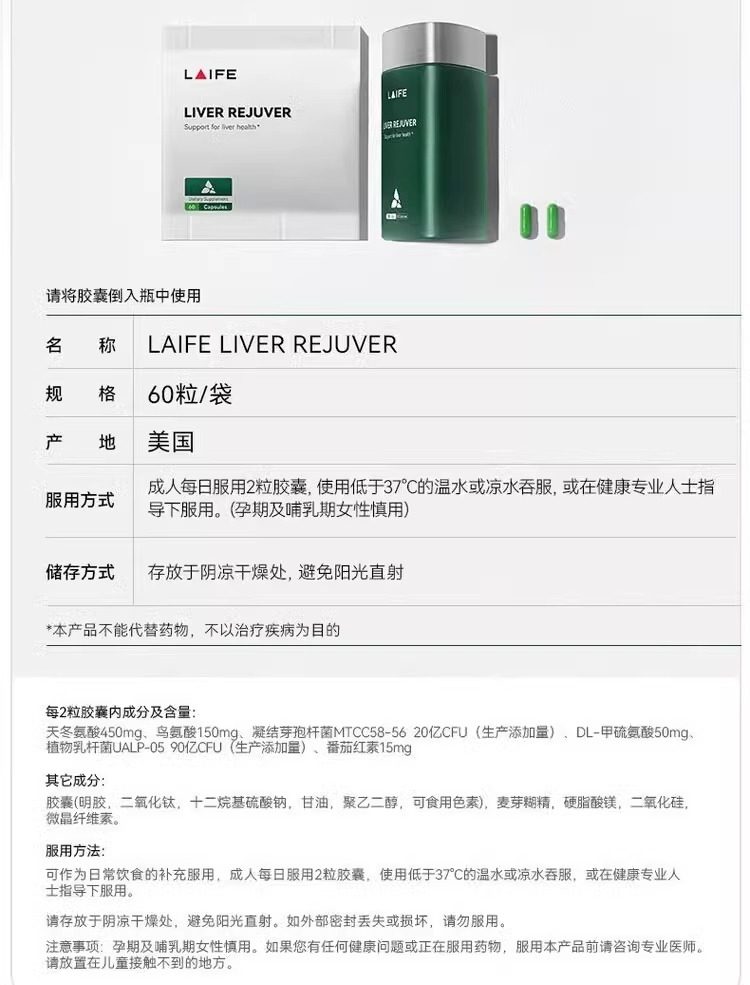 LAIFE乐梵乐轻肝肝净瓶养肝护肝胶囊护肝片养肝片美国原装进口