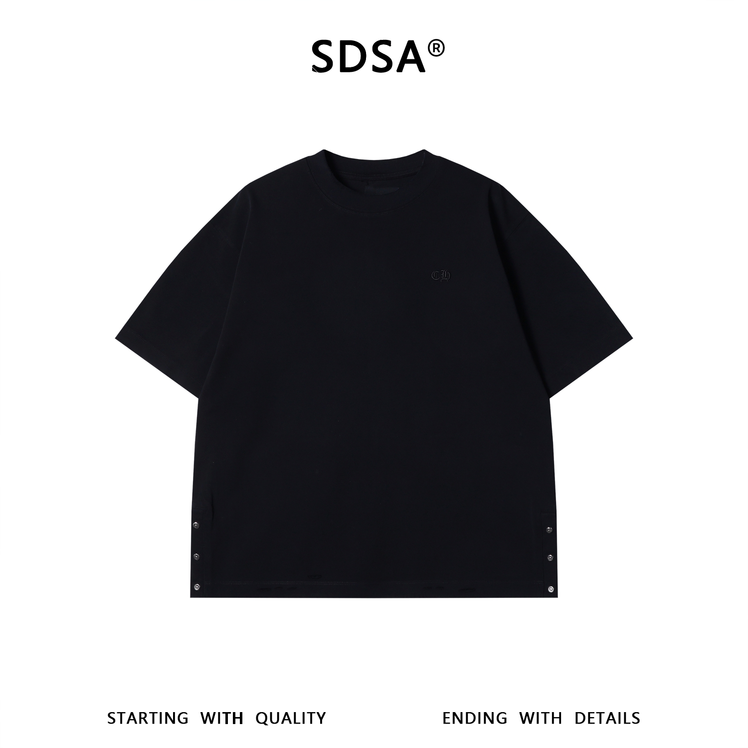 20370SDSA男装2026新款重磅纯棉短袖T恤侧开叉按扣设计感宽松圆领上衣