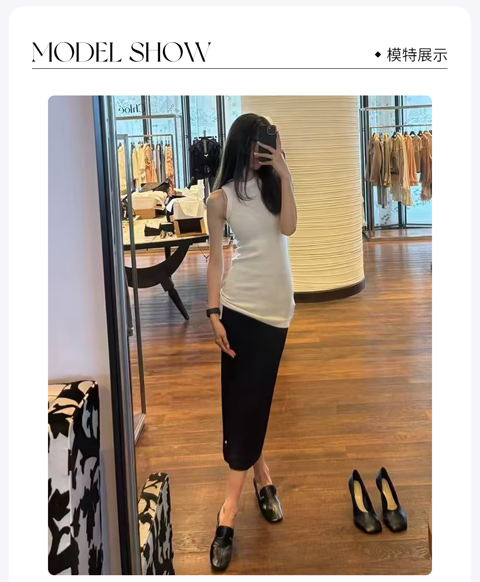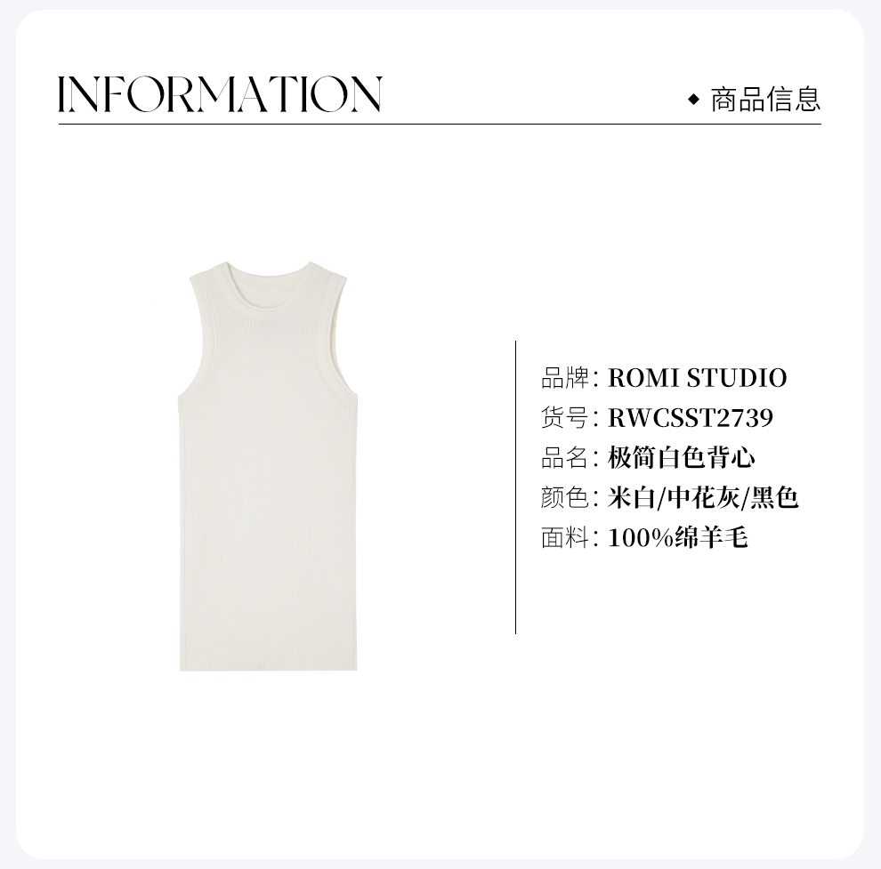 ROMI STUDIO 100%超细支美丽诺绵羊毛无袖圆领长款背心RWCSST2739
