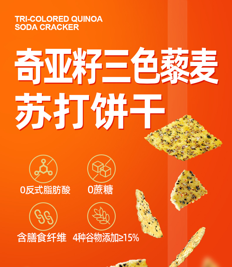 红谷林奇亚籽三色藜麦苏打饼干208g解馋小零食夜宵充饥零食早餐饼干