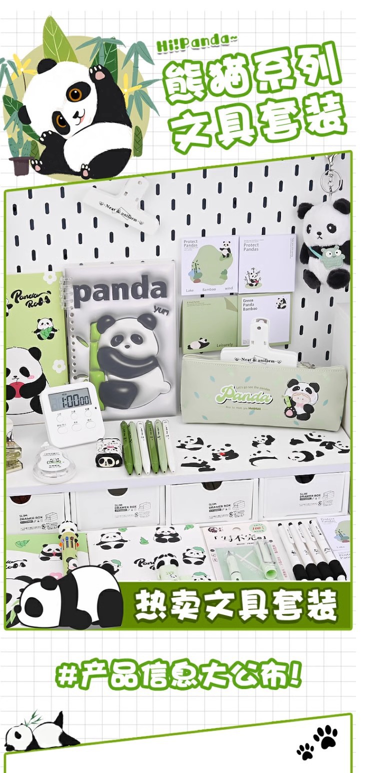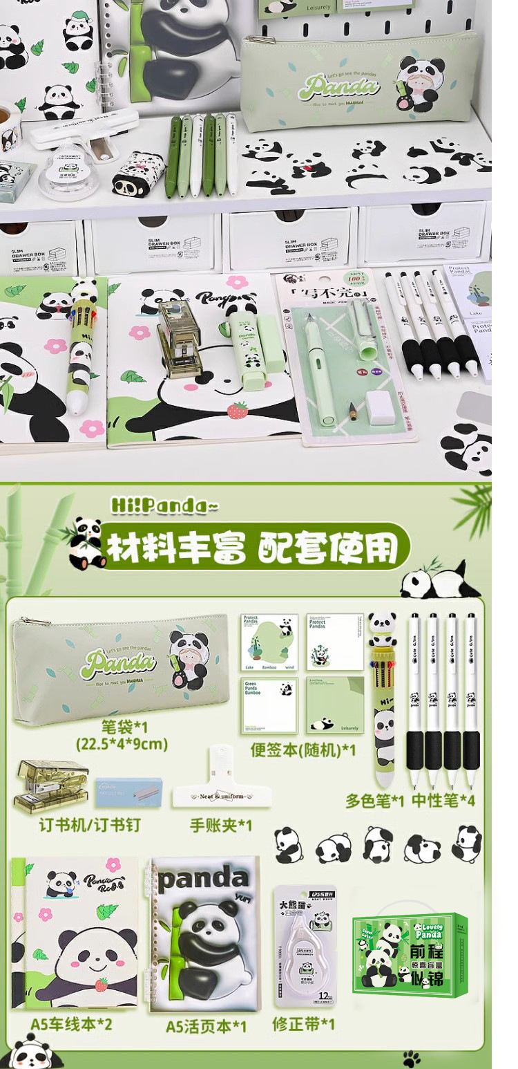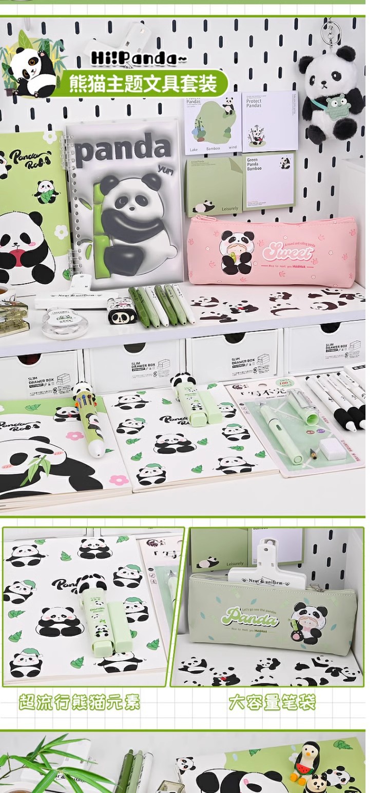 【熊猫系列!文具套装】可爱学习大礼包,中小学生生日礼物,开学季文具,小学生学习用品L
