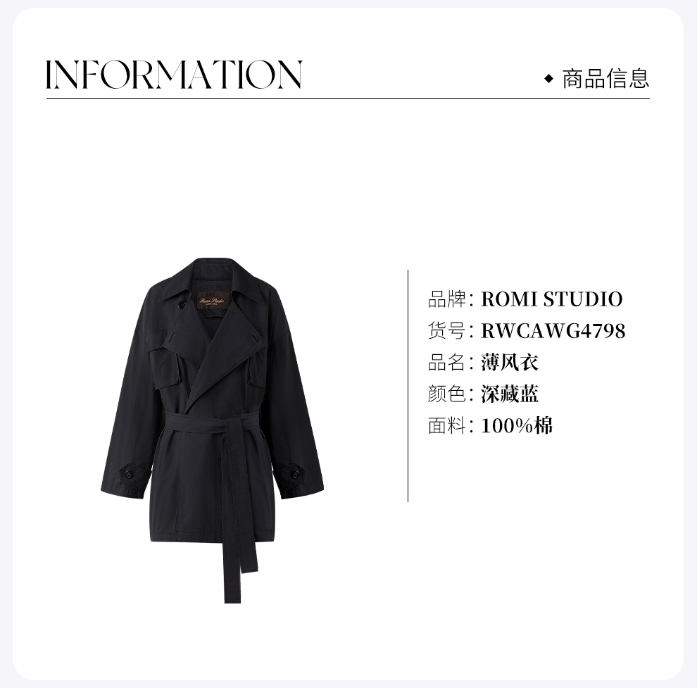 ROMI STUDIO“自我风度”独特微磨毛肌理翻领腰带风衣 RWCAWG4798