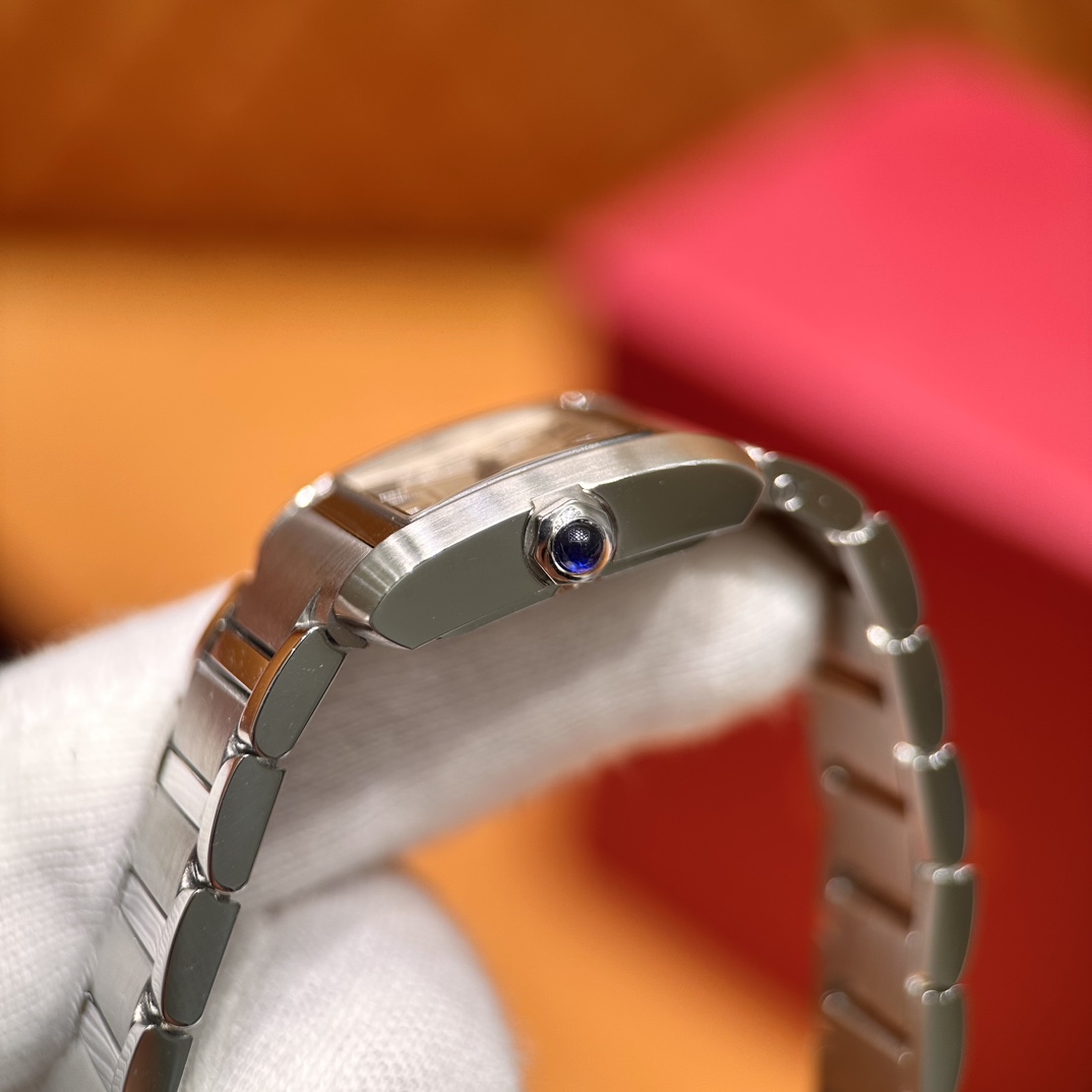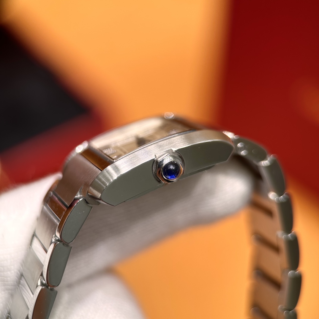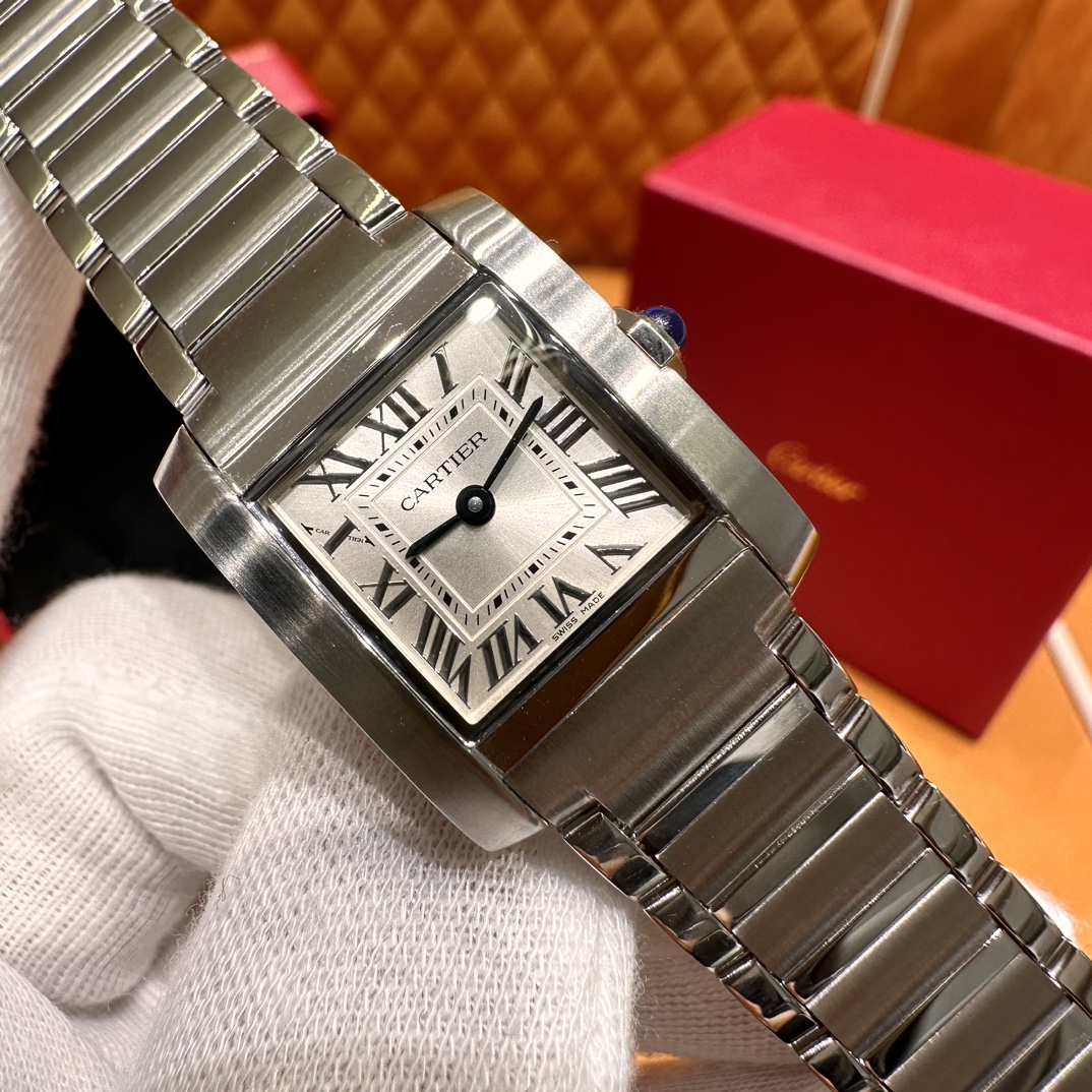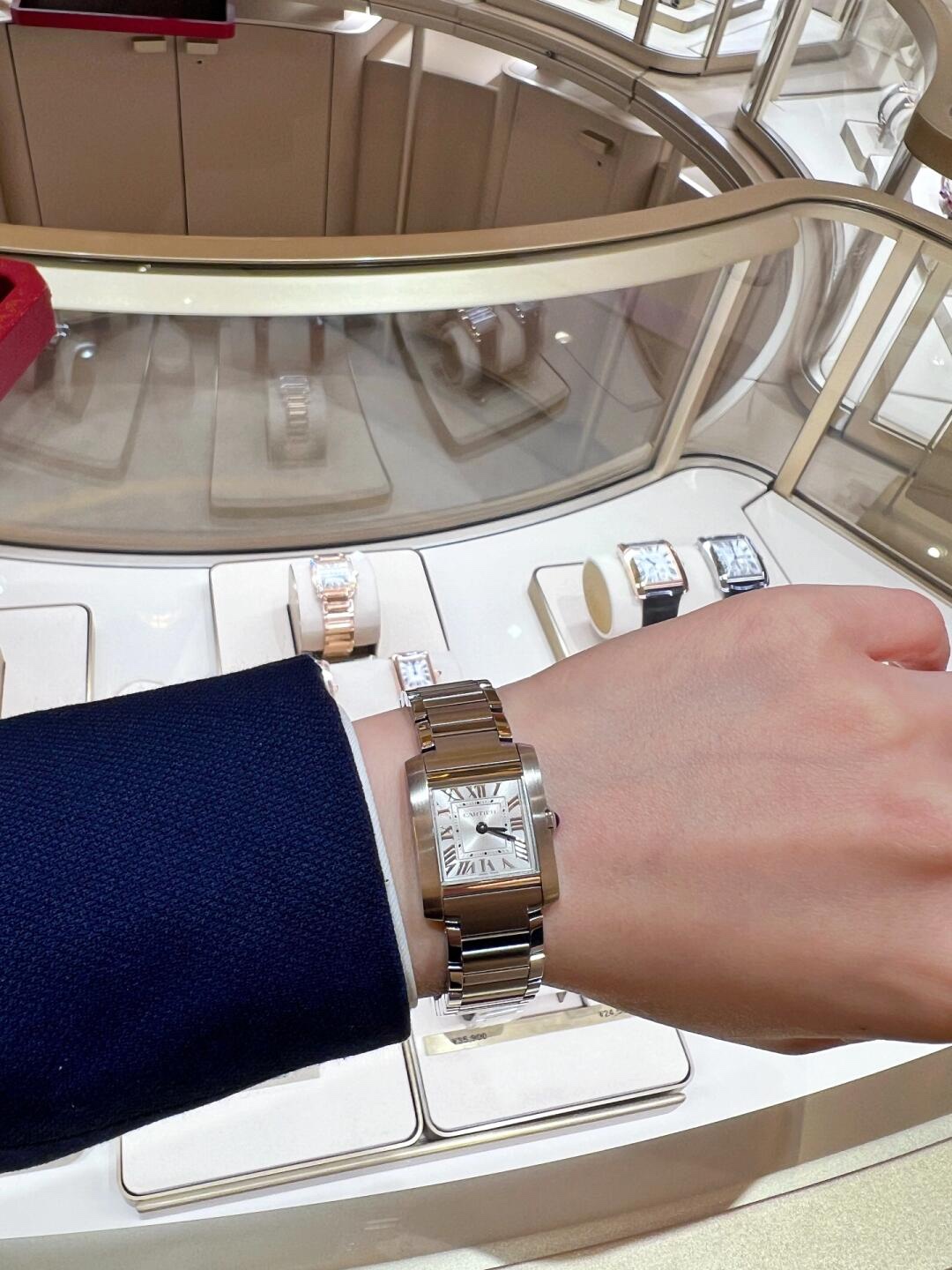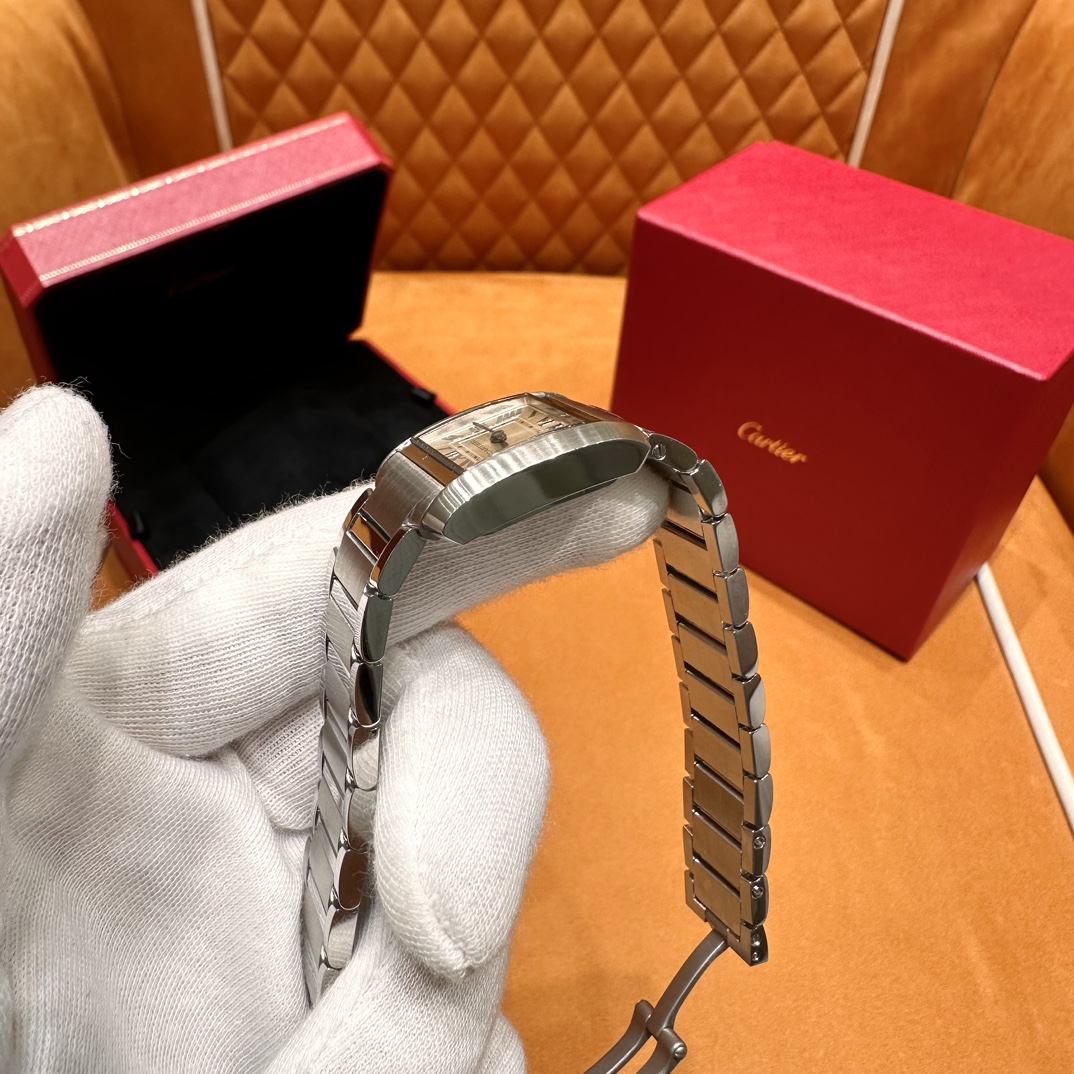 卡地亚的全新法国坦克!这款全新演绎的手表,不管是镶钻小号表款还是不带钻的表款,各有其独特之处!银色的罗马刻度和缎面抛光,让手表更显细腻质感。表壳和表链一体连接,线条锐利,充满时尚感。精细的拉丝工艺让表壳呈现出独特的纹理和质感,每一道细致的拉丝线条都使其更加耐磨,更加经久耐用。修饰更是亮眼夺目!