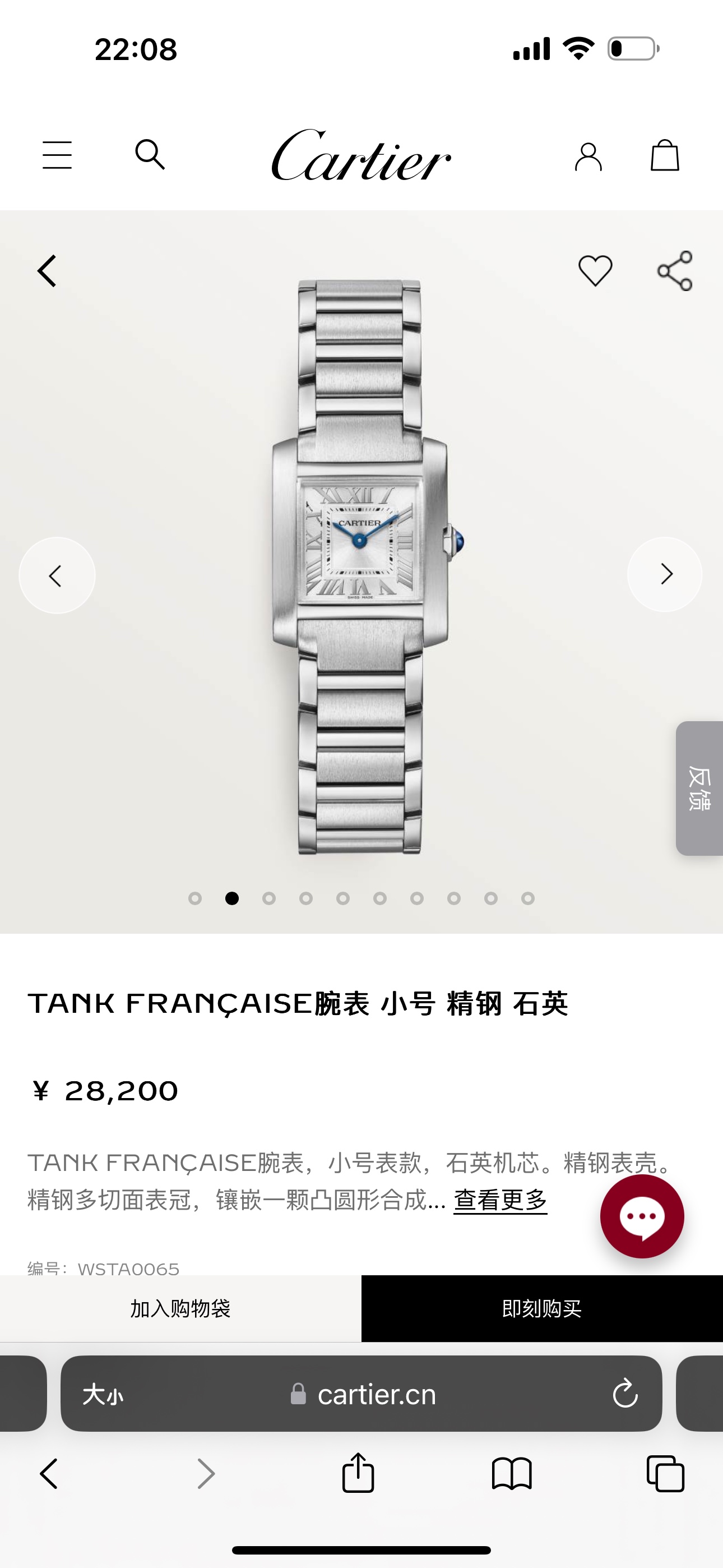 卡地亚 法国坦克系列WSTA0065 这款全新演绎的手表,不管是镶钻小号表款还是不带钻的表款,各有其独特之处(ZT*SH)