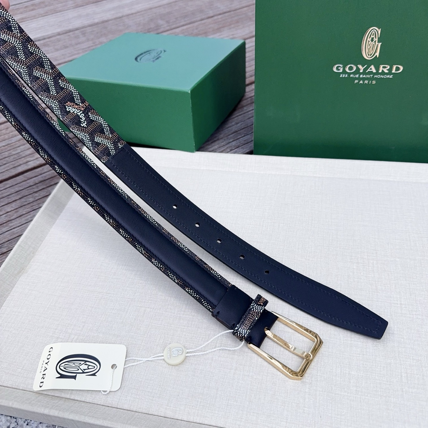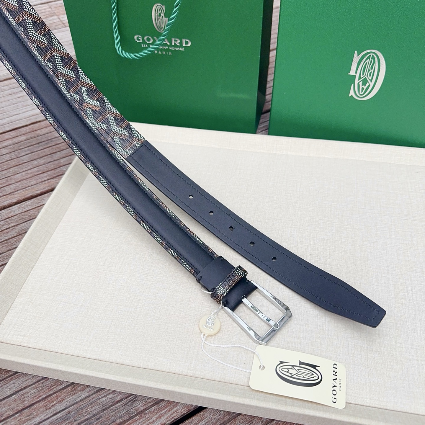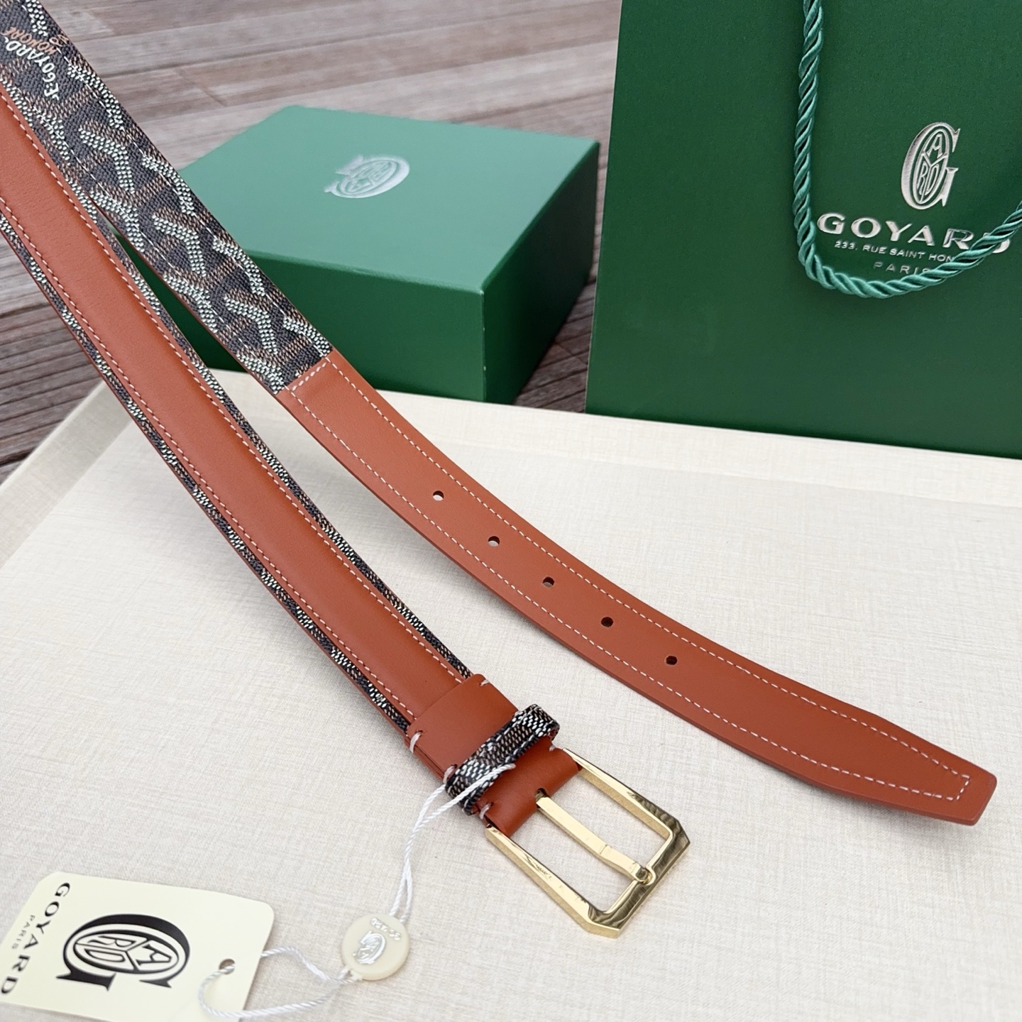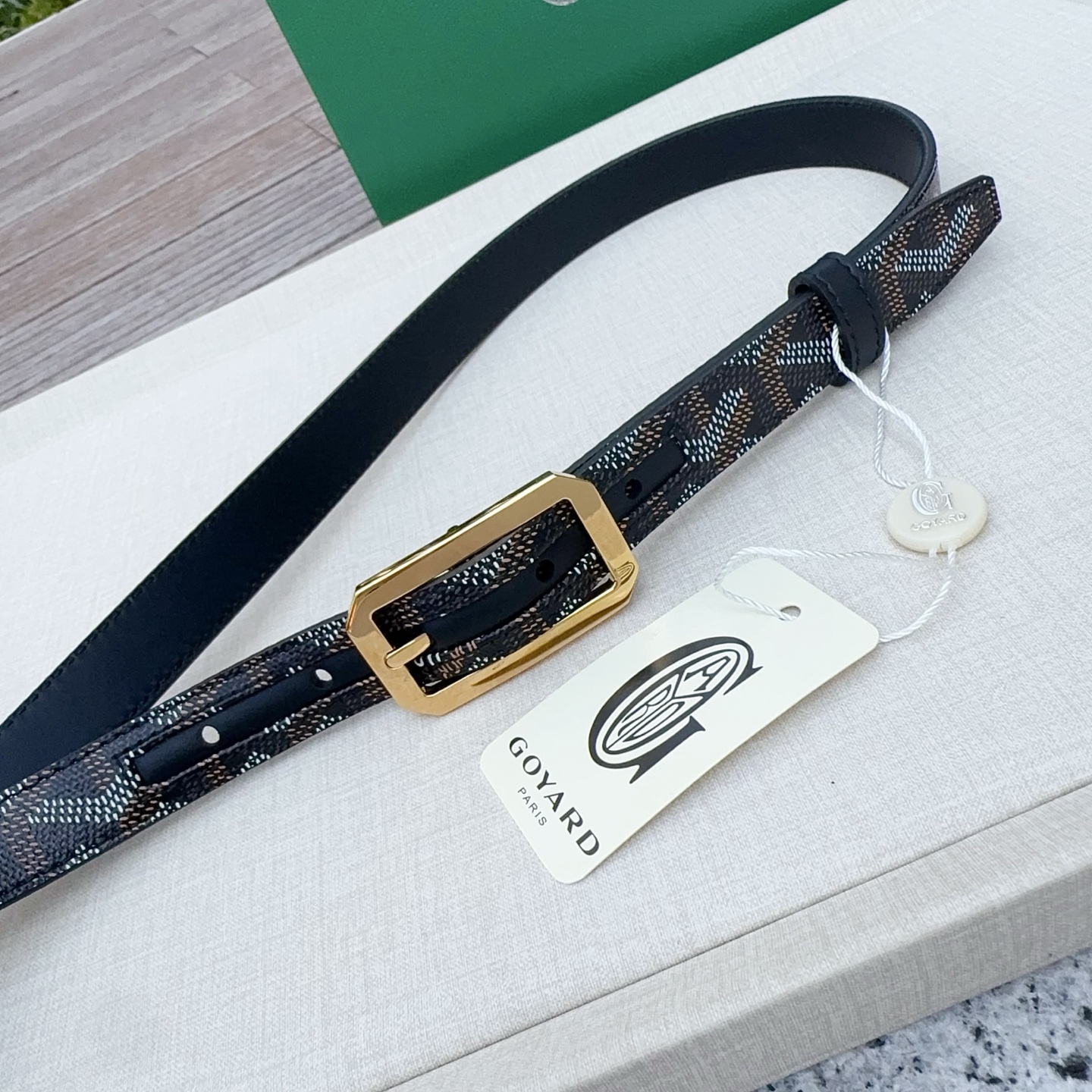 Goyard戈雅,宽度3.0cm,长度:75.80.85.90.95.100.欧,带身采用进口头层牛皮、Goyard专柜材料精心制作而成,精品纯铜扣,高端大气,低调奢华,搭配全套包装