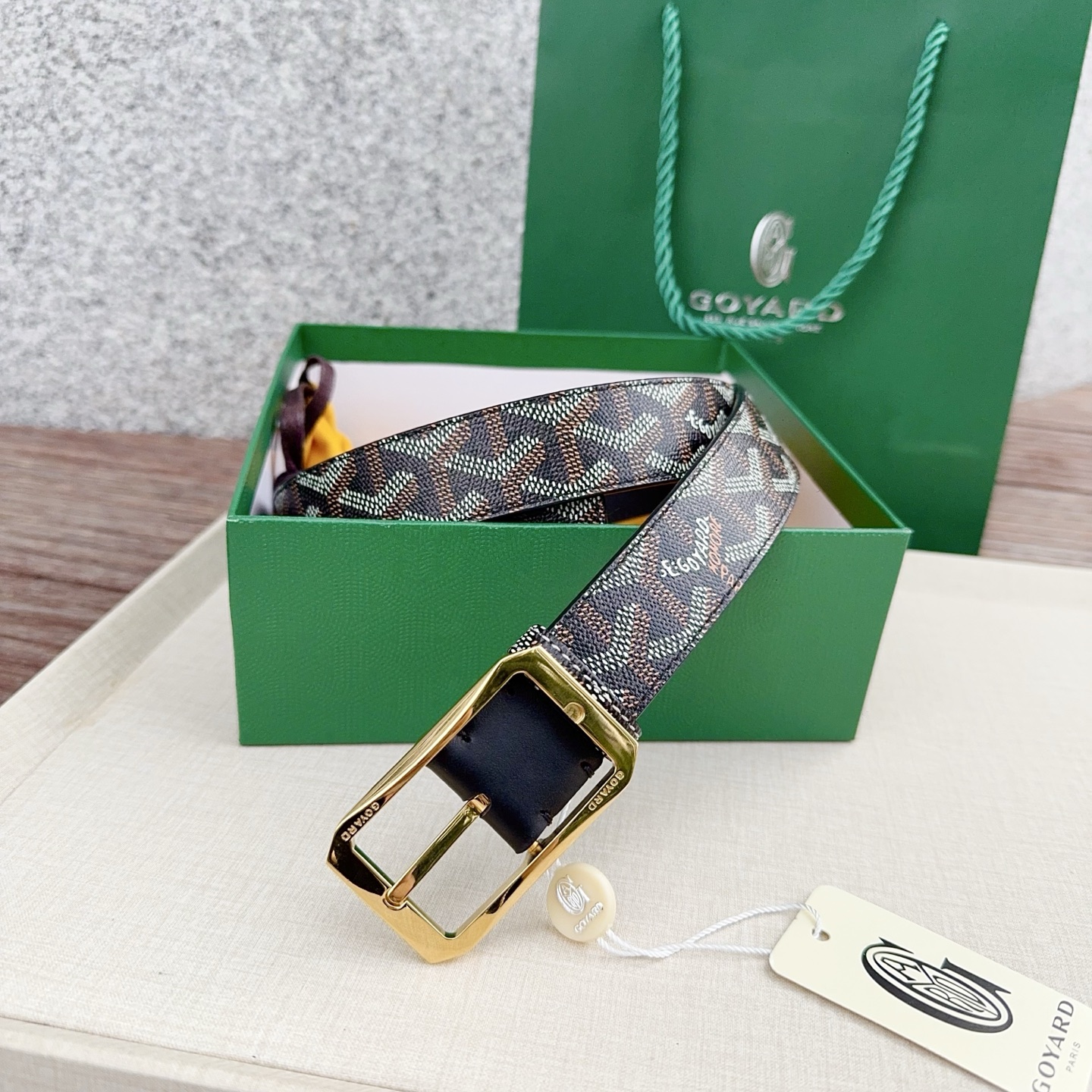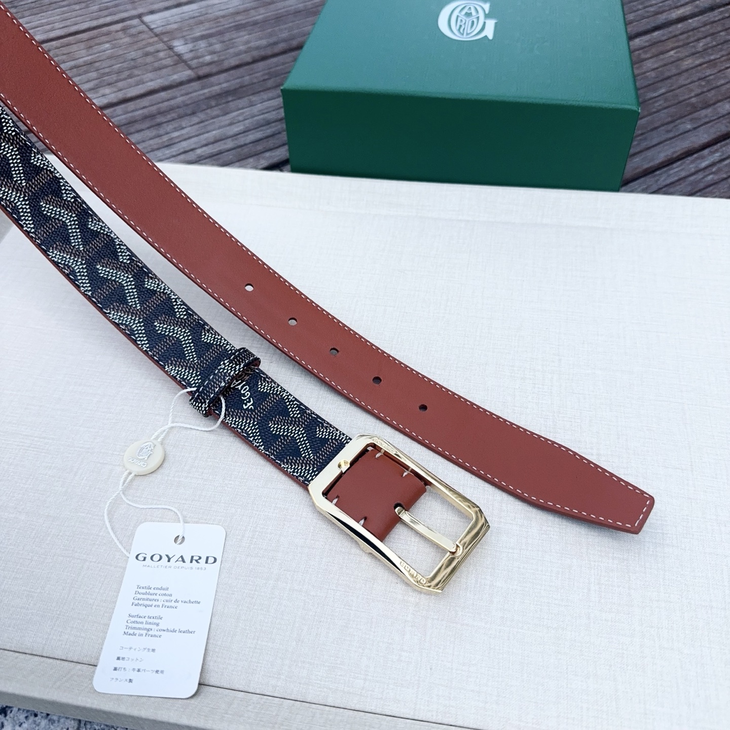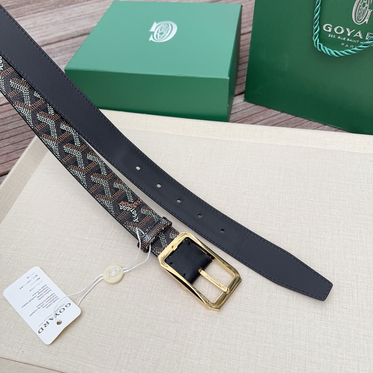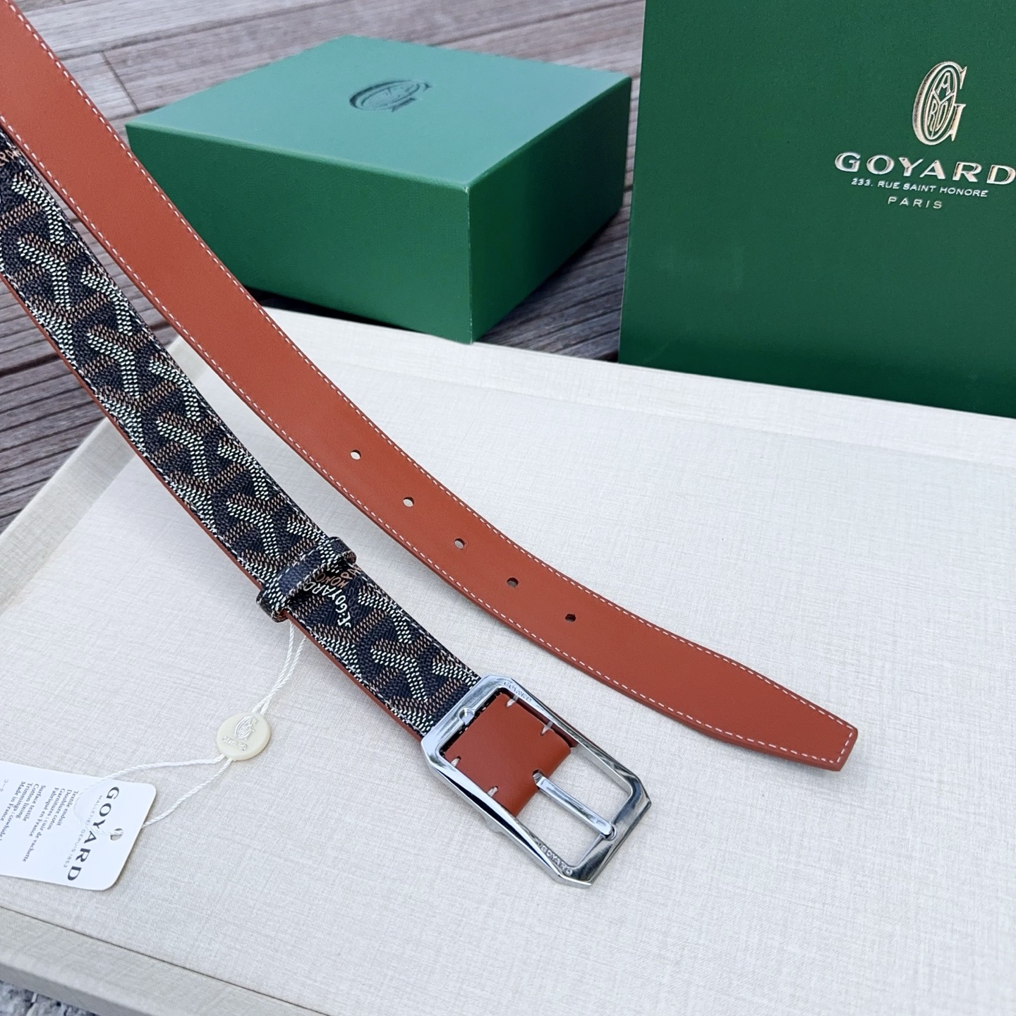 Goyard戈雅,宽度3.0cm,长度:75.80.85.90.95.100.欧,带身采用进口头层牛皮、Goyard专柜材料精心制作而成,精品纯铜扣,高端大气,低调奢华,搭配全套包装
