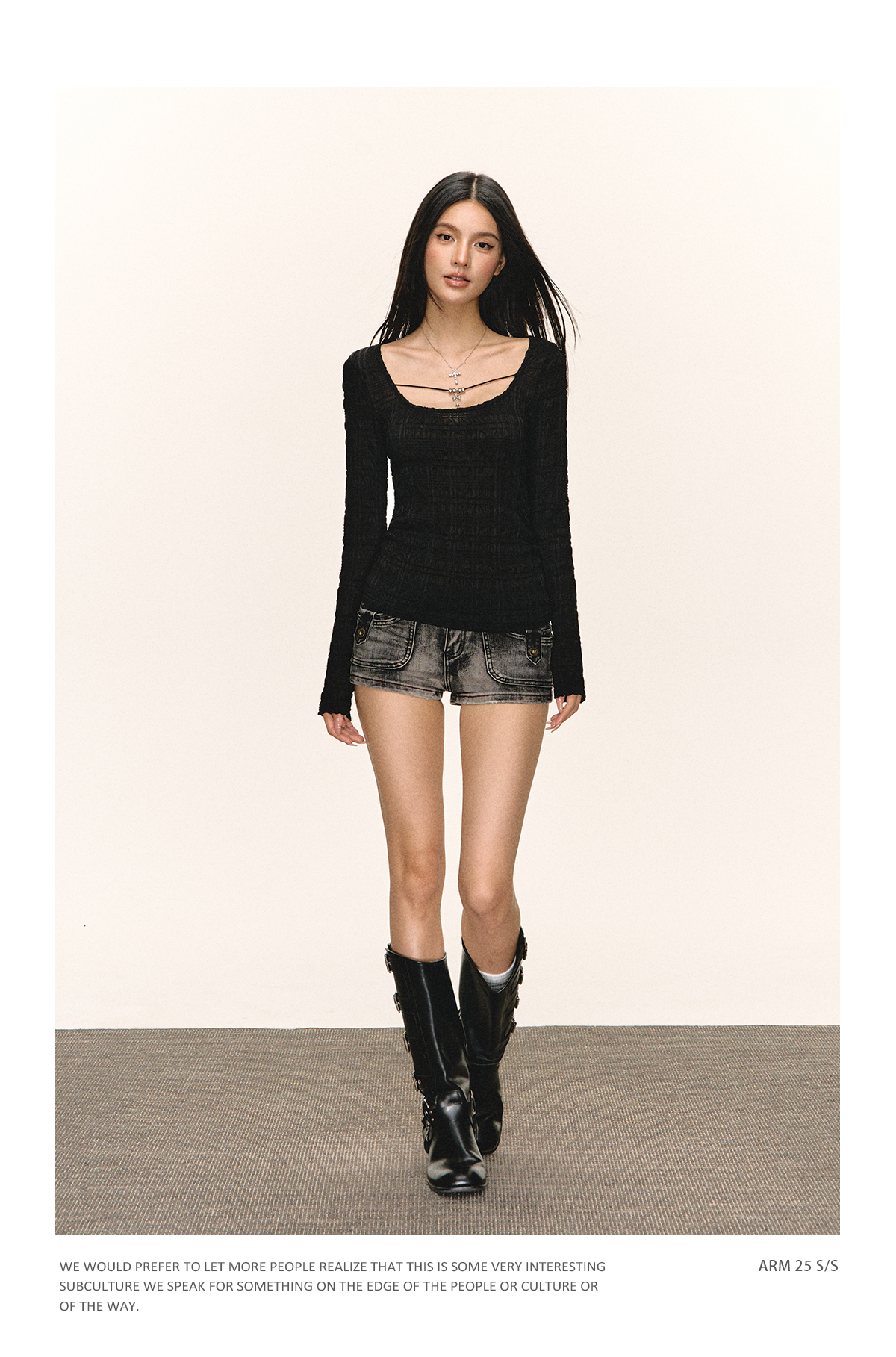 Ariseism美式复古高级感一字肩长袖针织衫女春季新款内搭打底上衣