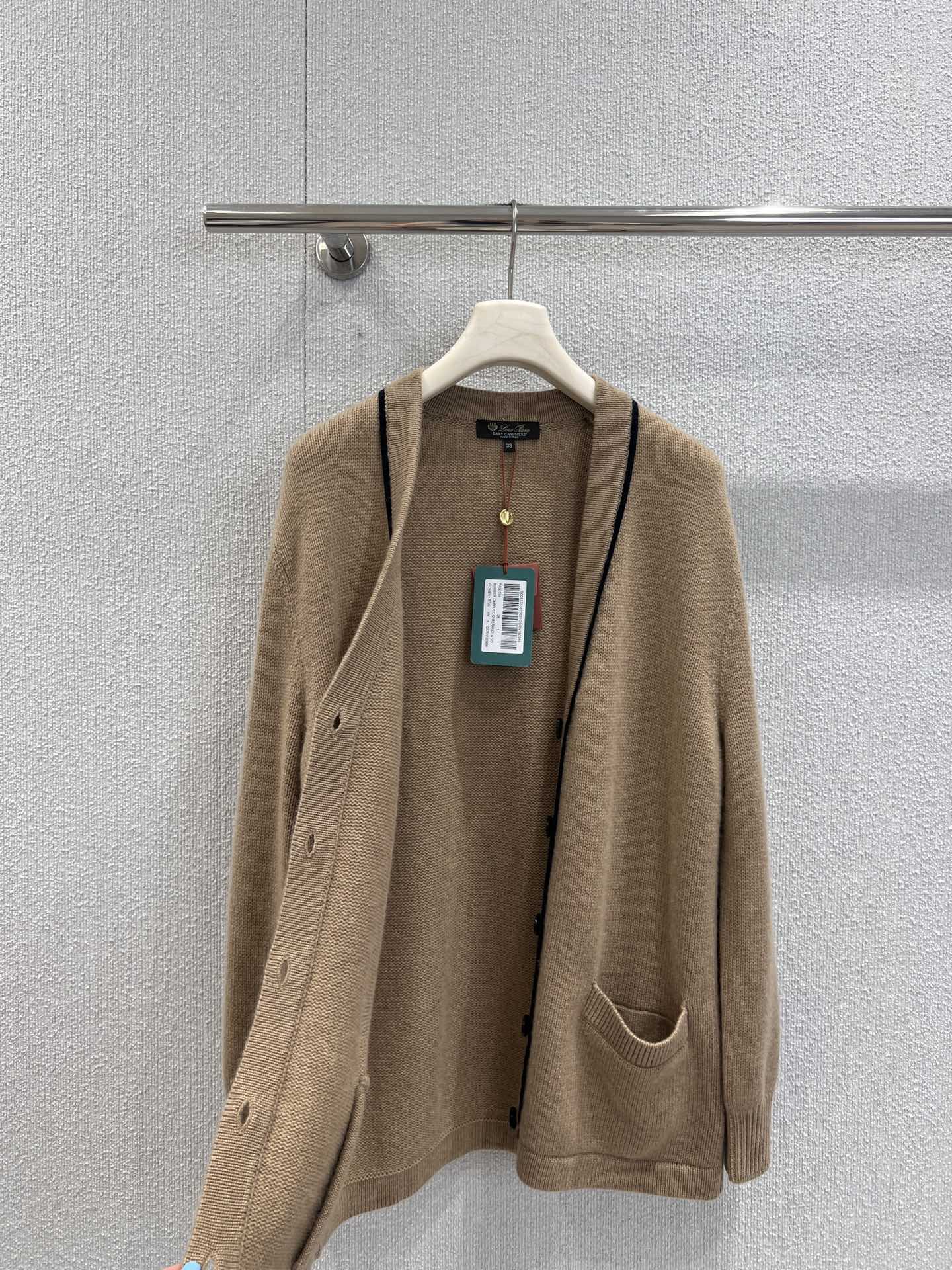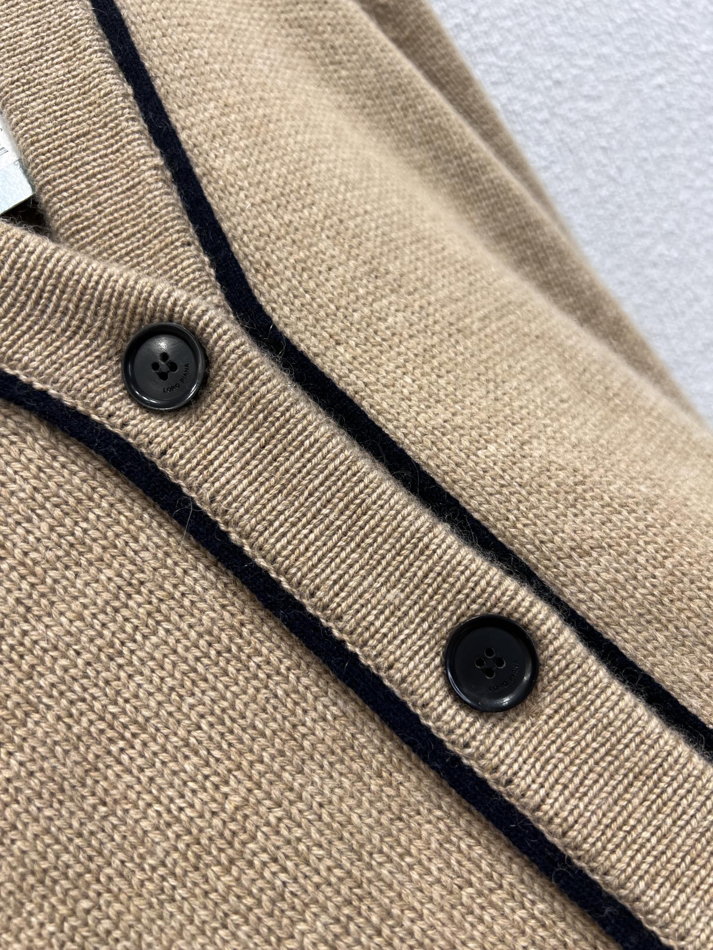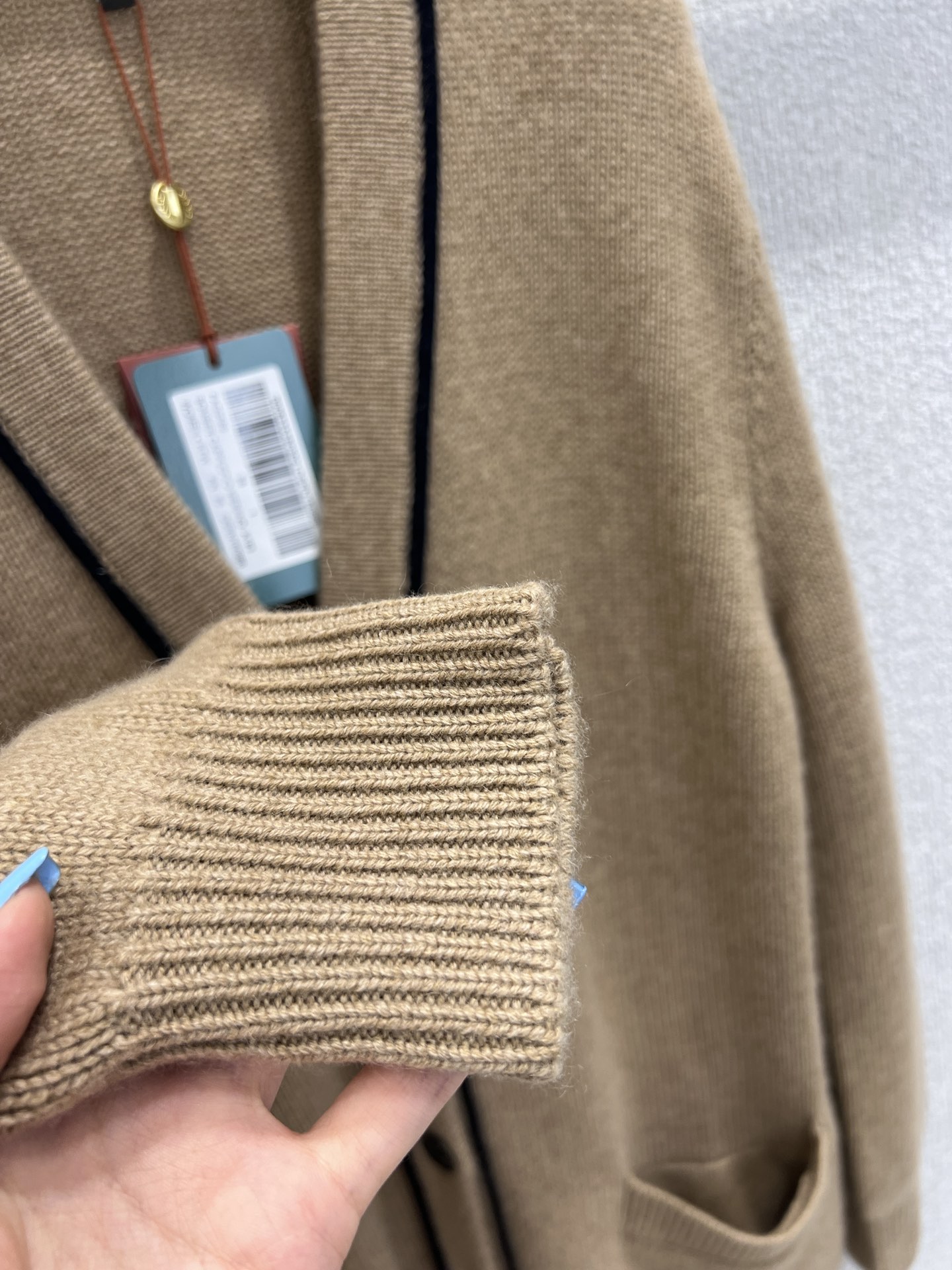 💚ZP开发💚Loro Piana 25FW 深圳秋冬首发订货会 撞色饰边V领单排扣羊绒罩衫 100%Baby Cashmere除了凸显最好的材质“山羊幼崽的底层绒毛” 还有更多的修饰 驼色拼黑边 上身百搭不挑人 手感软糯细腻 。
