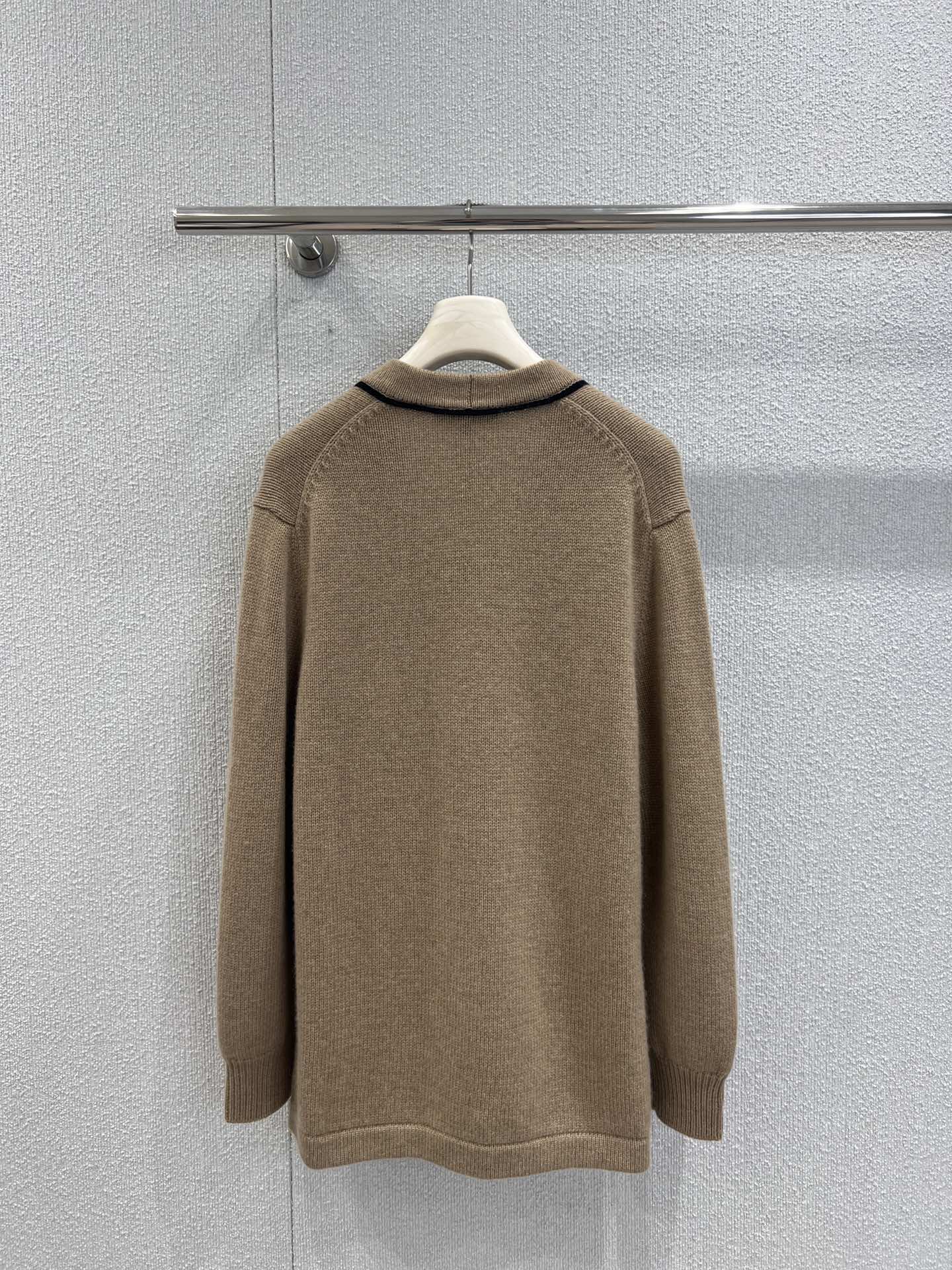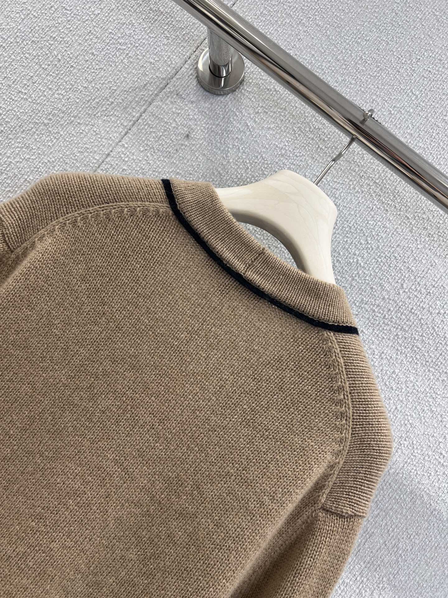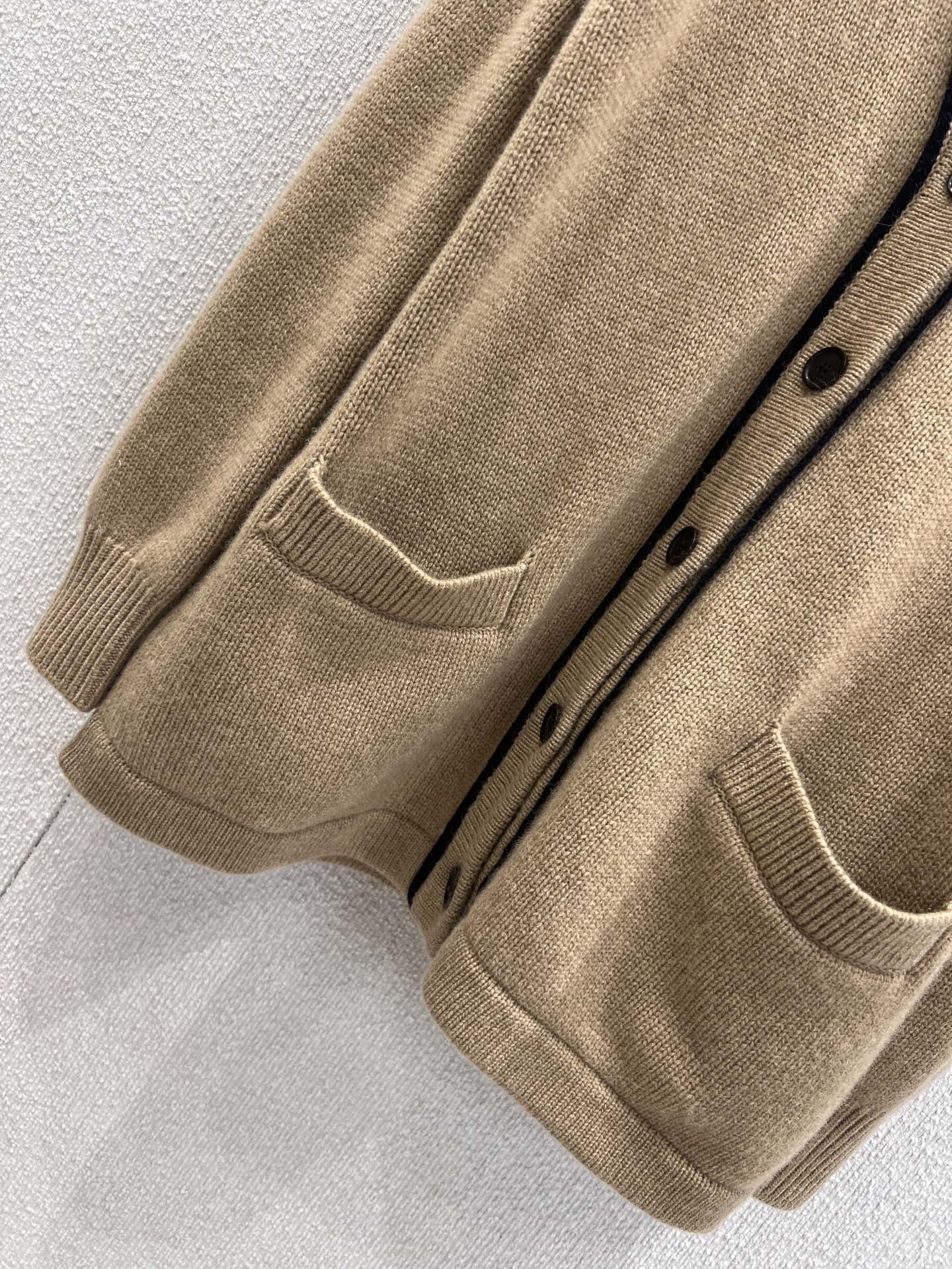💚ZP开发💚Loro Piana 25FW 深圳秋冬首发订货会 撞色饰边V领单排扣羊绒罩衫 100%Baby Cashmere除了凸显最好的材质“山羊幼崽的底层绒毛” 还有更多的修饰 驼色拼黑边 上身百搭不挑人 手感软糯细腻 。