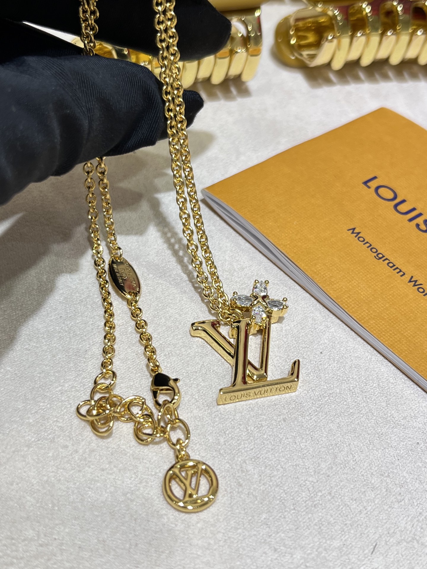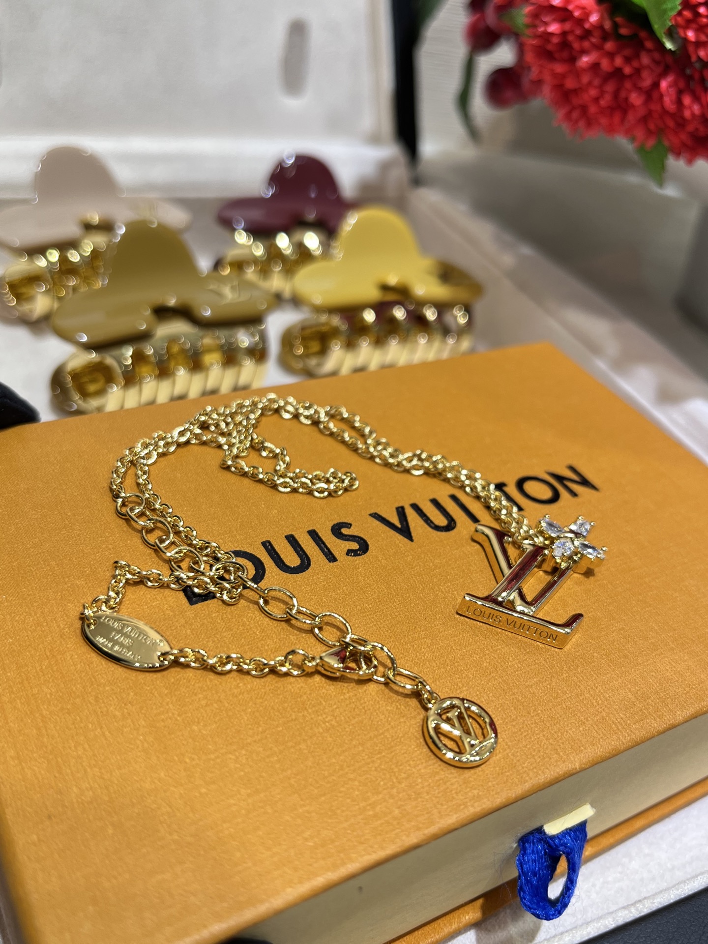 驴家 25年新款手工镶嵌水钻小花朵字母项链