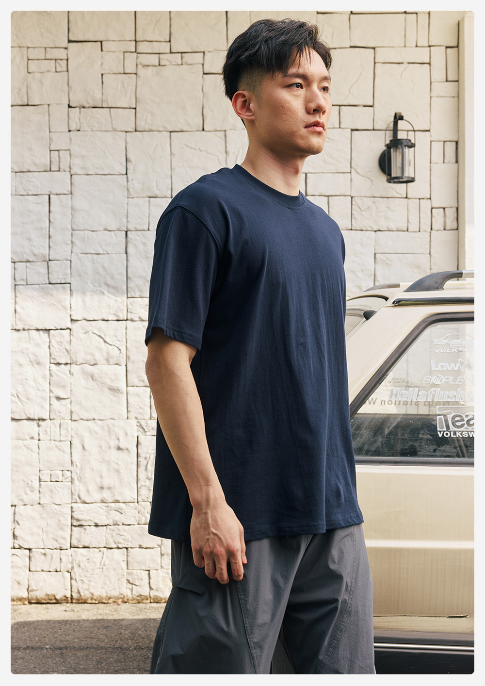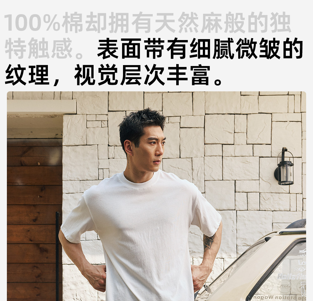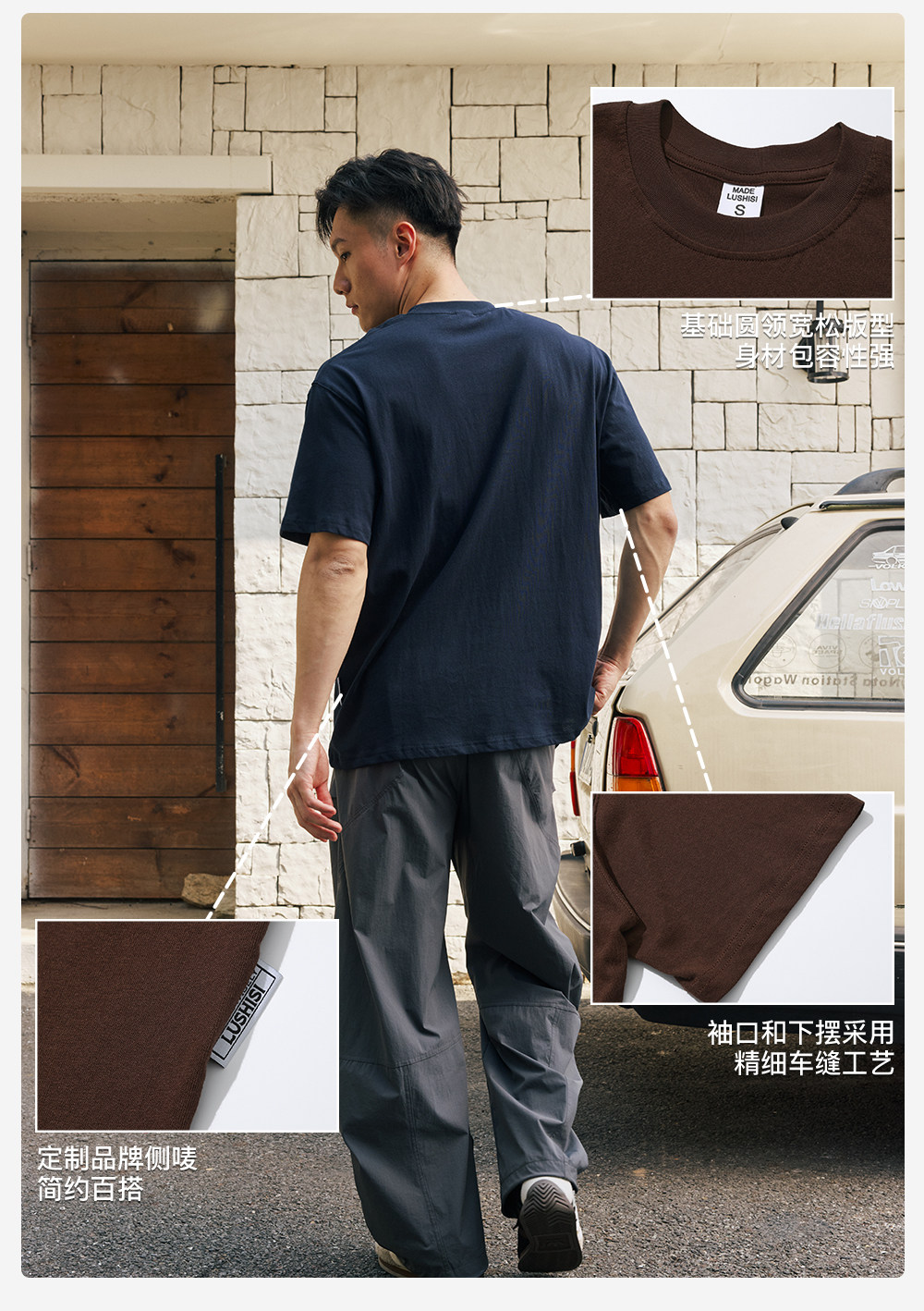 录士LUSHISI无暇主题短袖轻量化麻感纯棉面料纹理纯色短袖情侣t恤