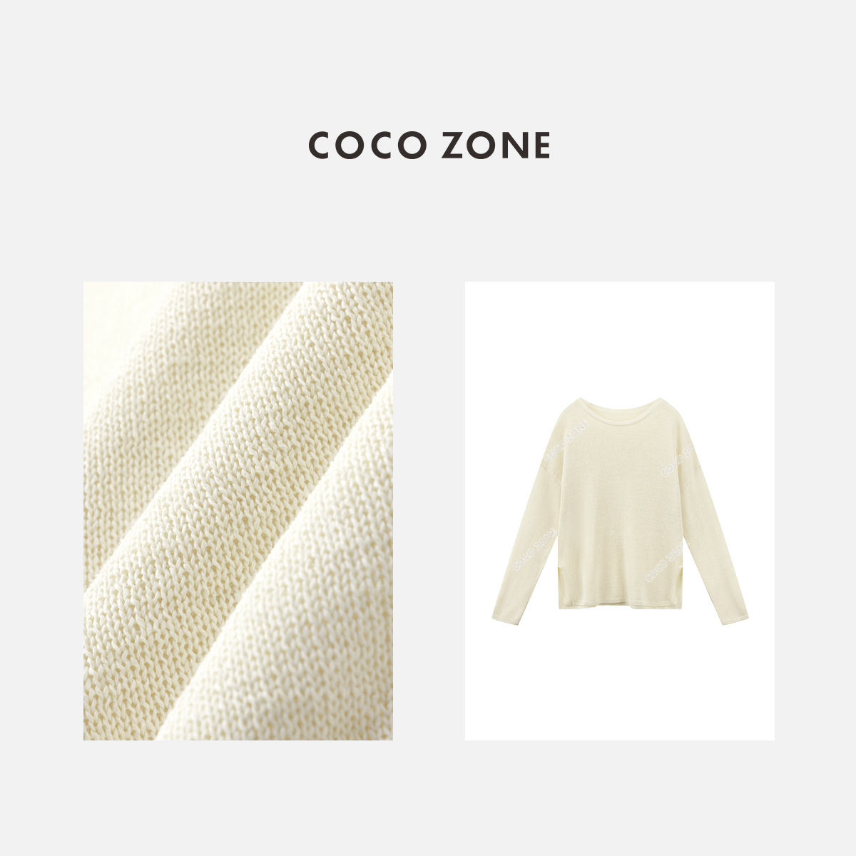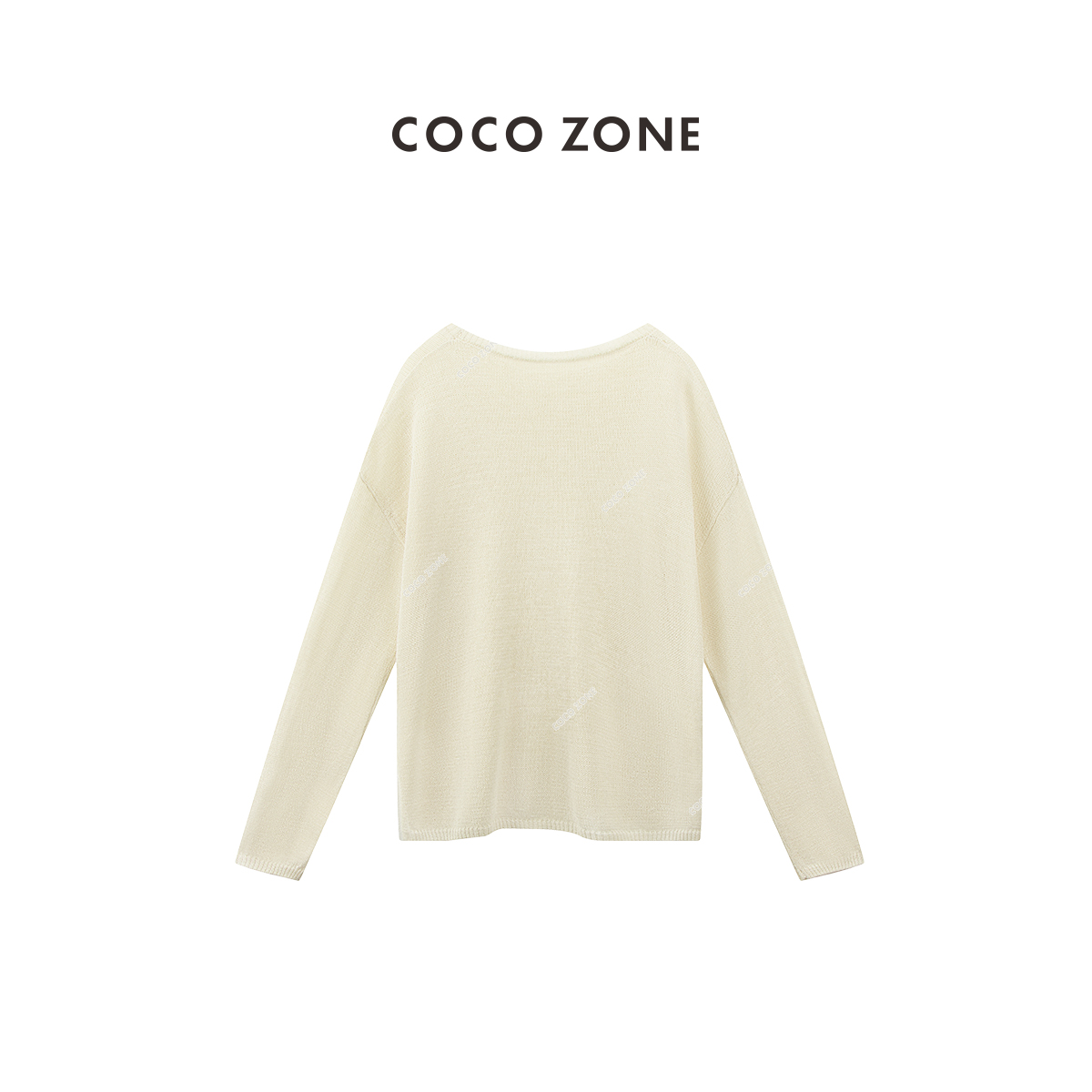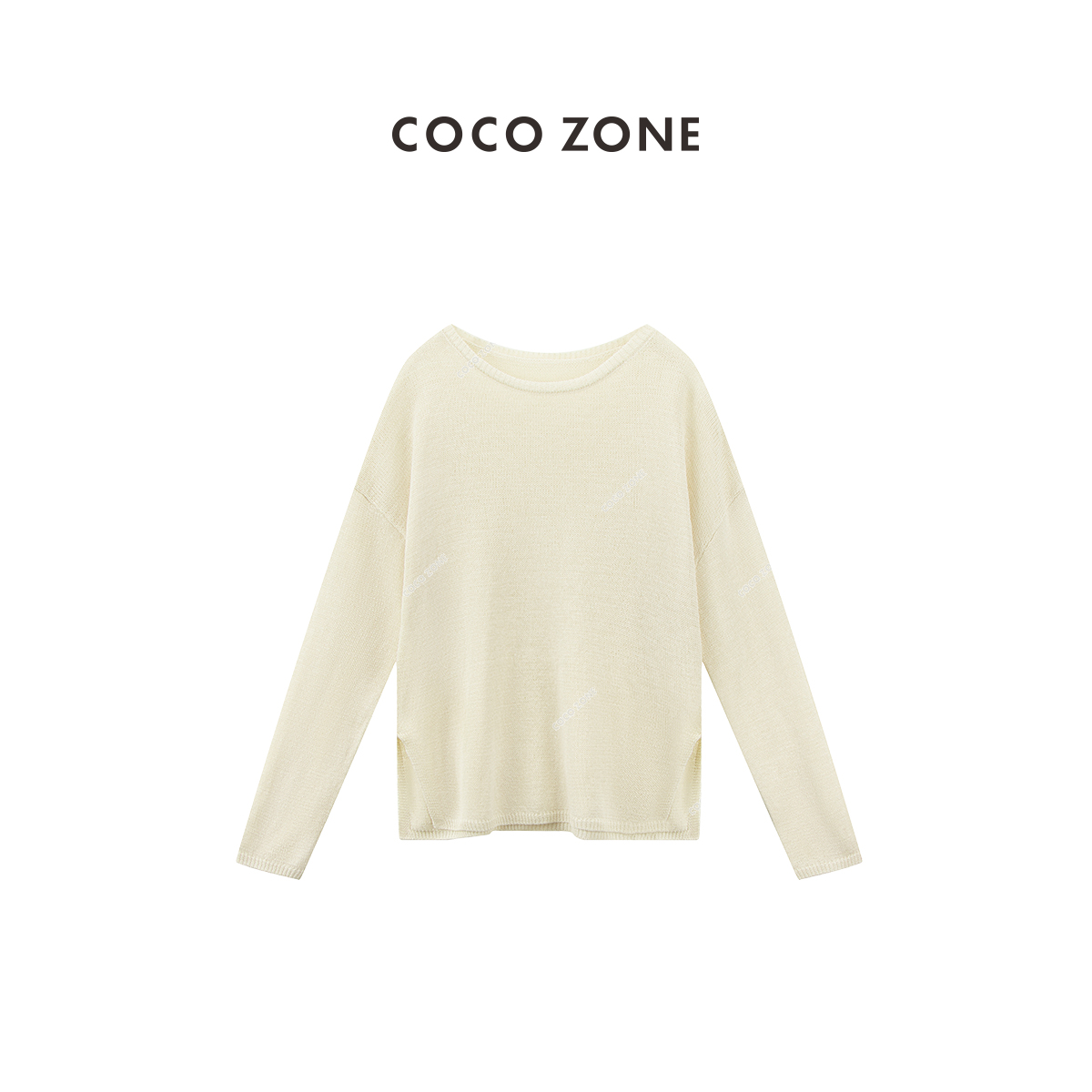 COCO ZONE夏季简约纯色宽松圆领长袖针织衫气质薄款上衣CC2B0688