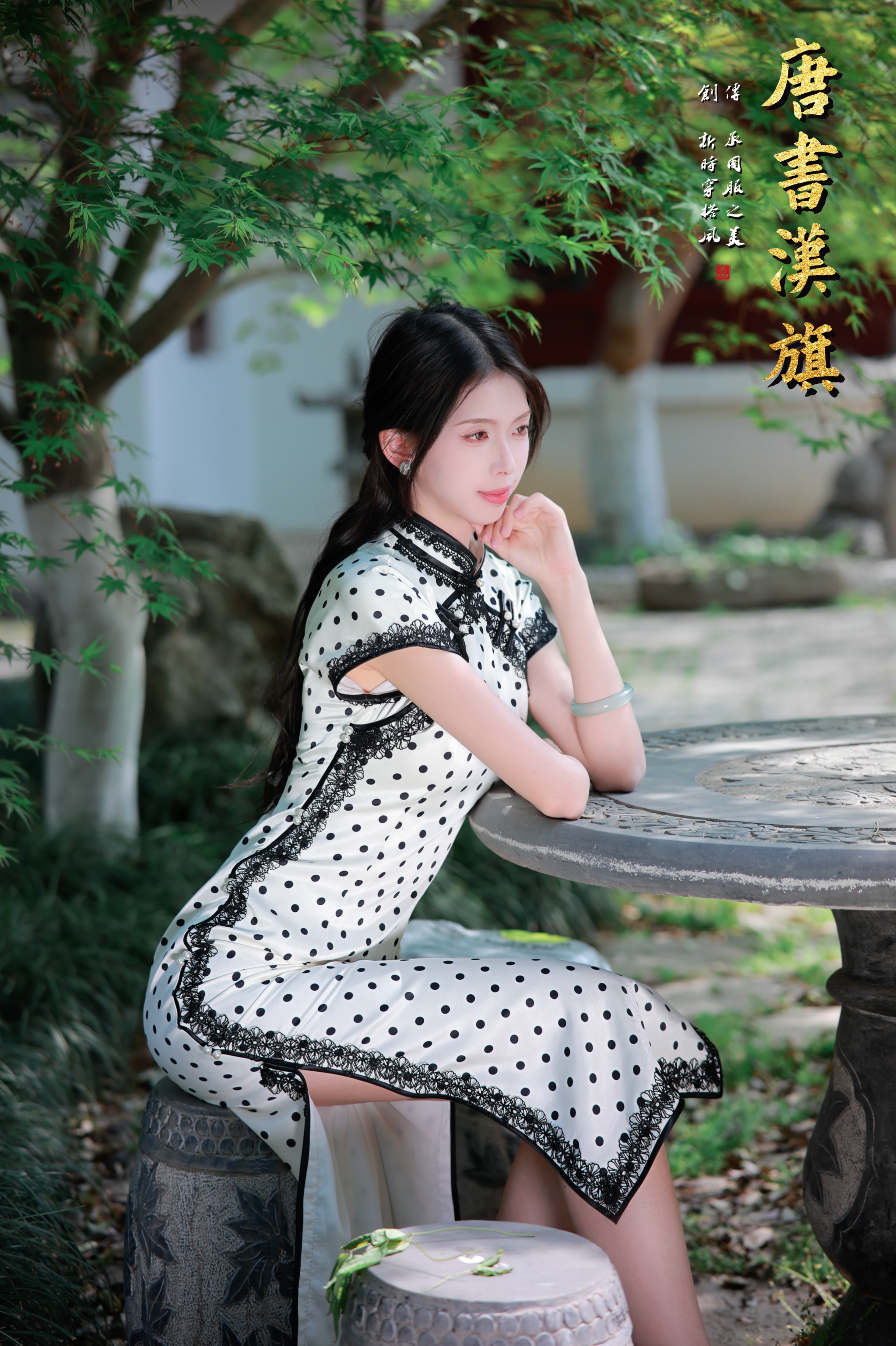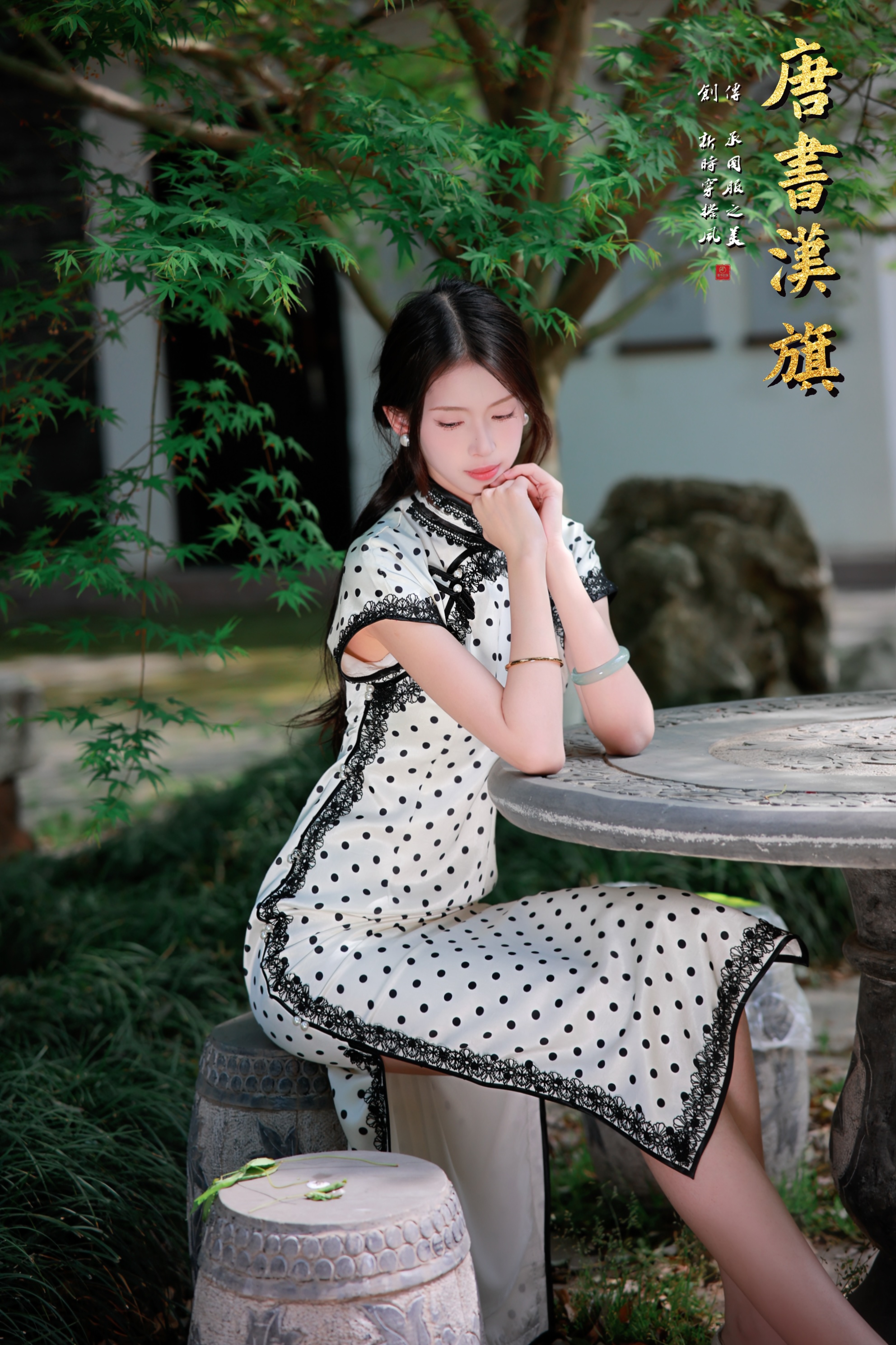 【繁 花】春夏季复古民国风黑白波点旗袍修身立领短袖温婉优雅气质尽显新中式