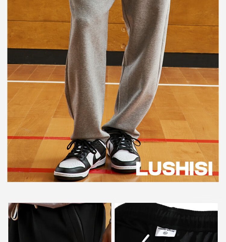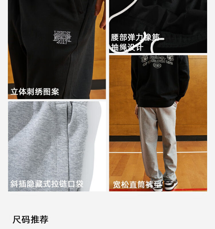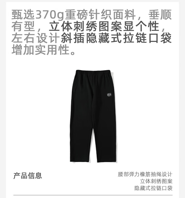 LUSHISILUSHISI冲刺时刻刺绣卫裤休闲裤松紧腰LOGO户外登山重磅运动长裤